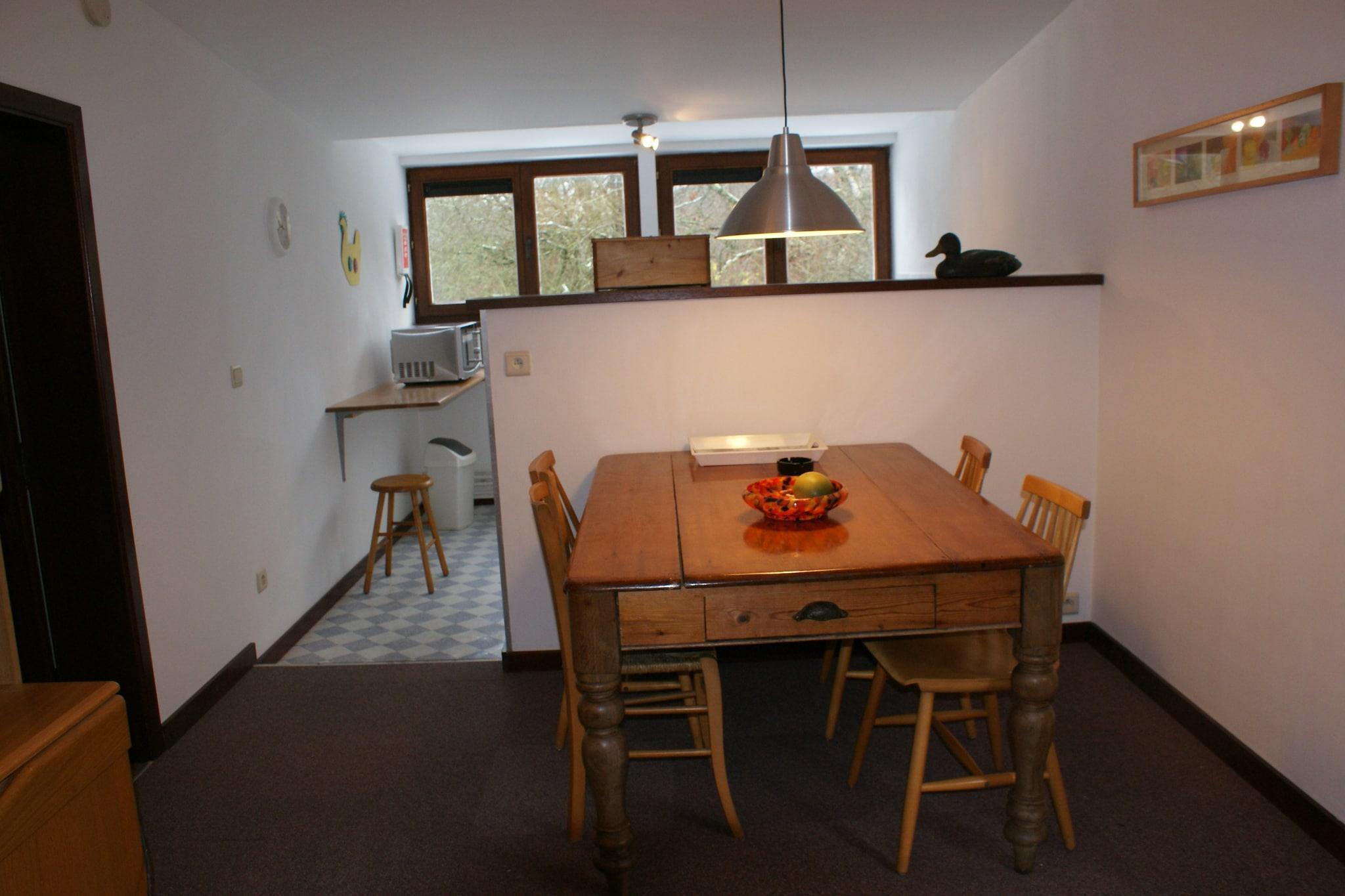 Beliggende på en fredelig 20 hektar stor ejendom i Bohon, Ardennerne, er denne charmerende 2-værelses lejlighed perfekt til en familie eller gruppe på op til 4 personer. Omgivet af naturlig skønhed tilbyder det den ideelle tilflugtssted for naturelskere, med skoven kun 100 m væk, perfekt til rolige gåture og udforske vildmarken. Hjemmet er også kæledyrsvenligt, så dine lodne ledsagere er også velkomne. Det veludstyrede køkken giver dig mulighed for at tilberede måltider derhjemme, med forsyninger kun 3 km væk. For at ændre tempo kan du udforske de nærliggende byer Barvaux (5 km) og Durbuy (7 km), hvor du finder restauranter, butikker og kulturelle attraktioner. En naturskøn sø ligger kun 1 km fra ejendommen, ideel til en fredelig picnic eller eftermiddagsvandring. Kanosejlads, cykling, fiskeri og bademuligheder i nærheden sørger for en afrundet ferie. Denne lejlighed er omhyggeligt indrettet med centralvarme, balkon, grill, badekar og børneseng og sikrer et behageligt ophold for alle aldre. Med offentlig transport tilgængelig på 4 km, er det både afsondret og tilgængeligt og tilbyder en fredfyldt base for at udforske Ardennerne.