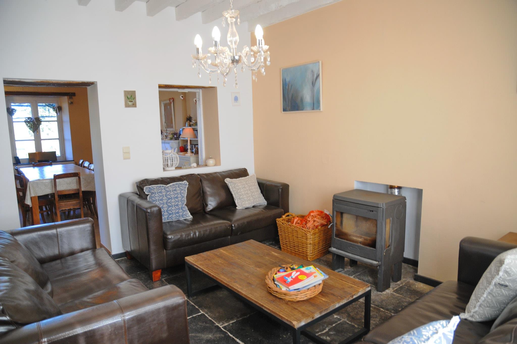 Dette feriehus i Durbuy kommune har en rummelig terrasse med panoramaudsigt. Den er ideel til en familieferie.Residensen er beliggende i den autentiske landsby Borlon, med masser at lave i umiddelbar nærhed. Besøg Adventure Valley i Durbuy, oplev denne middelalderbys rige historie og beundre udsigten fra vagttårnet. Du kan gå op til fods eller med tog. Regionen byder også på interessante museer og imponerende slotte.Dette hus byder på den luksus at nyde en opvarmet udendørs swimmingpool fra maj til midten af september. Om vinteren kan du holde dig god og varm ved brændeovnen i stuen. Køkkenet er fuldt udstyret, og spillelokalet er udstyret med bordfodbold og en dvd-afspiller. Du kan grille om sommeren i den hyggelige have med frugttræer.