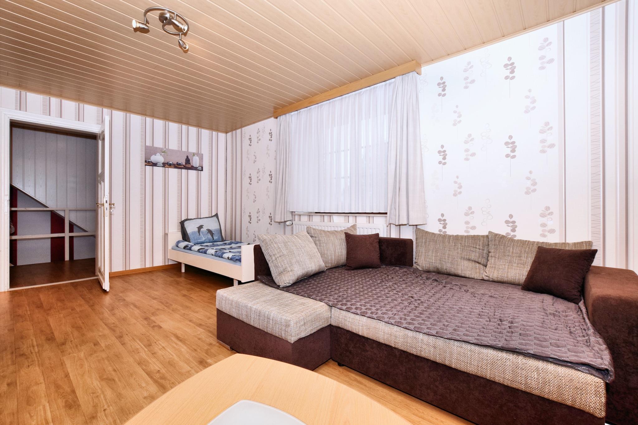 På 1. etage: (åbent køkken(komfur(Komfur med fire kogeplader, elektrisk), kaffemaskine, ovn, mikrobølgeovn, køleskab, fryser), Stue/soveværelse(enkeltseng, enkeltsovesofa, spisebord), soveværelse(dobbeltseng(180 x 200 cm)), badeværelse(badekar med bruser, håndvask, toilet)) varme, terrasse(privat), have(privat), havemøbler, parkering, bordtennisbord