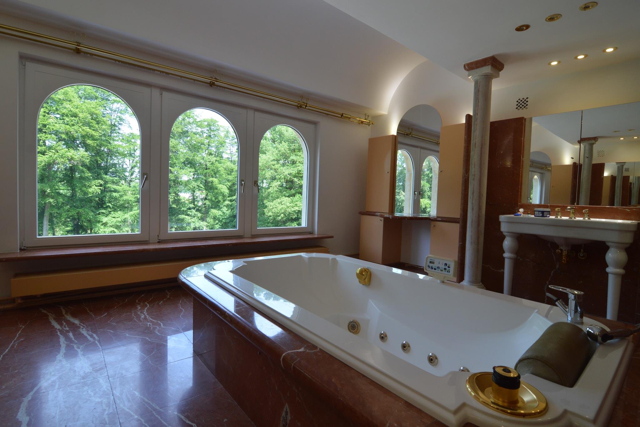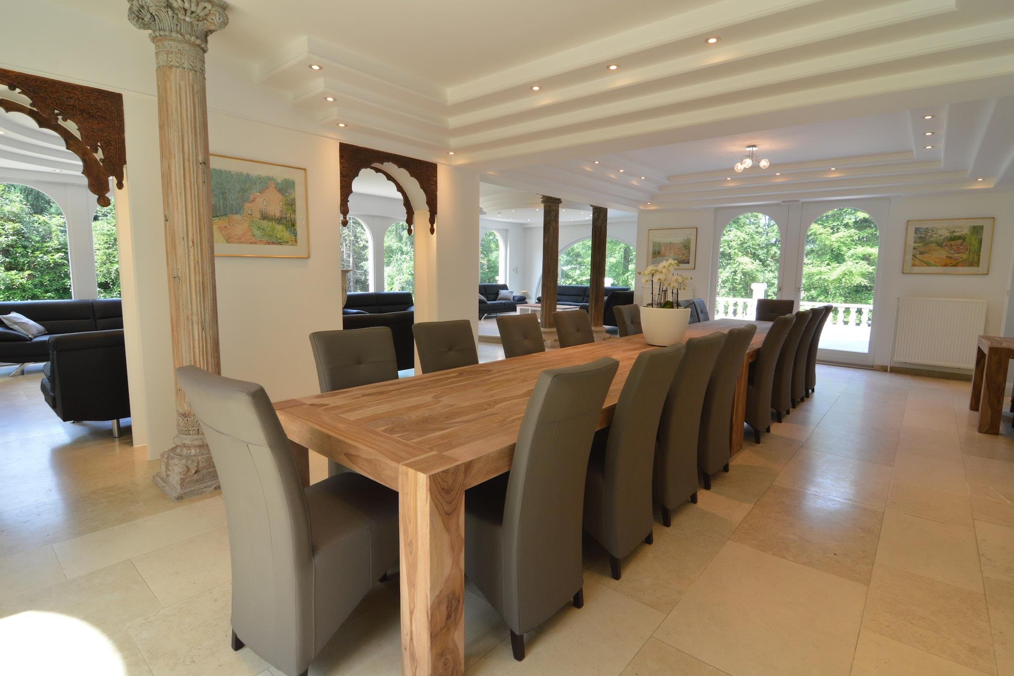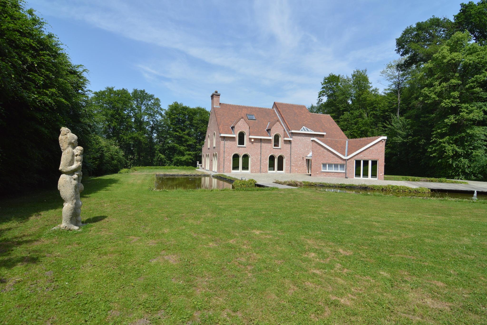 Dette smukke luksuriøse palæ er beliggende i Brakel midt i naturen af de flamske Ardenner. Når du kommer ind i huset, går du ind i en overdådig hall, og du føler dig som om du er kommet til et palads! De marmorgulve og trapper, de kolonner, du ser overalt, og de smukke materialer, der bruges, efterlader intet til fantasien. Den rummelige stue har en smuk pejs. Spisepladsen støder op til stuen og giver plads til hele festen, mens i det moderne åbne køkken du sammen kan forberede et måltid. De franske døre i stuen vender ud mod den fantastiske terrasse, der har udsigt til parkens have på ikke mindre end 8 hektar. Du kan gå gennem det smukke parklandskab med forskellige damme, en skov og flere hyggelige steder at sidde stille eller hvor børnene kan lege. I området finder du mange store og mindre naturreservater. Du kan cykle den berømte "Flanders Tour" eller besøge Gent, Oudenaarde eller Geraardsbergen. Der findes også monumenter overalt: beskyttede kapeller, Mariagrotten (Maria grotter) og vandmøller på landet, imponerende slotte, fæstninger og katedraler. Et absolut must! I stueetagen er et værelse forbeholdt vicevært.