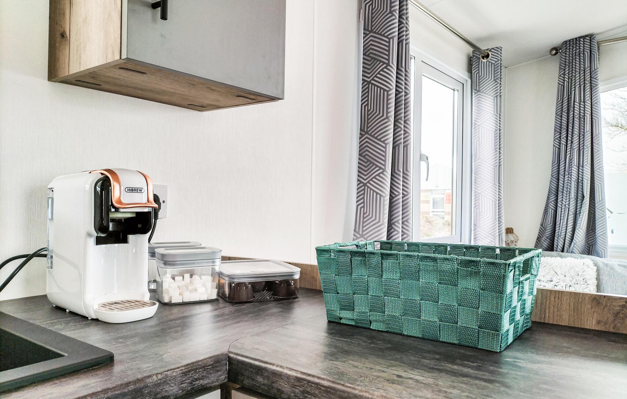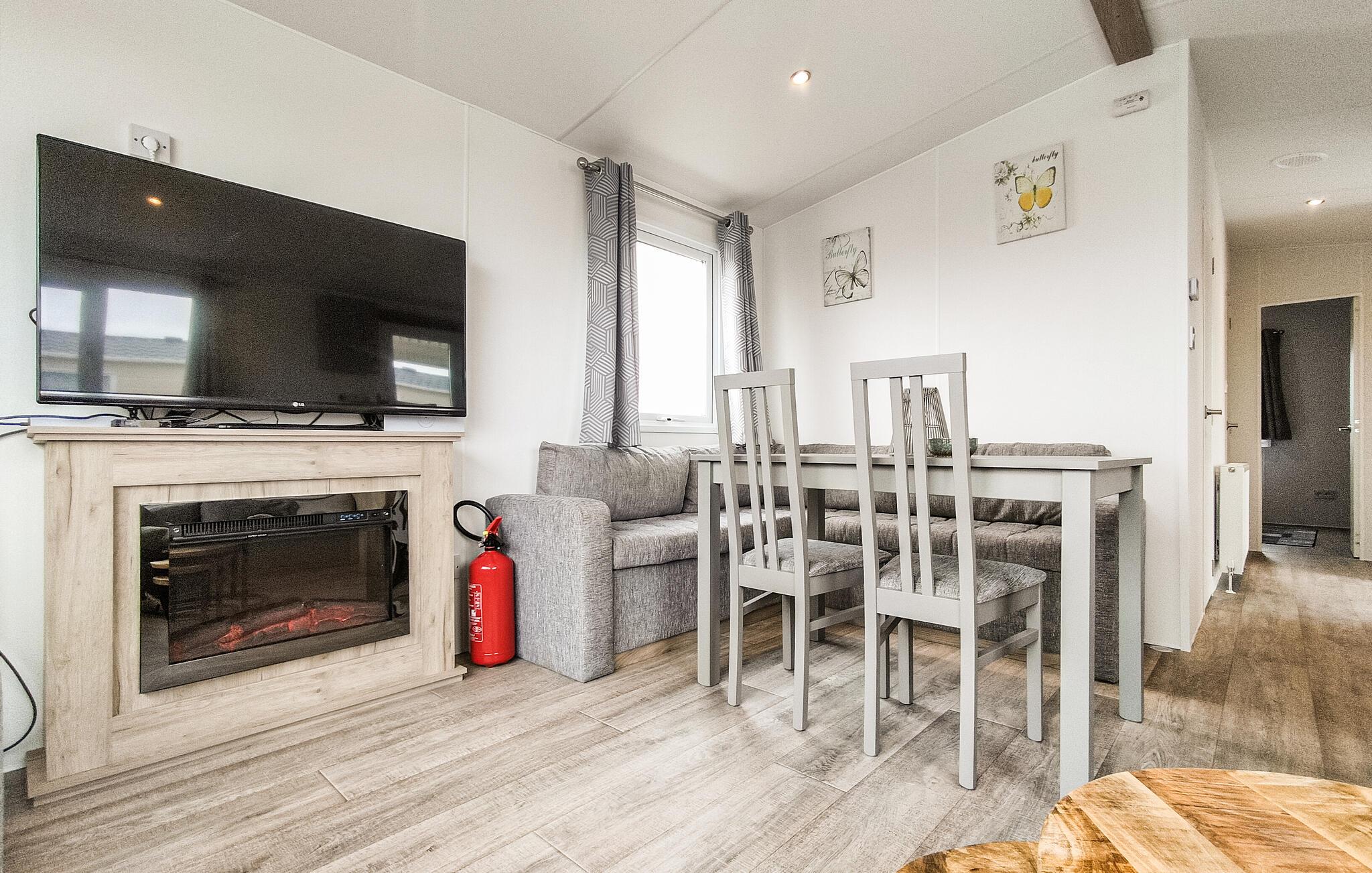 Dette lyse og komfortable feriehus tilbyder jer et hyggeligt hjem under en oplevelsesrig og aktiv ferie med familien. Lav jeres yndlingsmåltider i det kompakte køkken, brug den indbydende spiseplads til dagens måltider eller sociale spilleaftener, og sæt jer godt til rette i den hyggelige sofa til en film eller en stille læsestund.