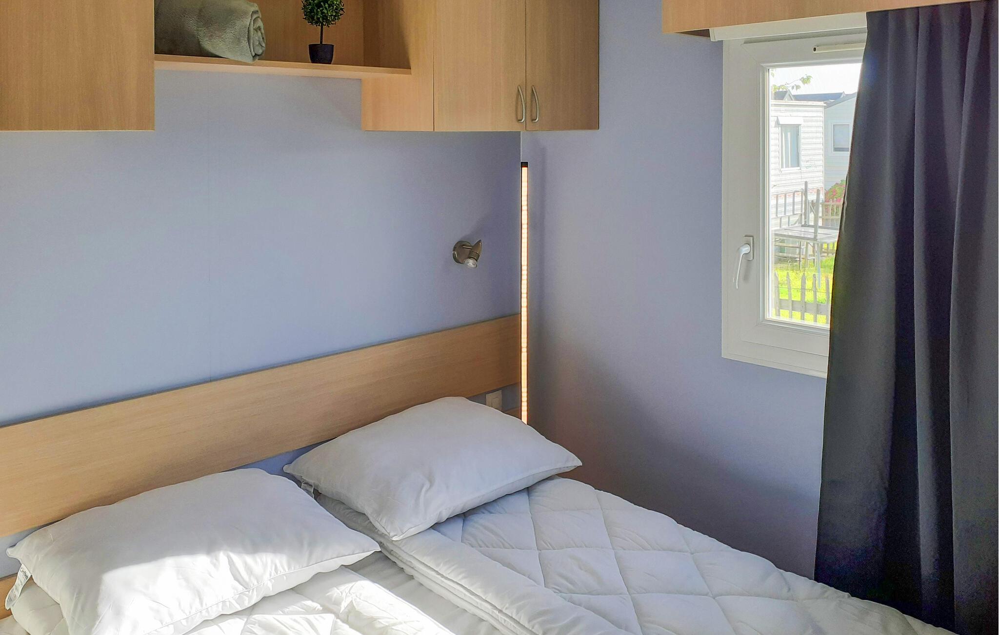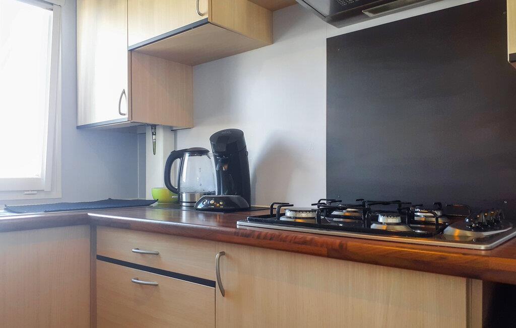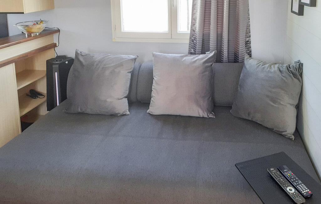 Dette kompakte og praktisk indrettede feriehus rummer de vigtigste elementer til et behageligt ophold. Den ligger på en velholdt campingplads med stor legeplads og fiskesø i gåafstand. Begynd dagene i køkkenet og tilbered familiens morgenmad. Bagefter kan I nyde hyggelige stunder ved spisebordet. Det hyggelige sofahjørne med udsigt til haven er ideelt til sjove spil eller afslappede filmaftener. Udenfor kan I tilbringe glade grillaftener på den hyggelige terrasse eller nyde jeres frie ferietid med en kop kaffe.