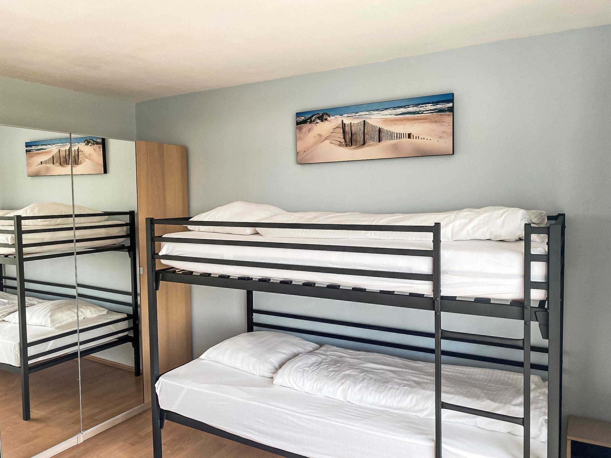 "Ref 602", 3-room apartment 80 m2 on 6th floor. Comfortable furnishings: open living/dining room with dining table, digital TV, flat screen, radio, DVD and electric heating. Exit to the balcony. 1 double bedroom with 1 double bed. 1 room with 4 beds. Kitchenette (4 hot plates, oven, kettle, microwave, electric coffee machine). Shower, hip bath, sep. WC. Electric heating. View of the sea. Facilities: iron. Internet (WiFi). Parking space n 70 (extra). Maximum 1 pet/ dog allowed.