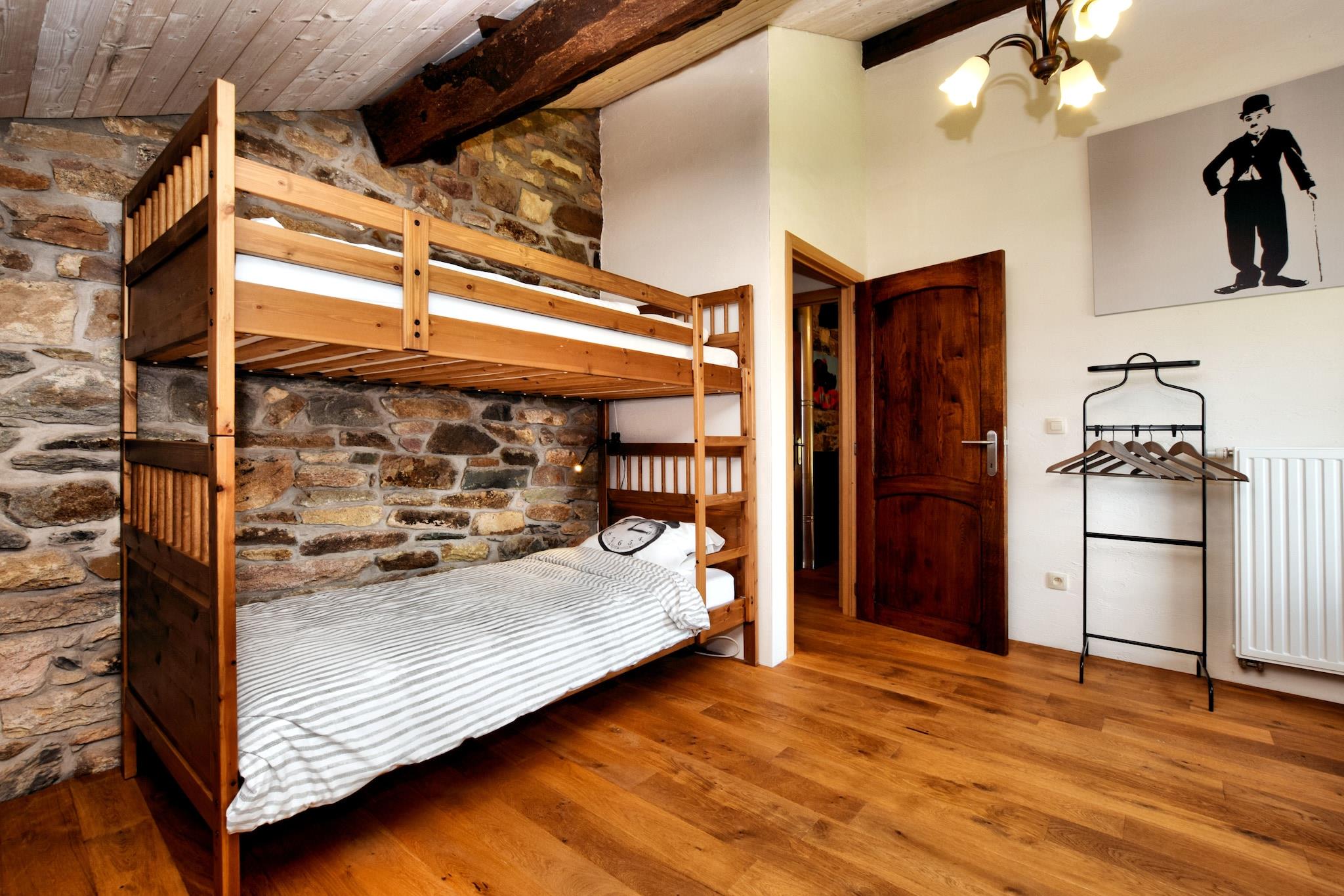 Dette charmerende feriehus med 4 soveværelser ligger i udkanten af en fredelig skov i Burtonville og tilbyder et roligt ophold for op til 9 gæster. Ideel til familier eller en gruppe venner, den har centralvarme, en solrig terrasse og en rummelig have, perfekt til at genoprette forbindelsen til naturen. Udforsk naturskønne vandre- og cykelruter, eller tag en dagstur til Spa, Coo, Plopsa-forlystelsesparken eller Battle of the Bulge-museerne i Malmédy og det nordlige Luxembourg, kun 30 minutter væk. Restauranter, supermarkeder og byens centrum er bekvemt placeret 4 km fra boligen. Dette smukt renoverede hus blander rustik charme med moderne komfort, med tykke stenvægge, træaccenter og en hyggelig brændeovn i både stue og spisestue. Soveværelserne inkluderer en blanding af enkelt-, dobbelt- og køjesenge, med en børneseng og høj stol til rådighed. Cykelskuret sikrer sikker opbevaring, og ladestationen til elbiler på stedet tilføjer bekvemmelighed. Ingen kæledyr tilladt. Depositum:, betales på stedet. Forudgående varsel og gæsteoplysninger påkrævet for gruppebookinger.