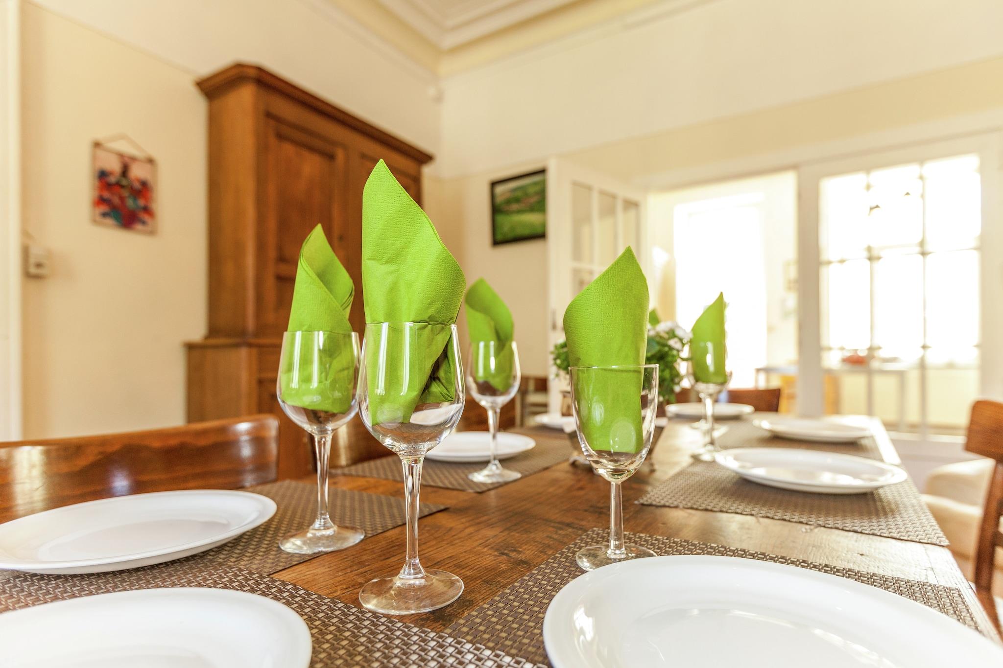 Midt i en charmerende landsby finder du dette store, restaurerede hus (280 m²). Det er et rigtigt familiehus med ikke færre end 6 soveværelser til 14 personer. Huset dækker 3 etager, så du har nok privatliv og fred for dig selv. Huset ligger overfor den kommunale park med legeplads for børnene. Der er også mange afslapningsmuligheder i regionen: såsom en rideskole og en indendørs swimmingpool. Du kan også leje kajakker og mountainbikes i Hamoir. Om sommeren kan du nyde solen i haven og tænde grillen. Børn kan lege trygt i den lukkede have. Af hensyn til roen udlejes dette hus ikke til ungdomsgrupper. Udtjekning på søndag er kl. 20.00.