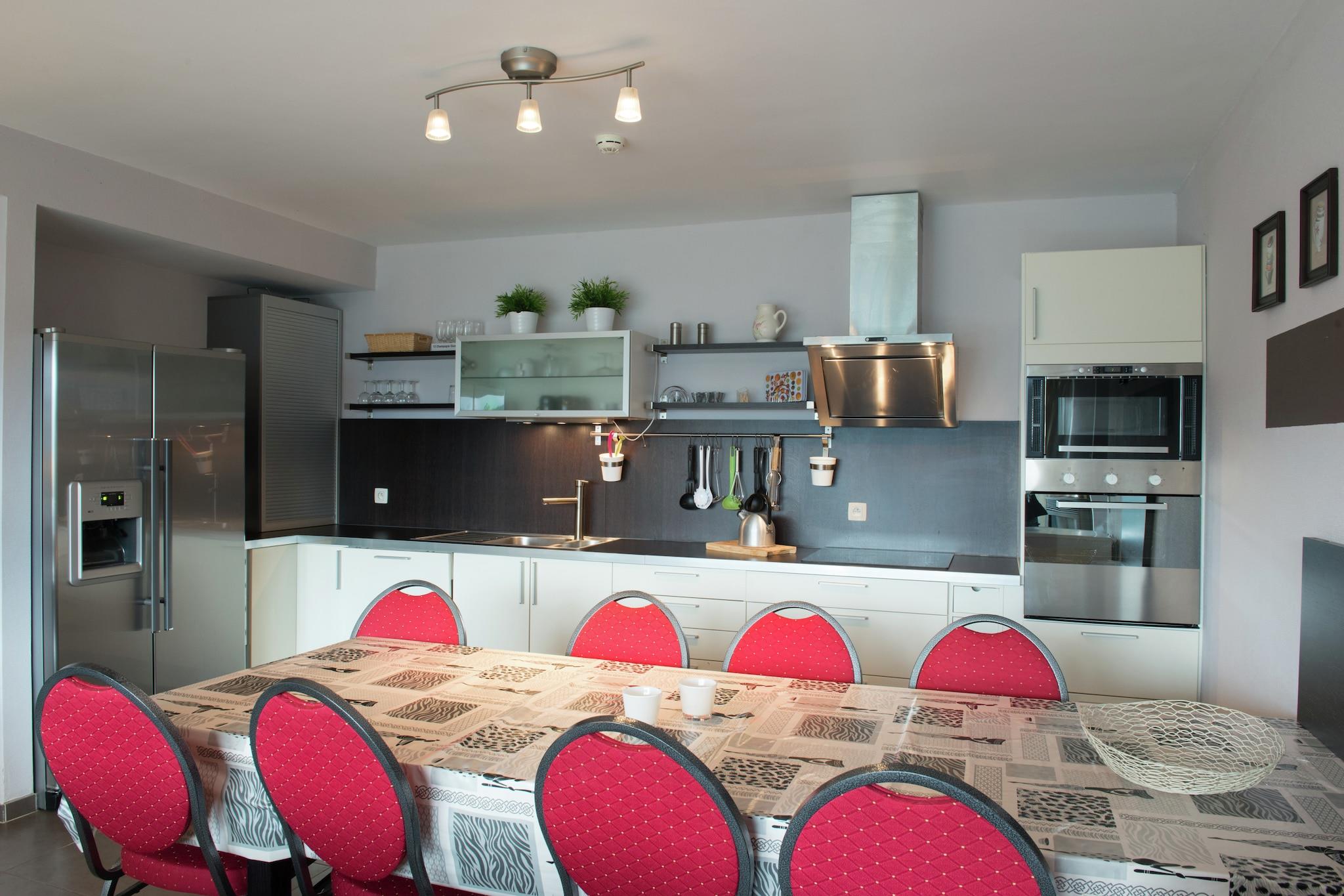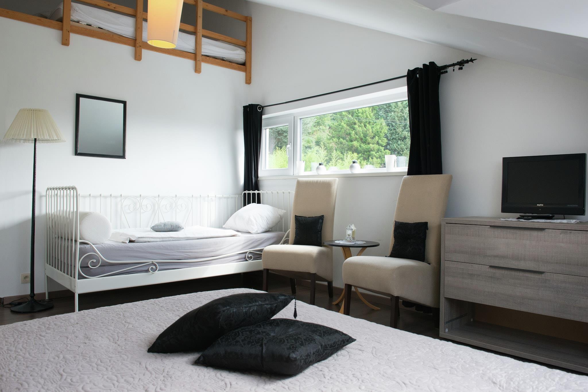 Beliggende på en stille blind vej i udkanten af en smuk skov og kun kort afstand fra den charmerende landsby COO, tilbyder denne luksusvilla et tilflugtssted uden sidestykke. Villaen er fremragende indrettet med rummelige soveværelser, hver udstyret med sit eget private badeværelse. Med flere stuer og pilleovne byder denne villa på både varme og komfort. Ejendommen er designet til at give afslapning og fritid, og byder på to saunaer, en stor jacuzzi, en indendørs swimmingpool og en storslået have med panoramaudsigt over Coo-dalen og dens sø. Villaen er en ideel base for at udforske de rige kulturelle og turistattraktioner i regionen, herunder det berømte Francorchamps-kredsløb, Stavelot, Malmédy og Spa. Udendørsentusiaster kan nyde en række aktiviteter, herunder beachvolley, badminton og en legeplads. Derudover er der en privat dam, petanque-spil og et bordtennisområde. Ejendommens rolige omgivelser og forskellige faciliteter sikrer, at gæsterne kan slappe af, uanset om de nyder udsigten eller deltager i den udendørs sjov. Perfekt egnet til større grupper, villaen kan komfortabelt rumme op til 24 personer. Det kan prale af to fuldt udstyrede køkkener, en spisestue til 24 personer og flere hyggelige soveværelser, nogle med mezzaniner til ekstra sovepladser. Lejligheden til 7 personer har sin egen private indgang, køkken og stue, ideel til dem, der søger ekstra privatliv. Udendørs faciliteter inkluderer en opvarmet swimmingpool (åben maj til oktober), en stor terrasse og et grillområde til udendørs spisning. Gratis parkering er tilgængelig, og ejendommen tilbyder også Wi-Fi, hvilket sikrer en perfekt blanding af luksus og bekvemmelighed.