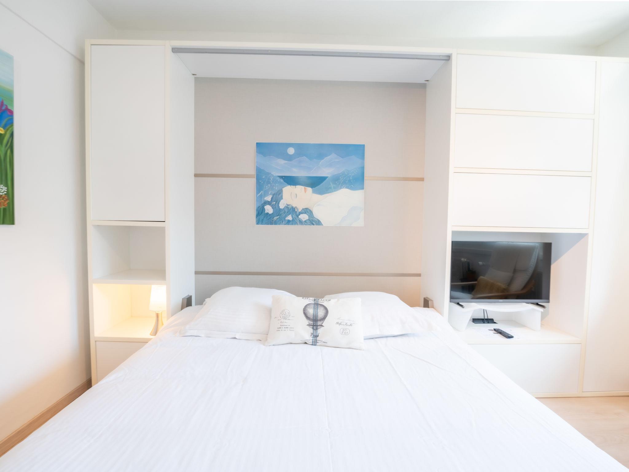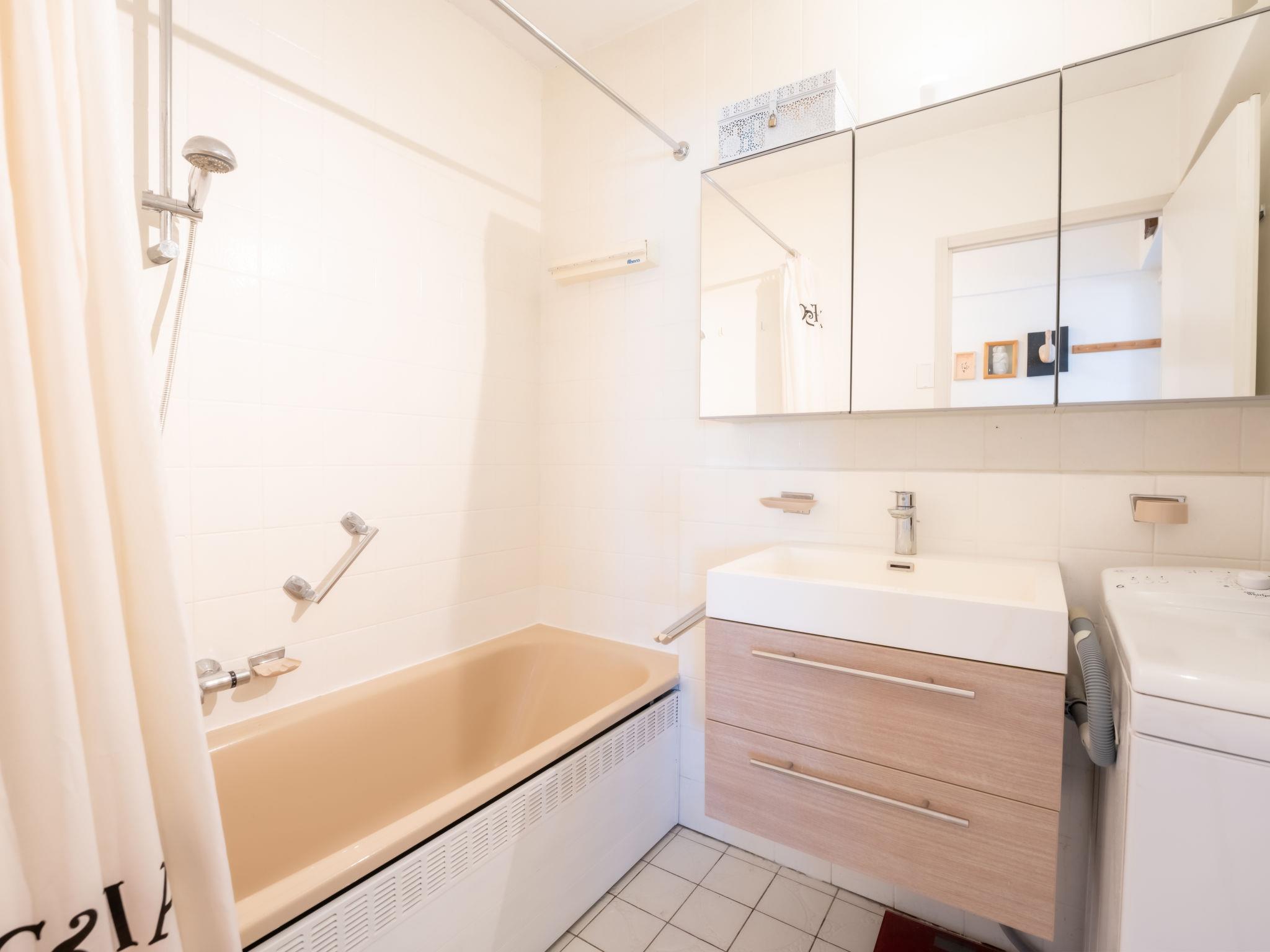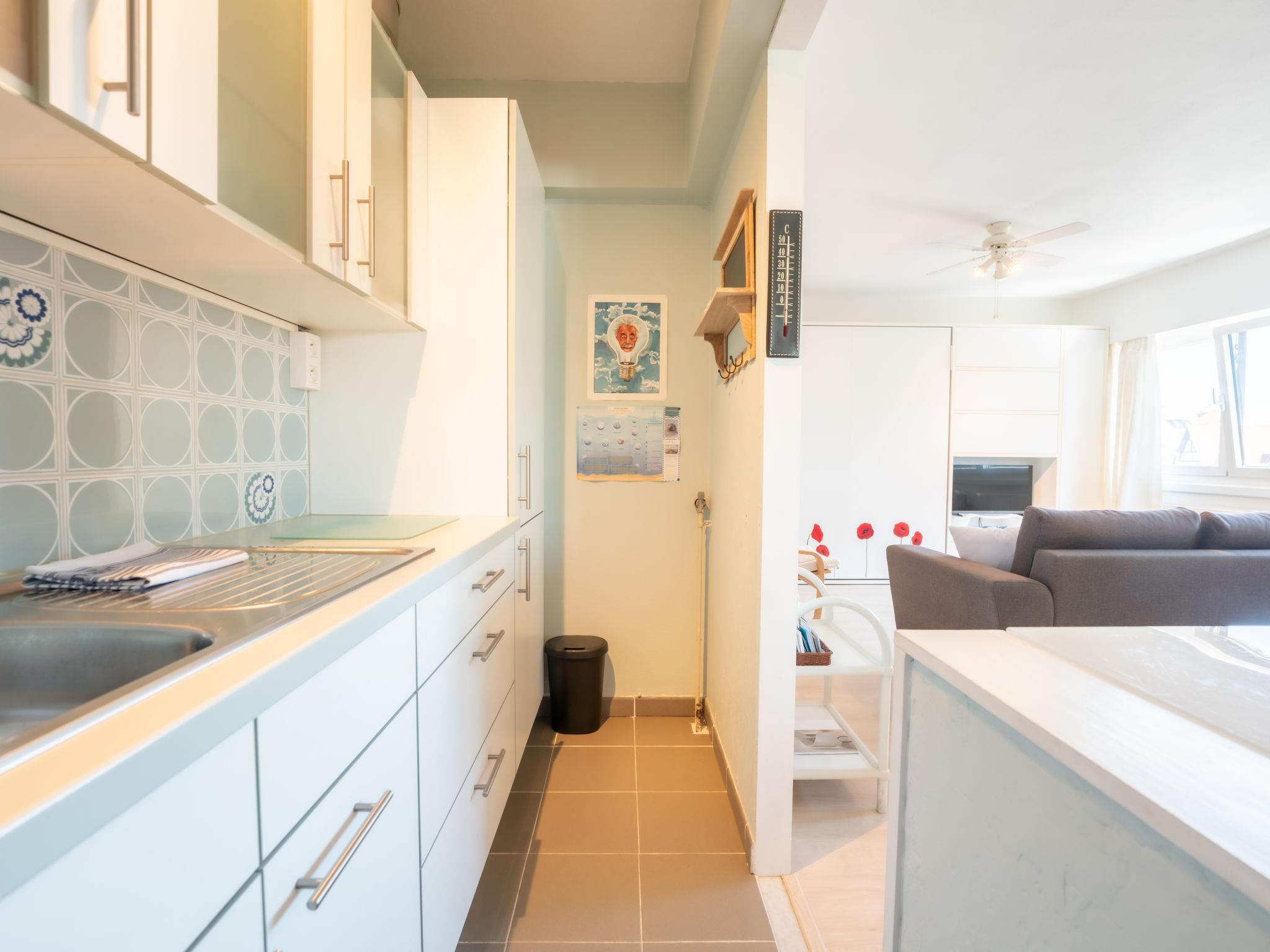 "Douceur de vivre nearby beach", 1-room studio 45 m2 on 4th floor. Object suitable for 2 adults + 1 child. Practical and cosy furnishings: entrance hall with separate WC. Living/sleeping room with 1 sofabed and 1 double wall-trunk bed (1 x 160 cm, length 200 cm), digital TV, international TV channels and flat screen. Open kitchen (oven, 4 ceramic glass hob hotplates, toaster, kettle, microwave, electric coffee machine). Bathroom. Heating. Facilities: washing machine, hair dryer. Internet (WiFi, free). Please note: suitable for families. Non-smoking house. Maximum 1 pet/ dog allowed. Smoke alarm, fire extinguisher.