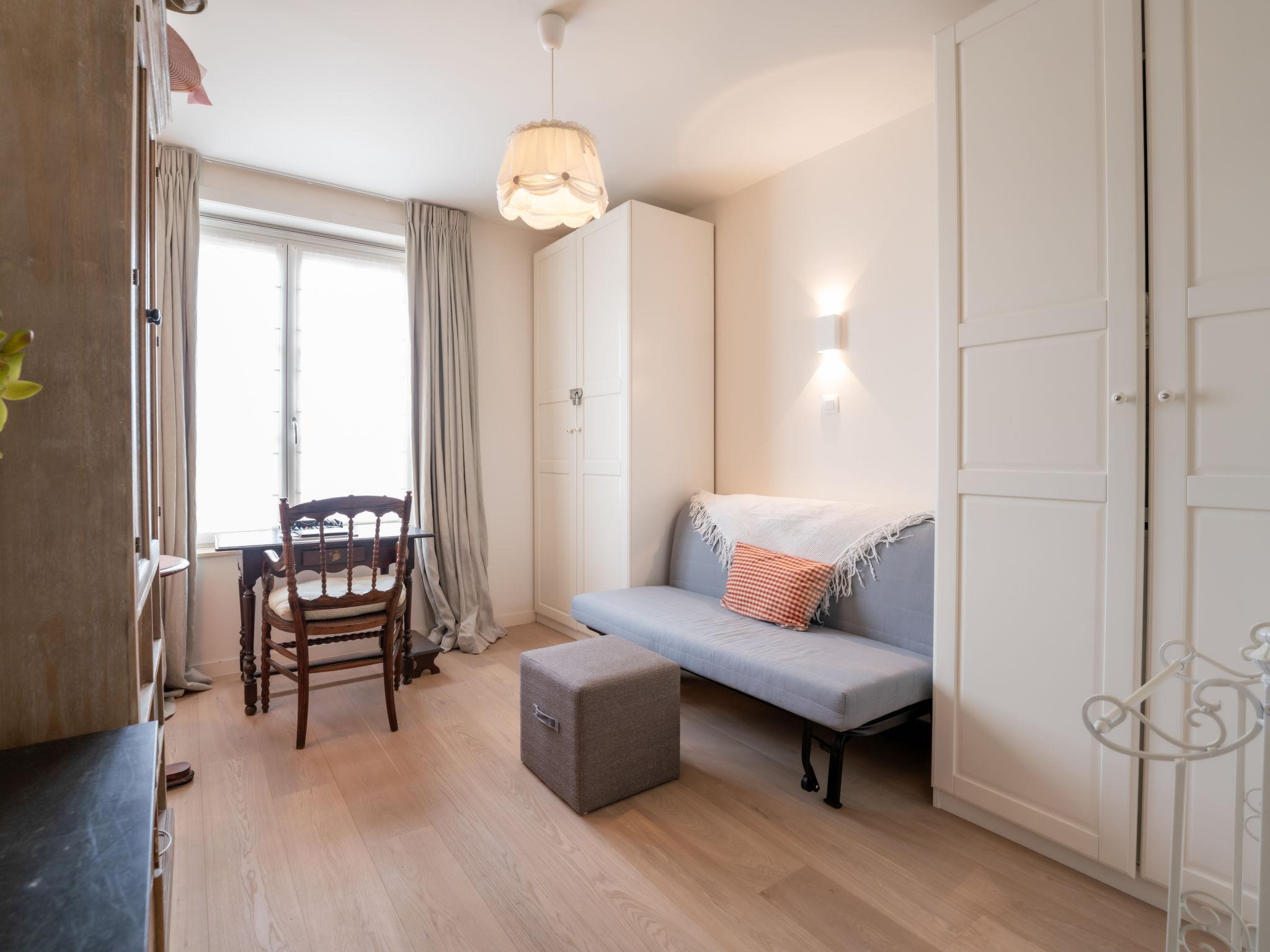 "Lucette quiet but central", 2-room apartment 110 m2 on 2nd floor. Object suitable for 2 adults + 2 children. Comfortable furnishings: open living/dining room. Exit to the balcony. 1 double bedroom with 1 french bed (2 x 90 cm, length 200 cm). 1 children's room with 1 sofabed (140 cm, length 200 cm), international TV channels and flat screen. Open kitchen (4 hot plates, oven, dishwasher, 4 ceramic glass hob hotplates, toaster, kettle, microwave, freezer, electric coffee machine). Shower, sep. WC, bath or shower. Floor heating. Small balcony 6 m2. Balcony furniture. Facilities: hair dryer. Internet (WiFi, free). Please note: suitable for families. Smoke alarm, fire extinguisher.