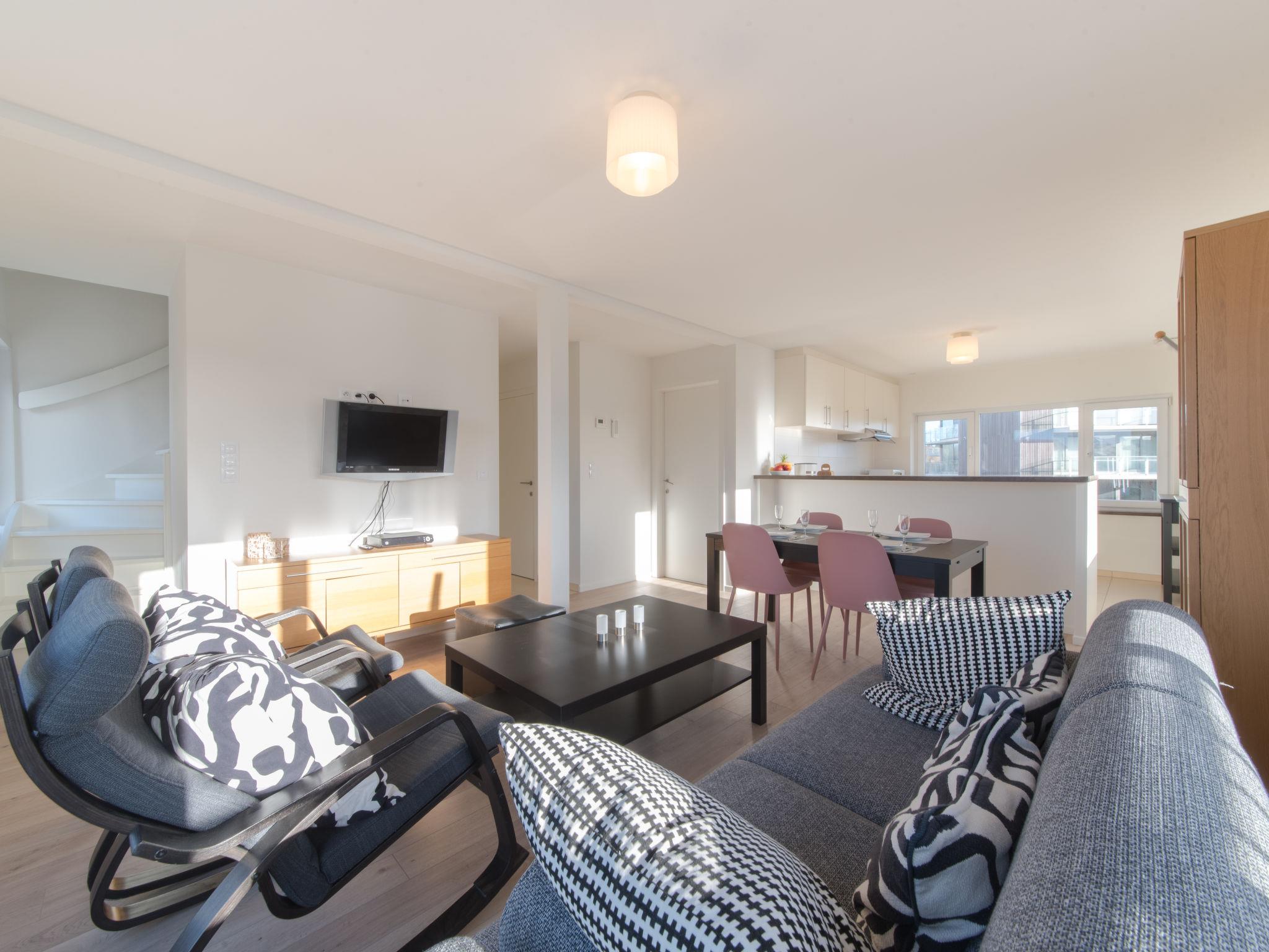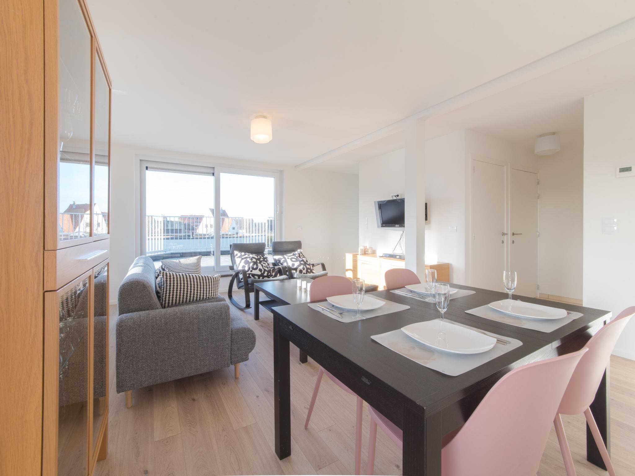"De Zeegloed duplex with parking", 3-room apartment on 2 levels. Object suitable for 4 adults. Spacious and bright, renovated in 2012, modern and cosy furnishings: entrance hall with separate WC. Living/dining room with dining table, digital TV, international TV channels and flat screen. Exit to the balcony. 1 room with 2 beds (90 cm, length 200 cm). Large, open kitchen (oven, dishwasher, 4 ceramic glass hob hotplates, toaster, kettle, microwave, electric coffee machine). Upper floor: 1 double bedroom with 1 double bed (1 x 160 cm, length 200 cm). Bath/shower. Heating. Large balcony, south-west facing position and west facing position. Balcony furniture. Facilities: hair dryer. Internet (WiFi, free). Parking (1 car) at the house. Please note: suitable for families. Non-smoking house. Smoke alarm, fire extinguisher, no lift.