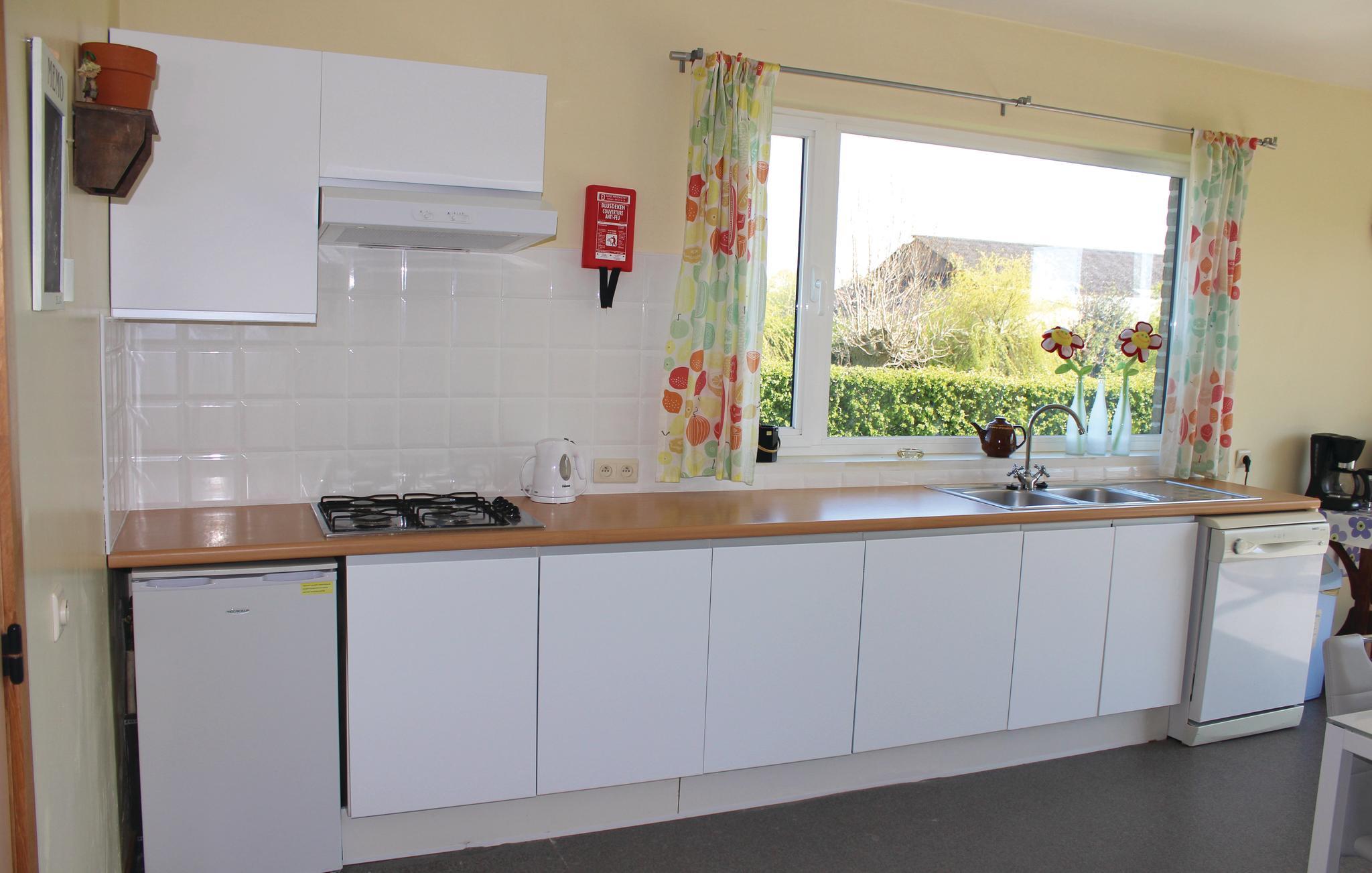 Dette enkle og praktisk indrettede feriehus ligger i en helt indhegnet have ved siden af ejers gård i drift. I husets rummelige dagligstue er et hyggeligt siddehjørne, tv og et spisebord og stole. I køkkenet ved siden af er der skydedøre ud til terrassen og haven, hvor I også kan sidde og spise. Fra haven er der en vid udsigt over landskabet. I og jeres børn kan komme helt tæt på bondegårdens dyr: ænder, gæs, høns, får og køer. I bor kun 17 km fra den belgiske kyst og kan også besøge forlystelsesparken Plopsaland i Panne.