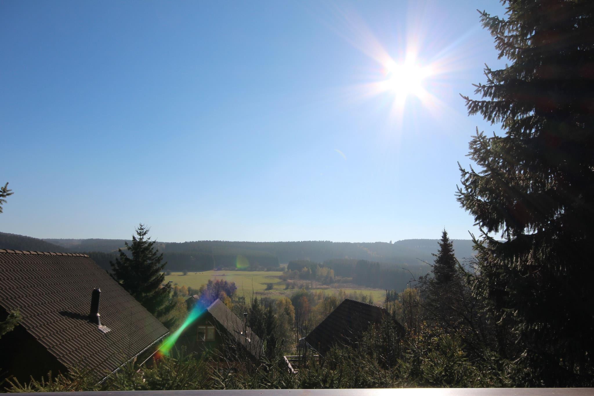 I denne hyggelige hytte har du det bedste af begge verdener. Beliggende på den højeste gade, på en bakke, vil du føle dig som hjemme i en regelmæssig villa. Men i virkeligheden er du på grund af en campingpladsen, hvor du kan bruge alle faciliteterne. I løbet af foråret og sommeren kan du for eksempel bruge den udendørs swimmingpool og tennisbanen. I en stor del af året er campingrestauranten åben, og i løbet af en årstid kan børnene lege deres hjerte "indhold på det omfattende legepladsudstyr. Når du vender tilbage til din hytte, vil du opleve den følelse af privatlivets fred igen. Ikke kun når du er i det behageligt indrettede hus, men helt sikkert også hvis du sætter dig ned på en af terrasserne. "En af" terrasserne? Ja, fordi både på jorden mel og kælderen finder du en smuk møbleret dæk. Den anden terrasse er også direkte tilgængelig fra soveværelset på den anden etage. Og et af soveværelserne ovenpå har også sit eget dæk. Og overalt vil du nyde den smukke udsigt over bakkerne.