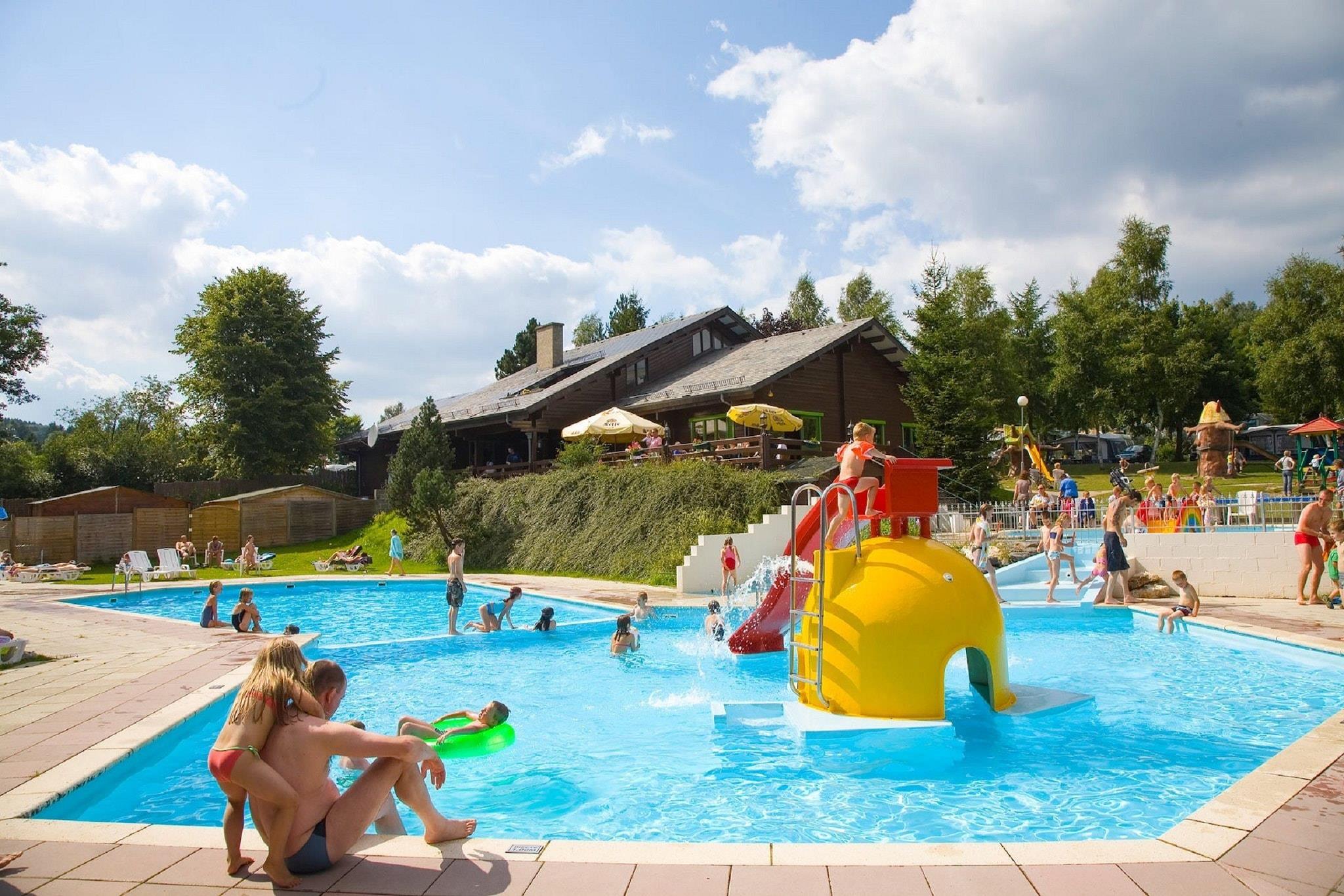 Chalet Comfort in Nature's Embrace Beliggende i de fredfyldte omgivelser på Camping Petite Suisse tilbyder denne charmerende fritliggende hytte et varmt og hyggeligt ophold med en smuk privat terrasse, ideel til at nippe til din morgenkaffe eller se solnedgangen. Perfekt til små familier eller par, hytten har et gennemtænkt layout og masser af naturligt lys. Gæsterne kan slappe af i den fælles, opvarmede udendørs swimmingpool eller slappe af under parasollen med udsigt til haven. Miljøet er børnevenligt, og kæledyr er også velkomne til at nyde eventyret! Naturskønne stier og familiesjov i nærheden Udforsk de naturskønne skove kun 700 meter væk med godt afmærkede vandre- og cykelstier, der er ideelle for både mennesker og lodne venner. Tag på en dagstur til La Roche-en-Ardenne, kendt for sit middelalderlige slot og flodkajak. Familier vil elske Parc Chlorophylle, en udendørs skoveventyrpark perfekt til børn. For en afslappende dag kan du nyde golf på den nærliggende Five Nations Golf Club eller blot slentre gennem den maleriske landsby Dochamps. Lokale spisesteder og belgiske smagsoplevelser Kun en kort gåtur fra hytten finder du indbydende restauranter som Taverne Camping Petite Suisse, der tilbyder lokale belgiske retter og udendørs siddepladser, der er ideelle til kæledyr. For en smag af traditionelle retter, tag til Le Relais des Saveurs i det nærliggende Manhay. Daglige fornødenheder og friske råvarer er tilgængelige inden for 100 meter, hvilket gør det nemt at spise inde eller ude.