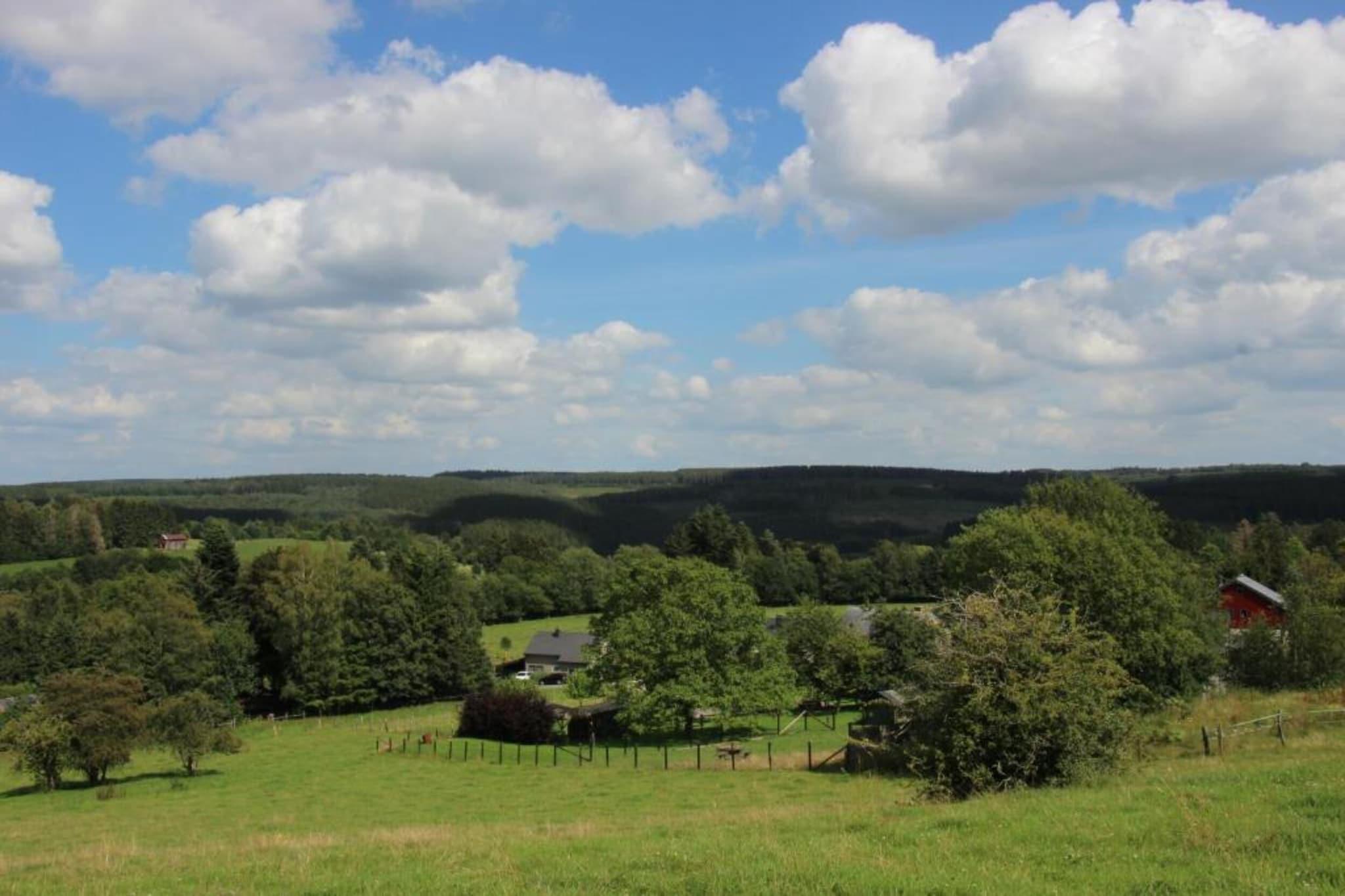 Dette moderne, fuldt møblerede 5-personers telt tilbyder en unik og behagelig glamping-oplevelse. Beliggende i hjertet af en familievenlig campingplads er den perfekt til familier eller små grupper, der ønsker at nyde skønheden i Ardennerne. Det rummelige telt har en hyggelig opholdsstue, et fuldt udstyret tekøkken og to komfortable soveværelser: et med en dobbeltseng og det andet med to enkeltsenge og en køjeseng, ideel til børn. Teltet har også et privat badeværelse med bruser, toilet og håndvask, hvilket sikrer et bekvemt og behageligt ophold. Campingpladsen ligger i de maleriske Ardennerne og byder på en betagende udsigt over dalen, marker og omkringliggende skove. Med en højde på 500 meter giver det en rolig atmosfære og adgang til forskellige udendørs aktiviteter såsom vandreture, cykling og udforskning af de fantastiske naturlige omgivelser. For familier med børn er området perfekt til picnic, gåture i naturen og dyreliv. De nærliggende landsbyer og attraktioner tilbyder yderligere muligheder for sightseeing og kulturelle oplevelser. Teltet er veludstyret til et behageligt ophold med faciliteter som pilleovn, Wi-Fi, et fuldt udstyret tekøkken med mikroovn, kaffemaskine og elkomfur. I stuen er der to lænestole og et spisebord til familiens måltider. Udendørs siddepladser med parasol og havemøbler giver dig mulighed for at slappe af, mens du nyder den naturskønne udsigt. Der tilbydes gratis parkering til én bil, og kæledyr er velkomne, hvilket gør det til et godt valg for en familieferie i naturen.