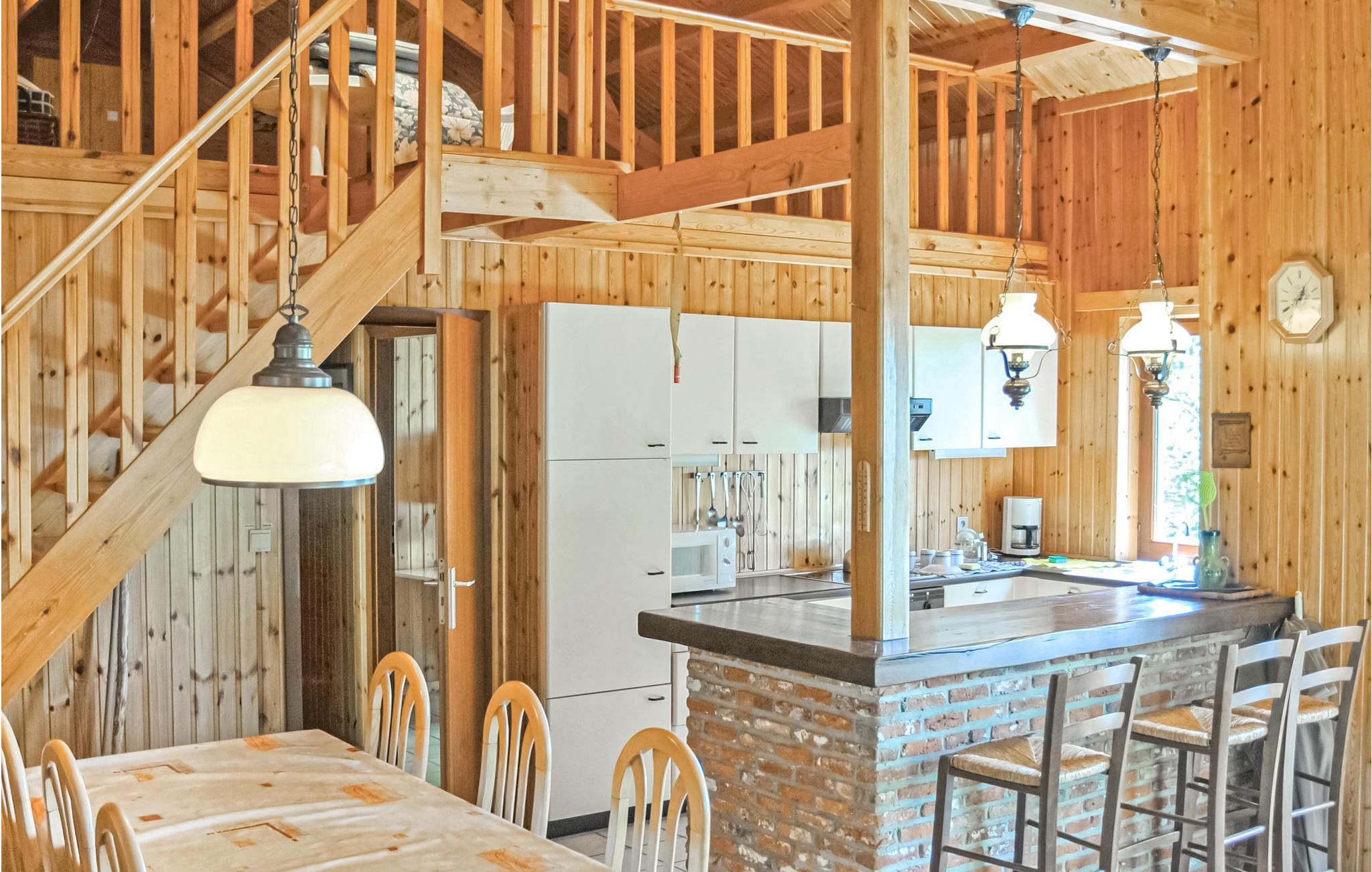 Kun 3 km fra centrum af den smukke by Durbuy ligger dette feriehus. Her i Ardennerne kan I nyde en herlig udsigt over bakkerne fra mange steder. En stejl sti fører jer op til boligen på den skovdækkede grund. Der er en trappe op til stuen og den tilstødende altan. Huset er meget hyggeligt og trævæggene skaber en varm stemning. Allerede foran døren kan I tage ud på vandringer og cykelture. Durbuy består af charmerende gyder med butikker og restauranter. Ved siden af feriehuset ligger den meget originelle borg Radhadesh.