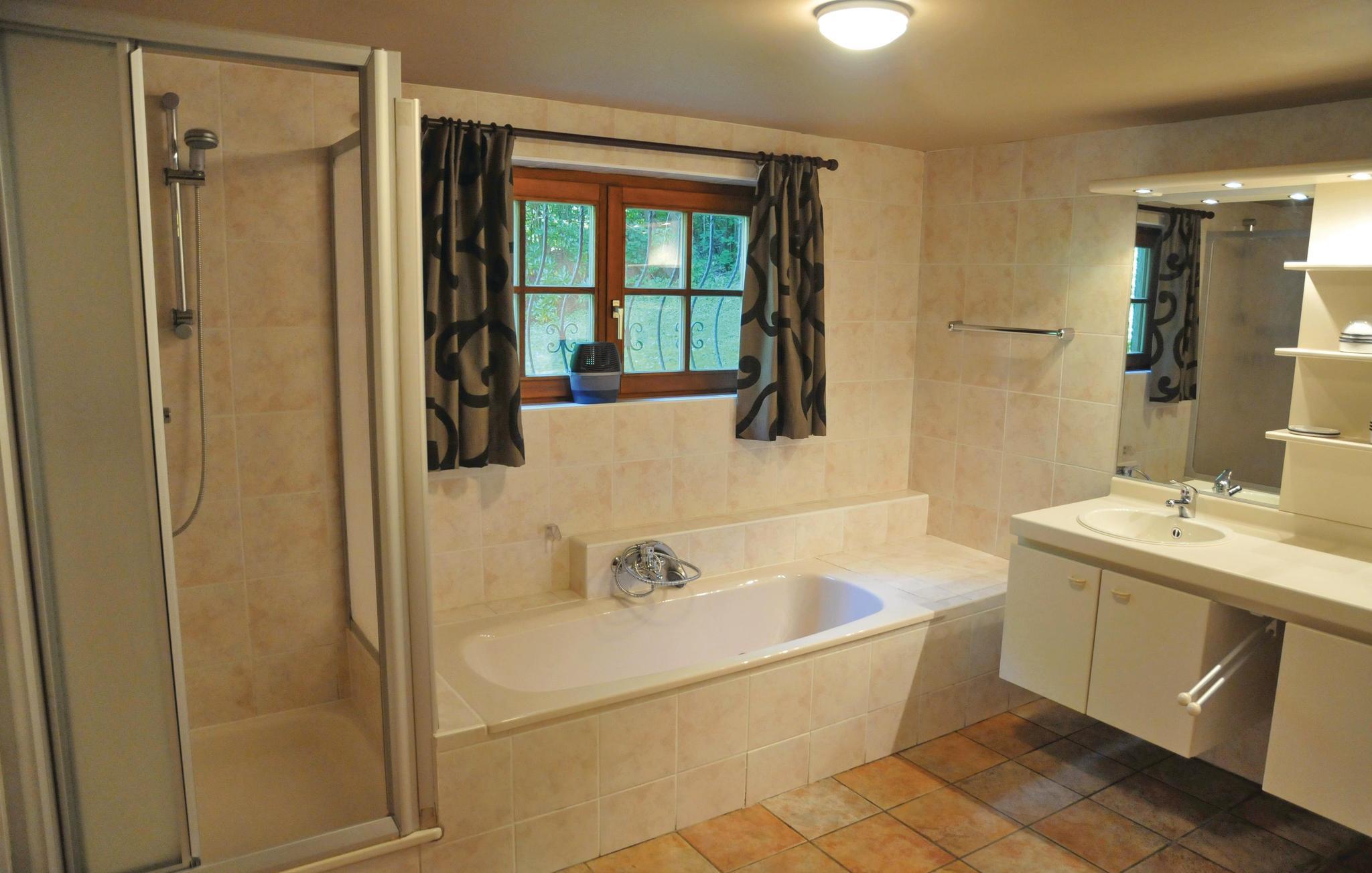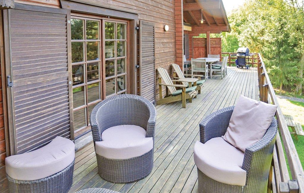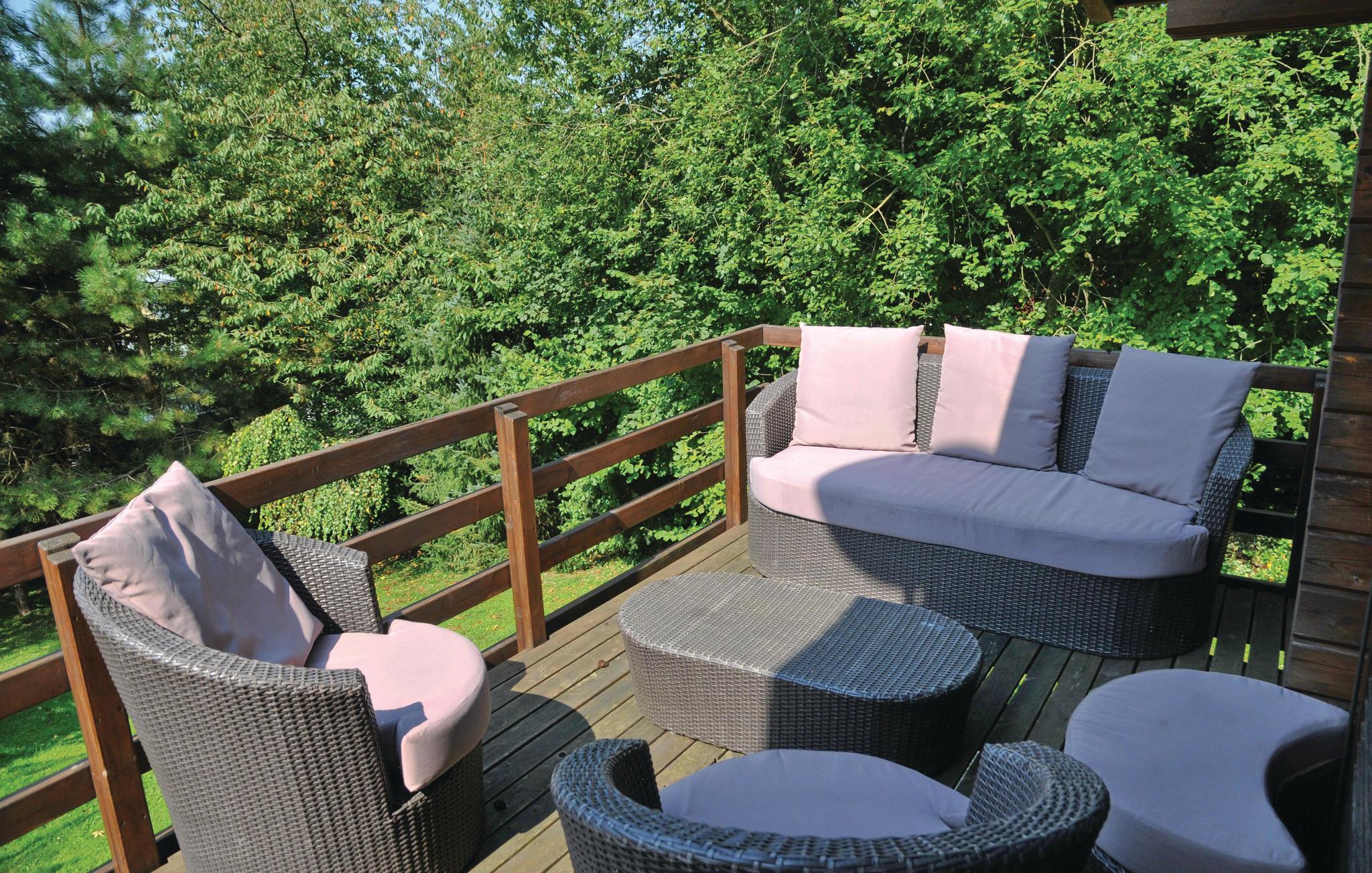 Dette chalet ligger i en komplet indhegnet have, kun 4 km fra centrum af den lille by Durbuy. Der er kun 1 km til den maleriske landsby Wéris, hvor I kan se bautasten fra kelternes tid. Området byder på herlige udflugtsmuligheder på mountain- og racercykel, vandrere og eventyrere. Hvis I kommer hertil for at tilbringe en ubesværet ferie vil I sikkert ikke blive skuffet. Der er fremragende restauranter, bryggerier og caféer med hyggelige solterrasser. Selve huset er allerede en garanti for en afslappende ferie. Indretningen er ganske hyggelig. Der er en del brætspil samt bordfodbold, airhockey og bordtennis. Til børn er der en legeplads og en trampolin. På den store altan på første sal kan I nyde dagens første solstråler, men selvfølgeligt også de sidste.