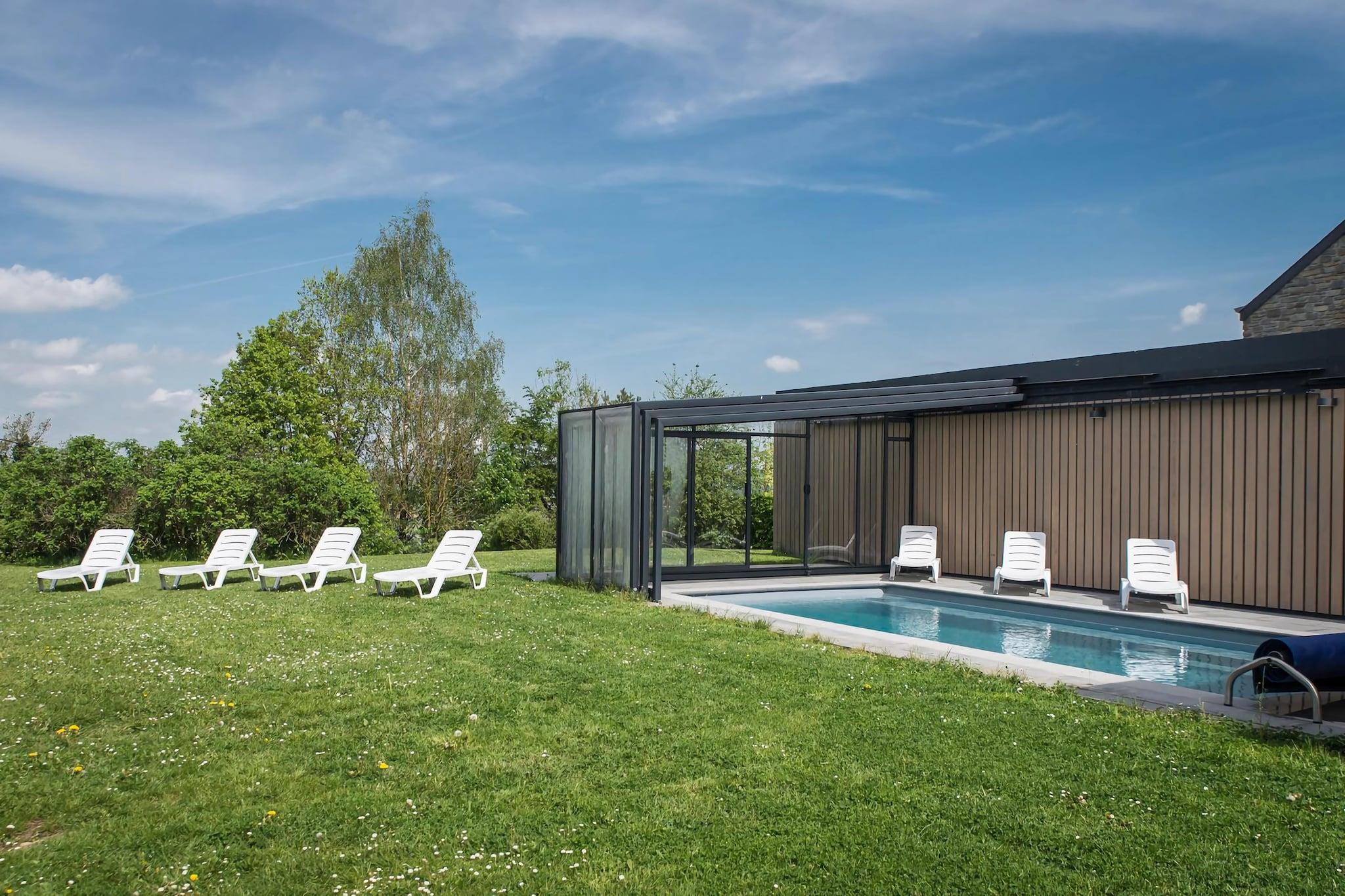 Dette luksuriøse feriehus, perfekt til store familier eller grupper, kan prale af syv rummelige soveværelser, der kan rumme op til 18 gæster. Moderne faciliteter sikrer komfort og bekvemmelighed i hele hjemmet. Beliggende kun 6 kilometer fra den fængslende lille by Durbuy, er ejendommen ideelt placeret til at udforske regionens naturlige skønhed. De omkringliggende skovområder byder på fremragende vandre- og mountainbikestier, der giver muligheder for udendørs eventyr. Ejendommens førsteklasses beliggenhed giver også nem adgang til andre rekreative aktiviteter. En nærliggende golfbane henvender sig til golfentusiaster, mens muligheden for at leje kajakker og deltage i ridning yderligere forbedrer mangfoldigheden af tilgængelige oplevelser. I selve hjemmet kan gæsterne nyde luksuriøs afslapning ved at drage fordel af den indendørs pool, sauna og spabad. For børn tilbyder trampolinen og bordfodbolden sjov og underholdning, mens det hyggelige bålpladsområde skaber et perfekt sted for aftener fyldt med samtaler og fælles øjeblikke. Dette veludstyrede feriehus giver en blanding af udendørs eventyr og indendørs komfort, hvilket sikrer en virkelig mindeværdig oplevelse for alle, der bliver.