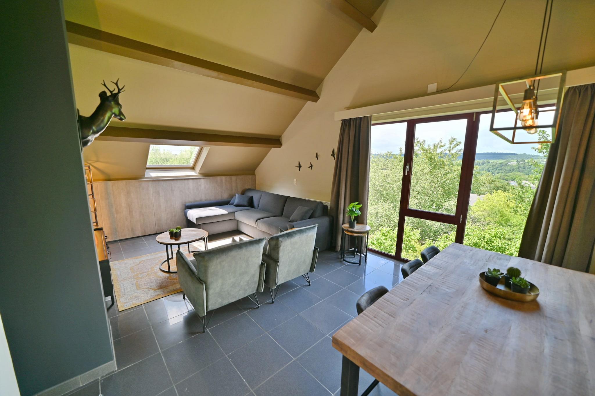 Beliggende i de rolige skove i Résidence Durbuy tilbyder denne charmerende lejlighed på første sal en perfekt blanding af moderne komfort og rustik charme. Varmt interiør, en hyggelig sovesofa og stilfuld indretning skaber en afslappende atmosfære for dit ophold. Det veludstyrede åbne køkken omfatter en kombineret mikrobølgeovn, opvaskemaskine og kaffemaskine i Nespresso-stil - ideel til afslappet morgenmad eller middag med venner. Med to soveværelser og et lækkert badeværelse med badekar-bruser-kombination er rummet perfekt egnet til familier eller små grupper på op til fire voksne og to børn under 12 år. Tag din lodne ven med - denne lejlighed tager imod kæledyr! Udforsk de frodige stier i det nærliggende Bois de Viné, ideel til naturskønne hundeture, eller tag en spadseretur langs Ourthe-floden, kun få minutter væk. Mange lokale caféer og parker i Durbuy er kæledyrsvenlige, og lejlighedens private terrasse er perfekt til at slappe af med din hvalp ved din side. Uanset om du slapper af i solen eller jagter pinde på græsplænen, vil dit kæledyr elske det her lige så meget, som du gør. Kun en kort køretur eller cykeltur fra det historiske centrum af Durbuy finder du brostensbelagte gader med indbydende spisesteder. Forkæl dig selv med lokale favoritter som Le Fou du Roy til belgisk køkken eller nyd brændefyret pizza på en kæledyrsvenlig terrasse på La Piazza. Efter middagen kan du slentre i middelaldergaderne med din hund og nyde magien i den mindste by i verden.