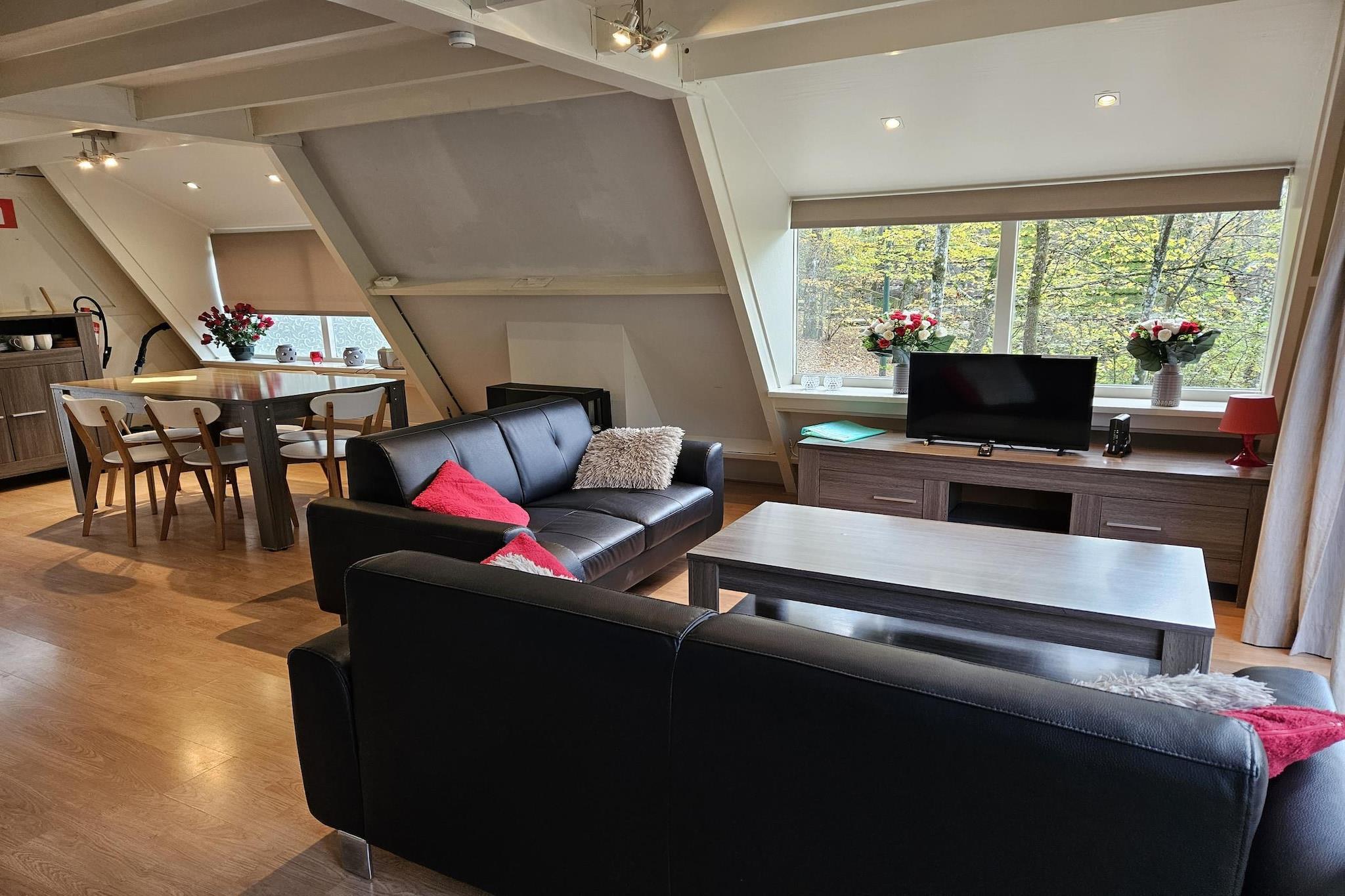 Beliggende i det grønne hjerte af Durbuy tilbyder denne charmerende hytte et hyggeligt og fredeligt tilflugtssted omgivet af den naturlige skønhed i Belgiens Ardenner-region. Den fuldt indhegnede grund tilbyder privatliv og ro, hvilket gør den til et ideelt tilflugtssted for familier, par eller små grupper, der søger et komfortabelt ophold i en af ??Europas mest maleriske byer. Chaleten er 74 m² stor og har en varm og indbydende stue med fladskærms-tv, spiseplads og komfortable siddepladser - perfekt til afslapning efter en dag med udforskning. Det moderne køkken er fuldt udstyret med kogeplade, kaffemaskine, kombineret mikrobølgeovn, opvaskemaskine og alt det nødvendige for at tilberede et hjemmelavet måltid. Et stilfuldt badeværelse med bruser, håndvask og toilet fuldender stueetagens planløsning. Ovenpå finder du to hyggelige soveværelser og en lille gang med en ekstra enkeltseng, der komfortabelt rummer op til fem gæster. Soveværelserne kan arrangeres med enten dobbelt- eller enkeltsenge, hvilket sikrer fleksibilitet for familier eller venner, der rejser sammen. Udenfor inviterer en dejlig terrasse dig til at nyde fredelige morgener med kaffe eller afslappende aftener under stjernerne. Den indhegnede have er ideel for børnefamilier og tilbyder et trygt og roligt miljø. Beliggende på Rue d’Andenne, kun en kort afstand fra Durbuys historiske centrum, tilbyder chaleten nem adgang til naturskønne vandrestier, charmerende restauranter og lokale attraktioner. Håndklæder og køkkenredskaber er ikke inkluderet, men kan lejes i receptionen. Find din Wi-Fi-kode på tv-klistermærket. Aktuelle åbningstider for brasseriet og swimmingpoolen kan fås i receptionen. Støt venligst vores økologiske indsats ved at slukke lys og varme, når du forlader din chalet.