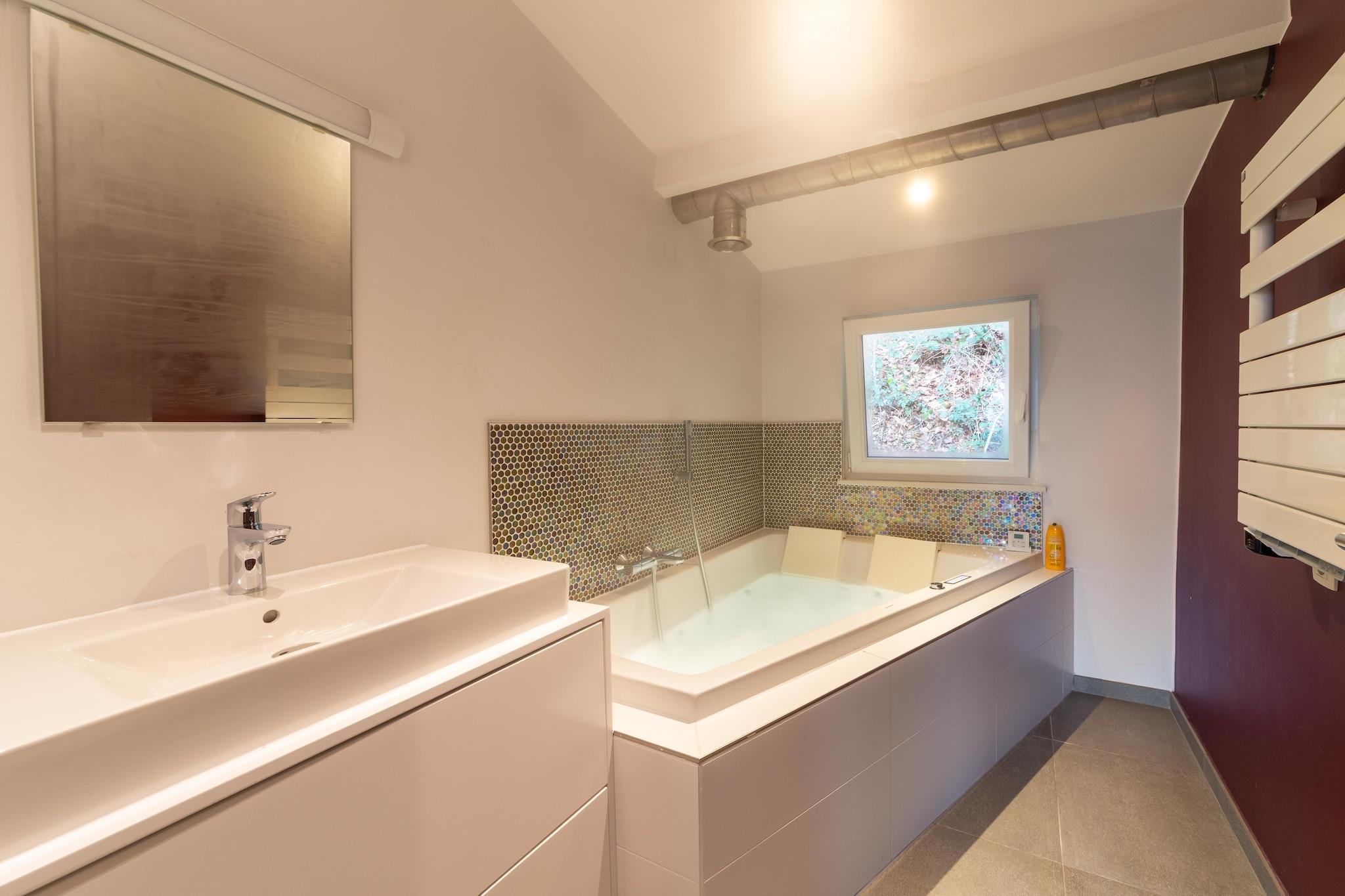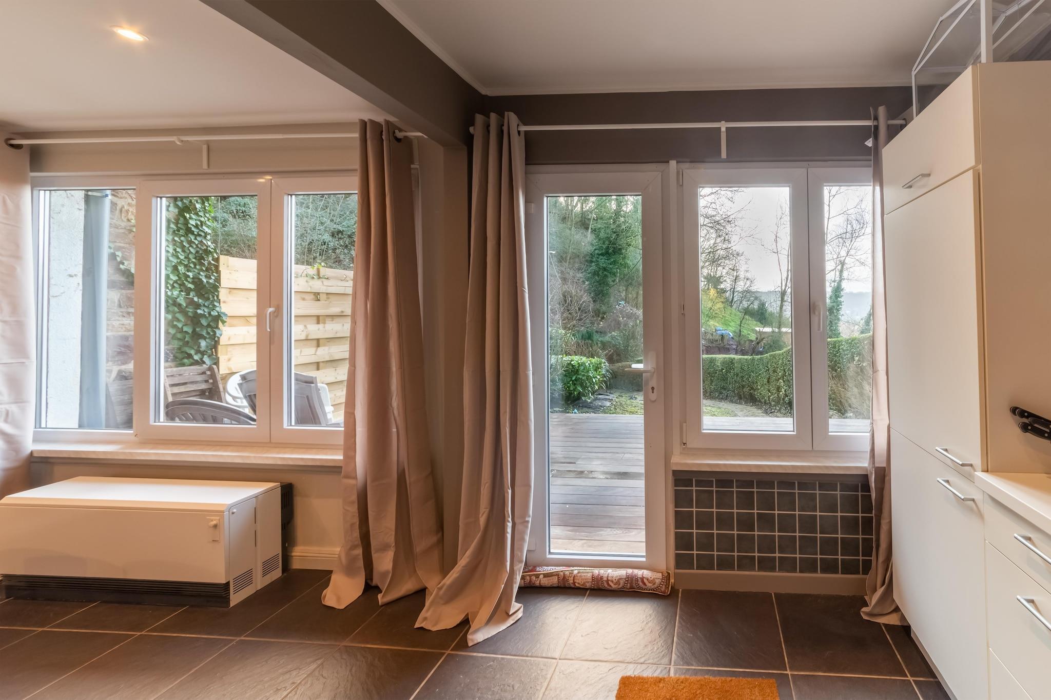 Gemt i de naturskønne bakker i Esneux tilbyder dette charmerende feriehus på Rue Auguste Donnay 25B en fredelig og rummelig tilflugtssted for op til 6 gæster. Stueetagen har en hyggelig stue med en dobbelt sovesofa, en separat spiseplads og et fuldt udstyret køkken med moderne apparater. Et enkelt soveværelse på dette niveau tilføjer fleksibilitet for gæster i alle aldre. Ovenpå finder du to soveværelser med dobbeltsenge, et med balkon og to badeværelser - det ene med bruser og det andet med boblebad for ekstra fornøjelse. Træd udenfor for at nyde to terrasser, en privat have og et grillområde, perfekt til solrige eftermiddage og spisning under åben himmel. WiFi, et tv og tankevækkende detaljer såsom en kaffemaskine og opvaskemaskine sikrer et behageligt ophold. Beliggende kun 100 m fra L'Aubergine Restaurant og tæt på naturstier, lokale spisesteder og Ourthe-floden, er dette hjem ideelt til både afslapning og udforskning. Uanset om du vandrer, cykler eller blot slapper af i haven, tilbyder dette tilflugtssted en solrig og godt forbundet base i hjertet af Liège-provinsen.