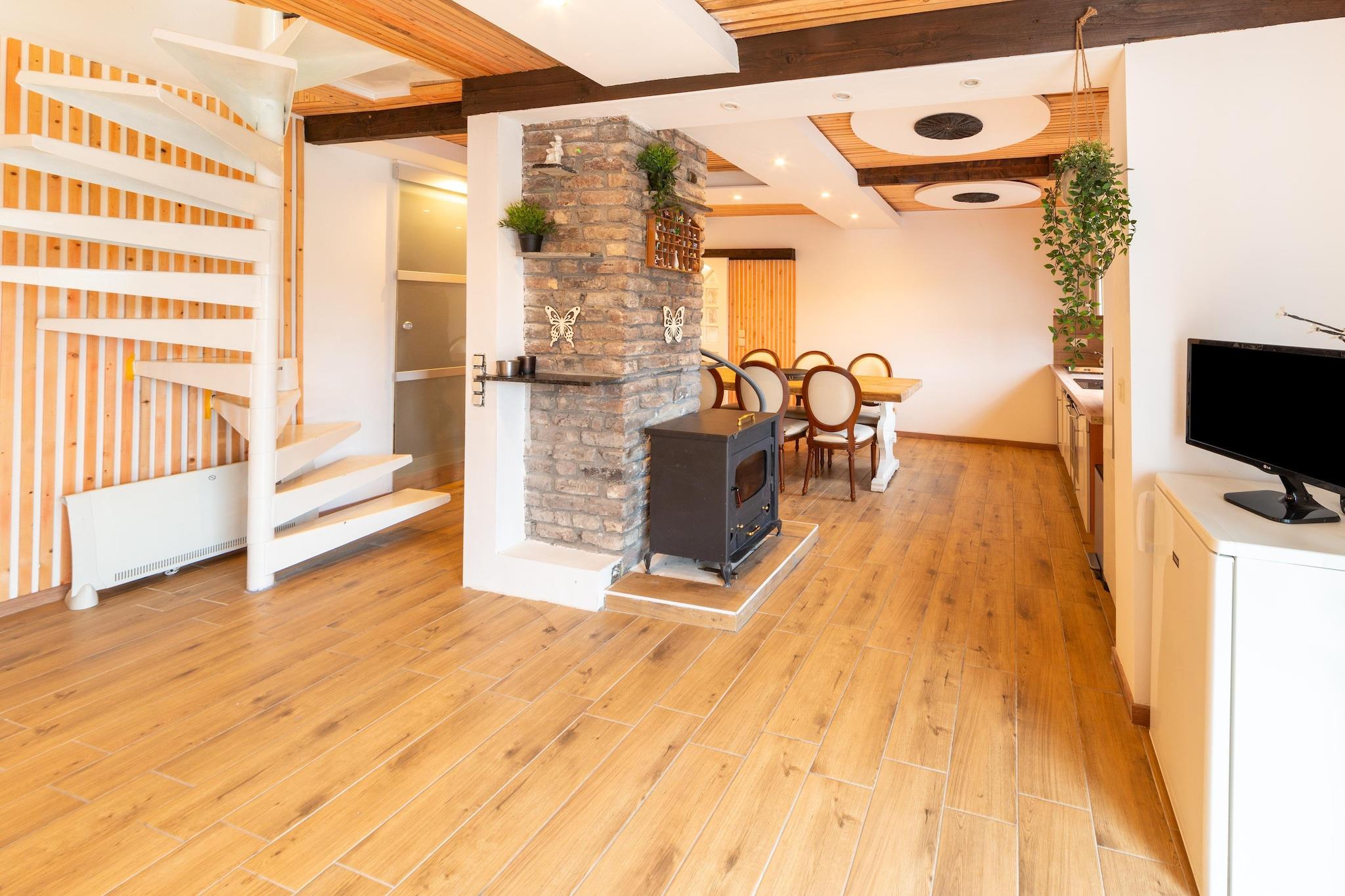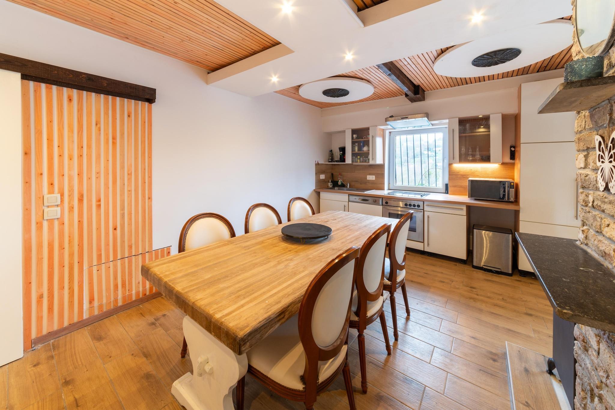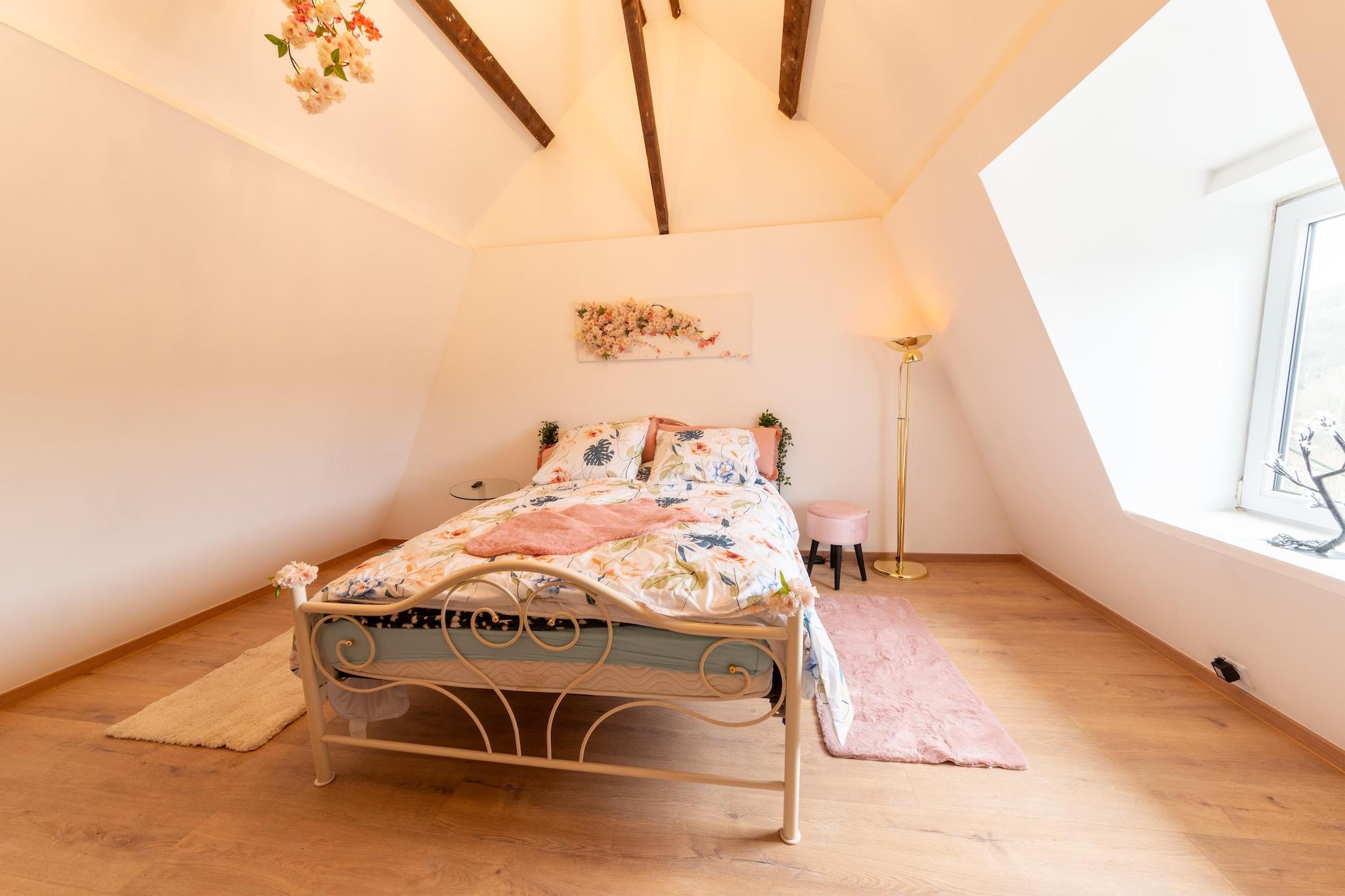 Dette hyggelige feriehus i Esneux-Tilff tilbyder et varmt og indbydende ophold i hjertet af Belgiens frodige Liège-region. Ejendommen er ideel til familier eller små grupper, og den er beliggende nær Ourthe-floden og kun 1 km fra naturskønne skove - perfekt til vandreture og naturvandringer. Gæsterne kan udforske nærliggende attraktioner såsom Château du Rond-Chêne, Grottes de Comblain og panoramaudsigtspunktet Roche-aux-Faucons. Den pulserende by Liège, kun 13 km væk, byder på museer, shopping og natteliv. Huset har en rummelig stue med fladskærms-tv og plads til seks, spiseplads og fuldt udstyret køkken med keramisk kogeplade, ovn og opvaskemaskine. Med tre soveværelser - to dobbeltværelser og en tvilling - kan det komfortabelt sove op til seks gæster. To badeværelser, et med bruser og et med badekar, tilføjer bekvemmelighed. Et pillefyr giver hyggelig varme, mens terrasse, havemøbler, grill og bordfodbold byder på udendørshygge. Parkering og en børneseng gør det familievenligt. Esneux og Tilff kan prale af fremragende spisemuligheder kun 100 meter væk. Nyd raffineret belgisk køkken på L'Olivier des Sens, italienske favoritter på La Vita e Bella eller afslappede måltider på Le Châtillon. Uanset om du udforsker skovstier, besøger slotte eller nyder lokale smagsoplevelser, er dette hjem en perfekt base for dit Ardennereventyr.