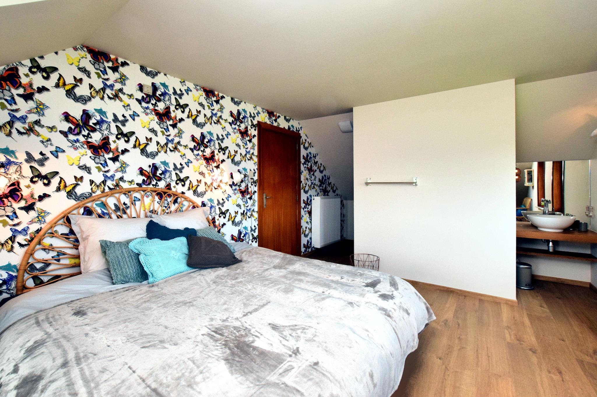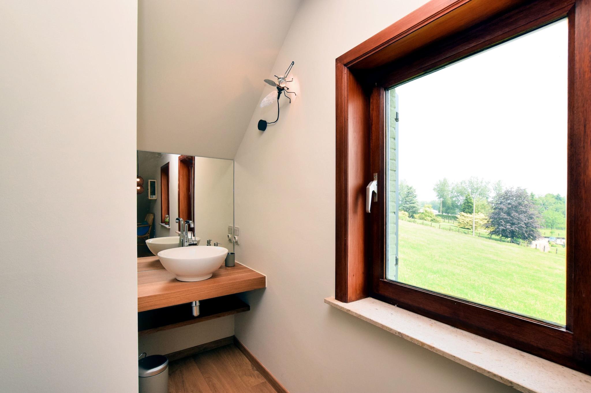 Når du kører op ad indkørslen af dette hus, vil du næsten ikke tro hvor meget plads du har her. Foran huset er der en meget stor og velholdt have, som får dig til at føle at royalty kommer til din i godt vejr kan du vælge om du vil føle græsset under dine fødder eller om du vil sidde på terrassen ved siden af huset. I begge tilfælde vil du nyde godt af den sydvendte beliggenhed. Du har også en smuk udsigt over de grønne bakker i det omkringliggende område. Huset er blevet renoveret for nylig og har nu alle moderne bekvemmeligheder. Opkørslen deles med huset BE-7880-02, og haverne er forbundet, men du har fuldstændig privatliv. Men hvis du er sammen med en større gruppe, er kombinationen af de to huse ideel til at opretholde privatlivet blandt jer. På den vestlige kant af Ardennerne er det den ideelle base, hvorfra man kan se og udføre mange aktiviteter. Bjergene er også velegnede til den mindre uddannede cyklist.