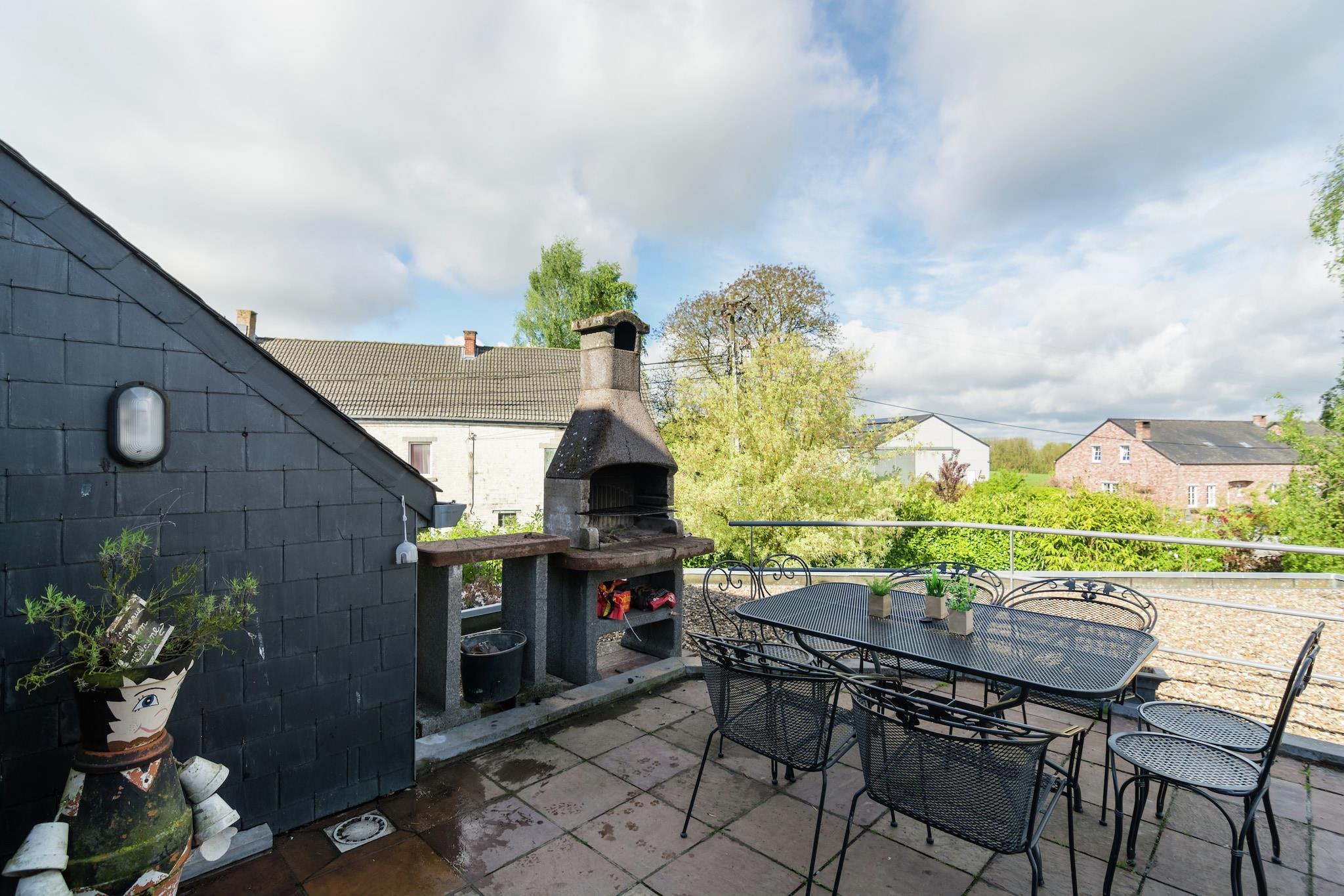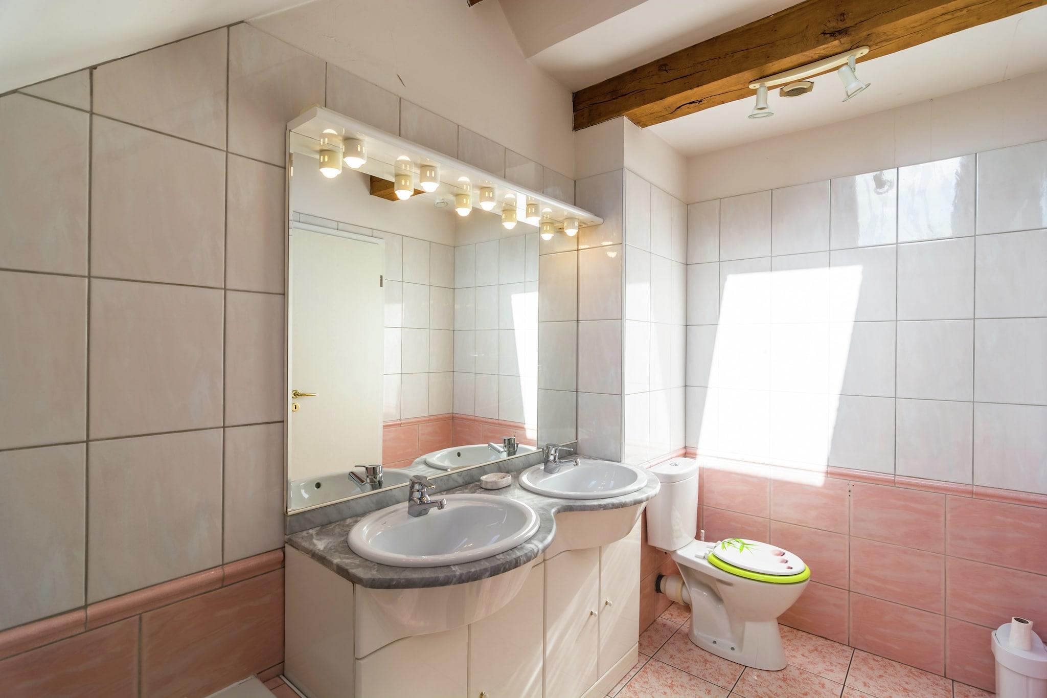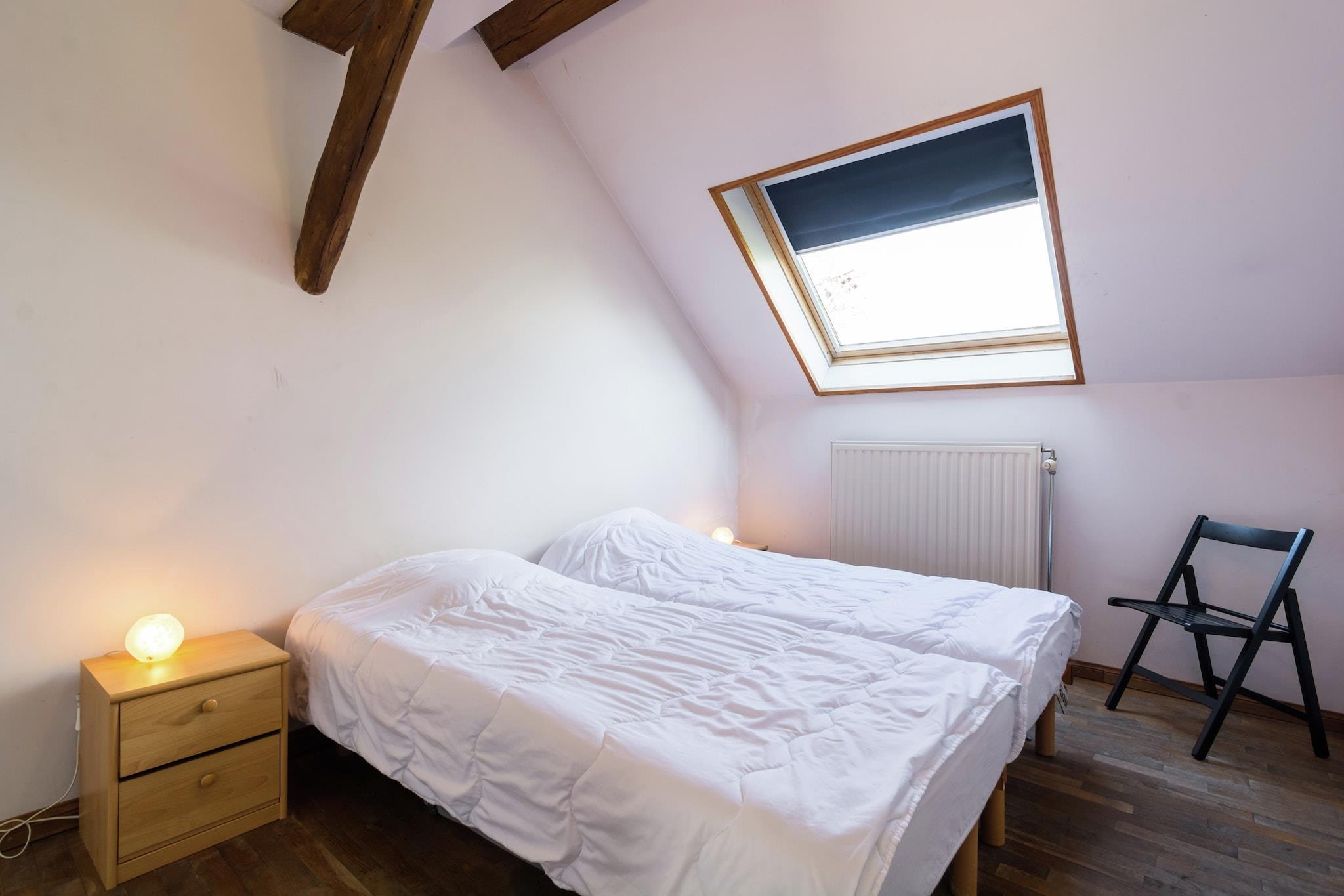 Dette smukt designede 4-værelses bondehus i Fontenelle byder velkommen til op til 10 gæster, hvilket gør det ideelt for familier eller grupper, der søger fred og komfort. Omgivet af rolig natur og kun 5 km fra en naturskøn sø, byder det på masser af udendørs aktiviteter, herunder en boulebane på stedet. Inden for 4 km finder du restauranter, butikker og offentlig transport for din bekvemmelighed. Stuehuset har en dejlig have med møbler, en terrasse med grill og legeredskaber, hvilket gør det børnevenligt. To kæledyr er også velkomne. Indenfor kan du nyde en hyggelig stue med en dobbelt sovesofa, tv og stereoanlæg. Det åbne køkken er fuldt udstyret med moderne hårde hvidevarer. Der er to badeværelser og et ekstra toilet samt vaskefaciliteter. Centralvarme sikrer et behageligt ophold året rundt. Bruxelles Lufthavn ligger 35 km derfra og tilbyder nem adgang til dette fredelige oase.