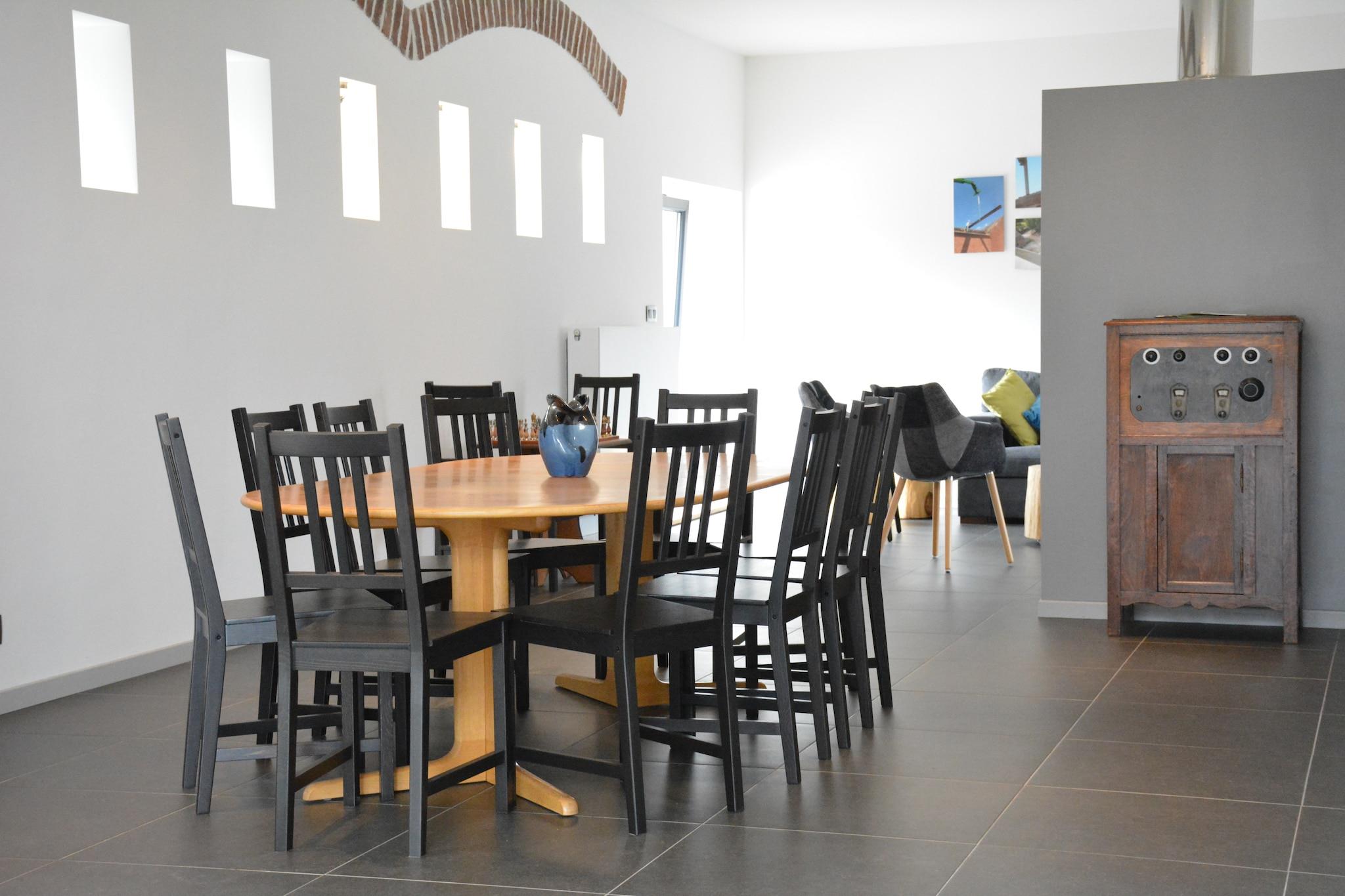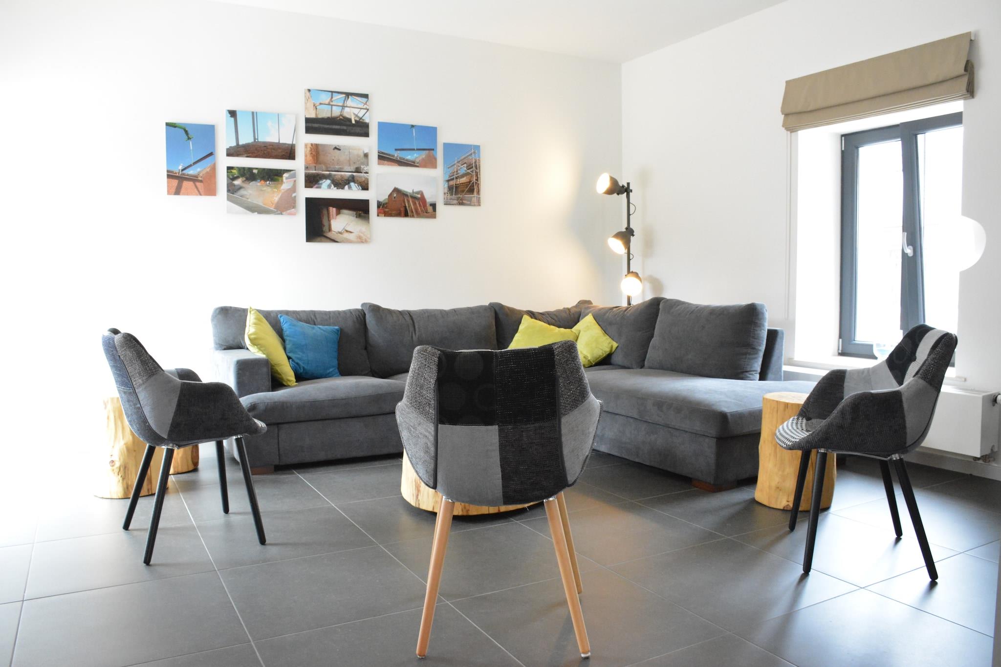 Dette feriehus med 4 soveværelser i Fernelmont tilbyder en fredelig, landlig flugt på en fungerende gård, ideel til familier eller grupper på op til 12 gæster. Nyd den private have med panoramaudsigt, en rummelig terrasse og gratis WiFi i hele hjemmet. Parkering er tilgængelig på stedet. Beliggende kun 12 km fra Eghezée, mellem de historiske byer Huy og Namur, er området perfekt til vandre- og cykelture. Tag på dagsture til Leuven, Liège (40 km) eller Bruxelles (60 km). Nærliggende attraktioner omfatter Han-hulerne, Domaine de Chevetogne og slottet Modave. Indvendigt har boligen et veludstyret køkken, brændeovn og flere badeværelser. Børn vil elske legeredskaber, bordtennis og faciliteter såsom en børneseng, høj stol og kravlegård. En charmerende og familievenlig base i hjertet af Vallonien2.
