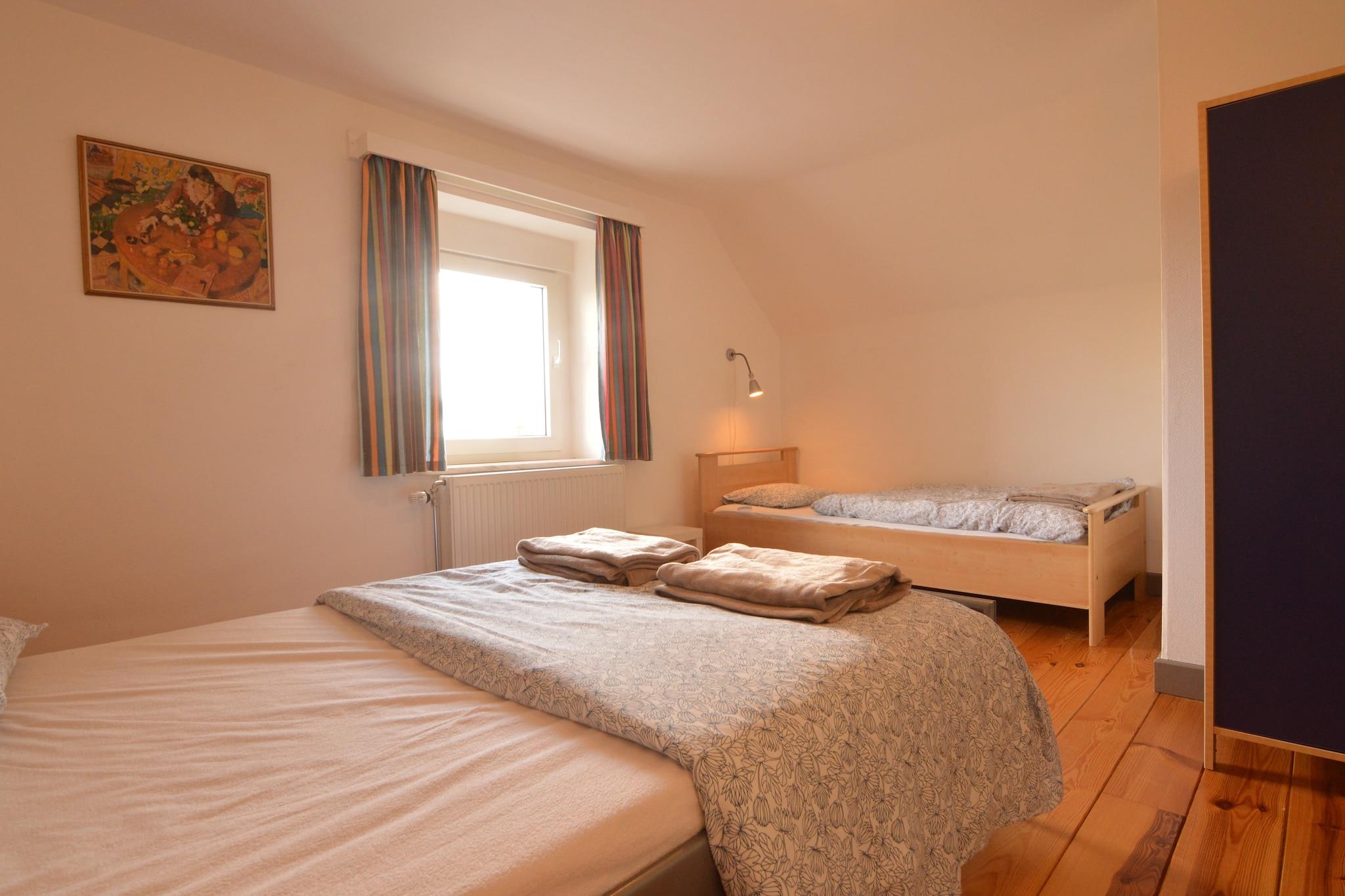 På 1. etage: (åbent køkken(komfur(Komfur med fire kogeplader), ovn, opvaskemaskine , køle-fryseskab), stue / spisestue(Fjernsyn, DVD-afspiller), soveværelse(dobbeltseng), soveværelse(enkeltseng, dobbeltseng, håndvask), soveværelse(dobbeltseng, køjeseng, håndvask), badeværelse(bruser, håndvask, toilet), toilet(håndvask)) varme, terrasse, have, havemøbler, grill, parkering, legeredskaber