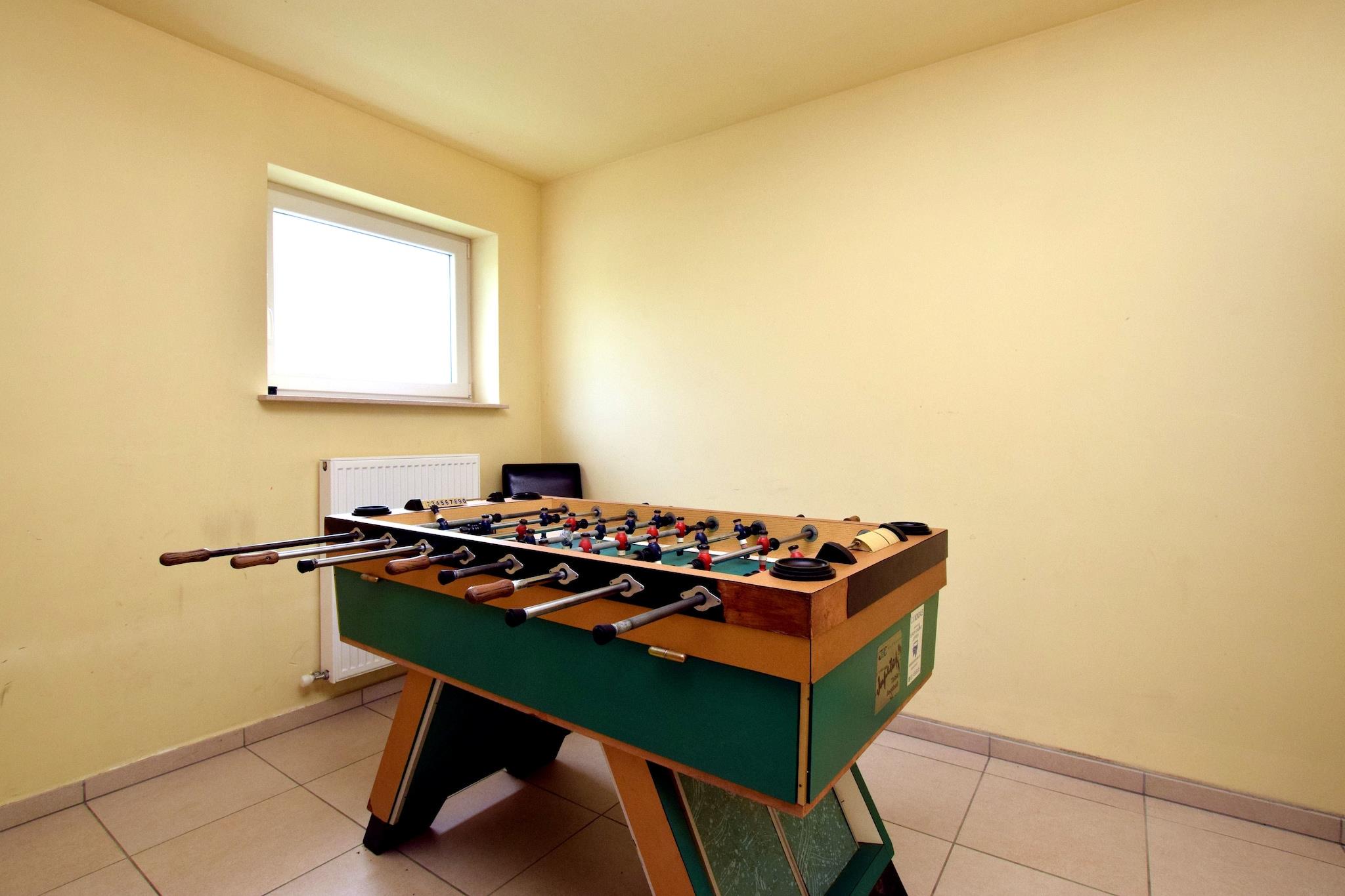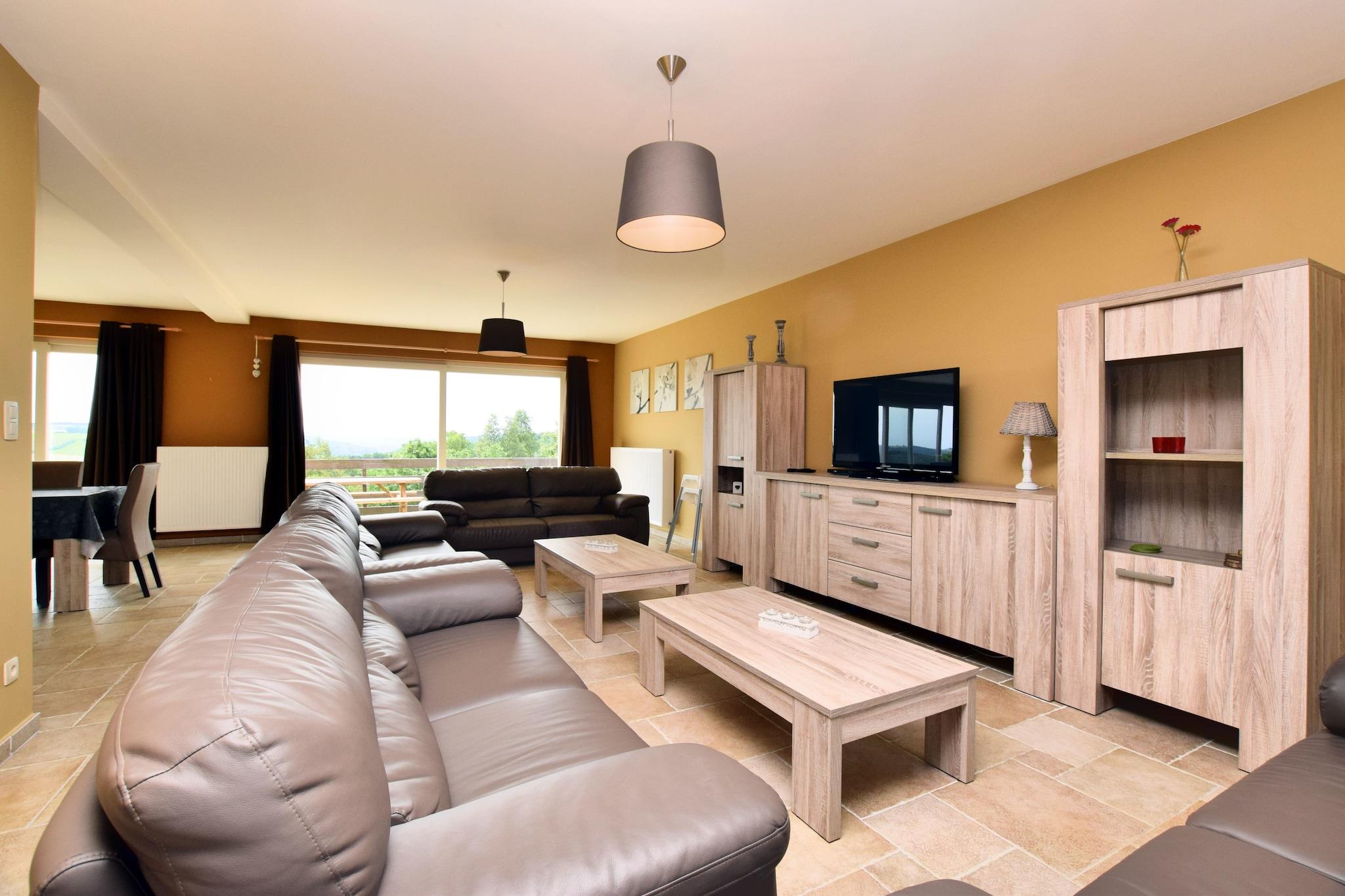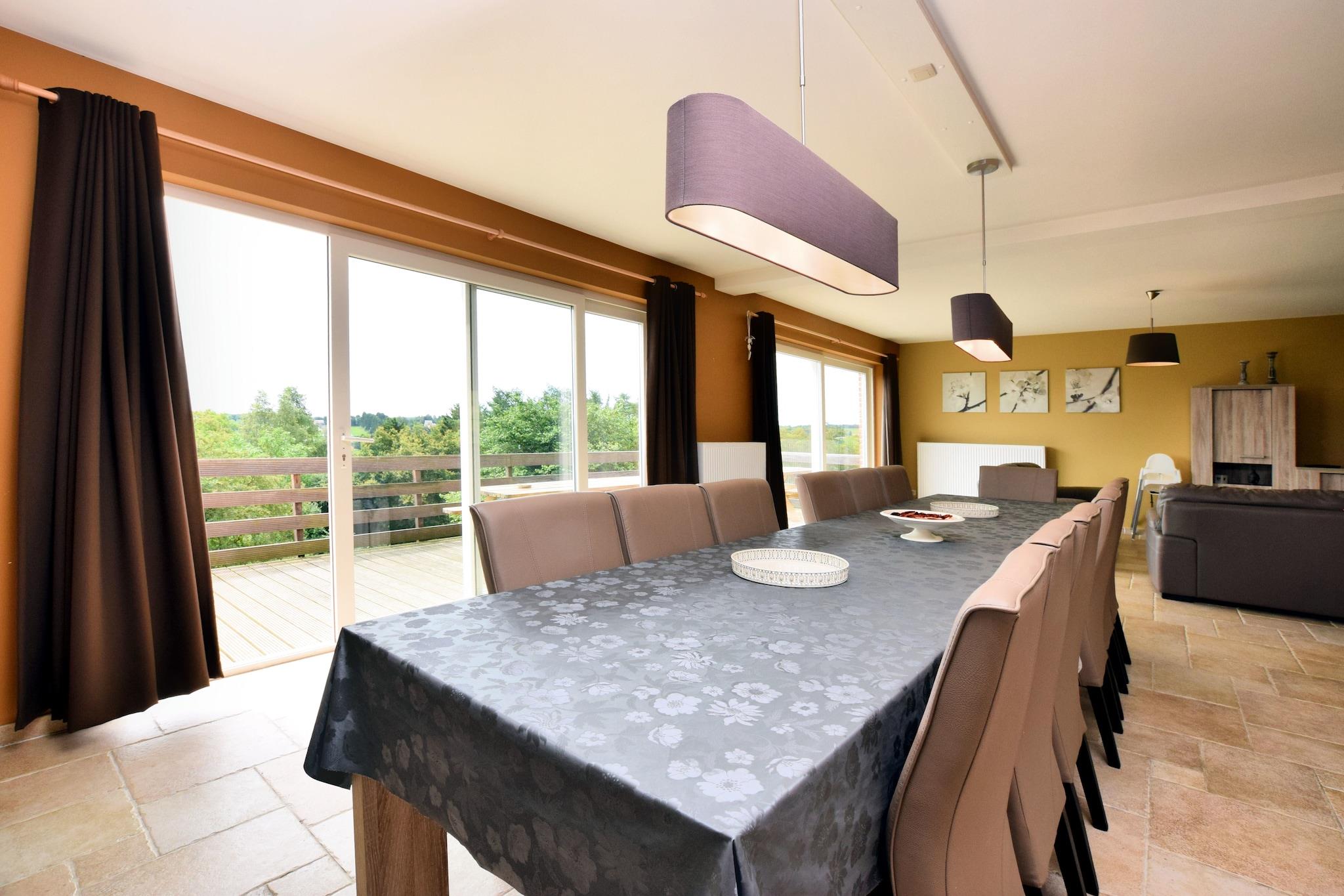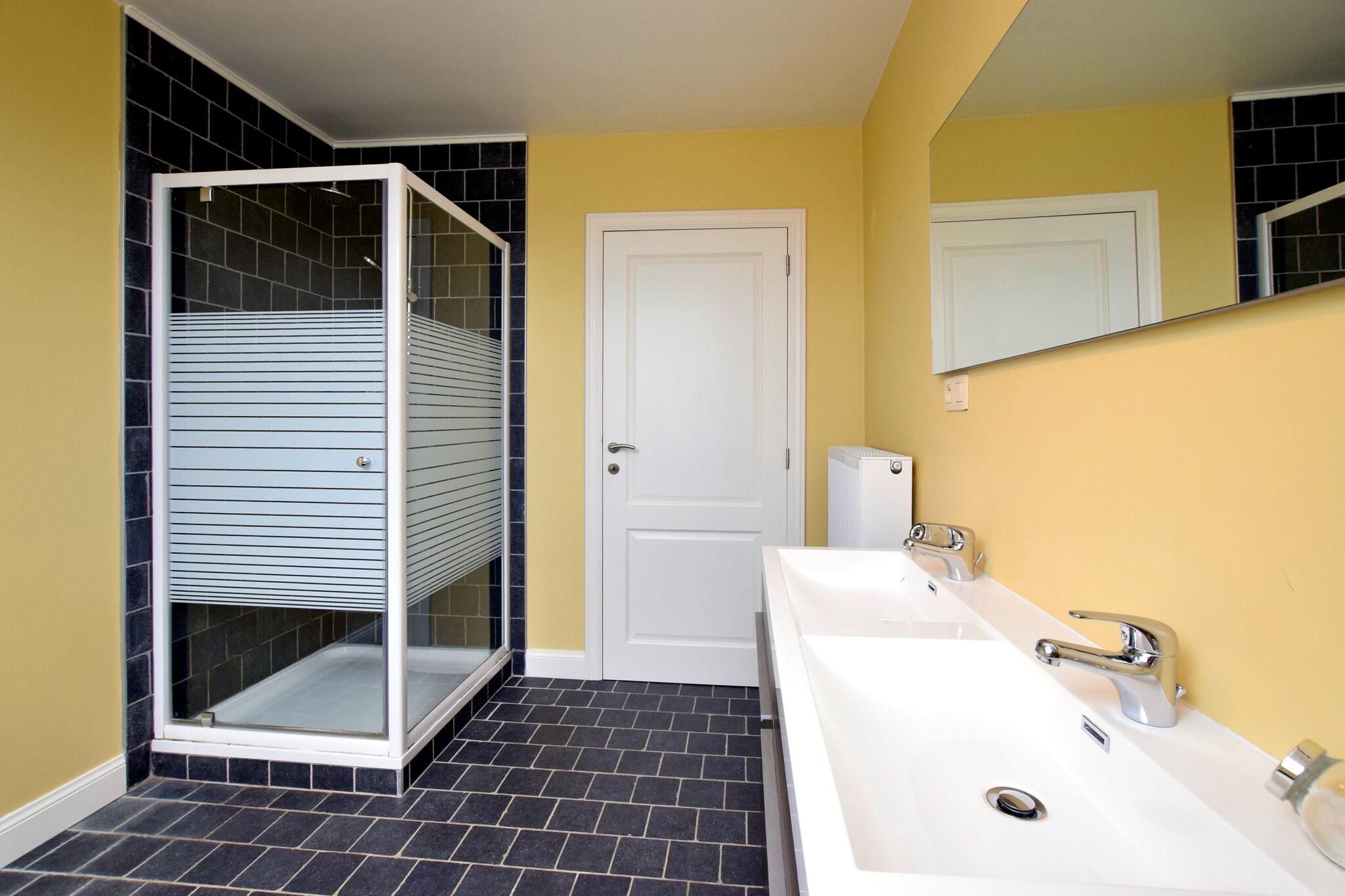 Dette stilfulde feriehus ligger i Hastière, nær Dinant i Ardennerne og tilbyder en fantastisk udsigt over Meuse-dalen. På en klar dag kan du endda se så langt som Frankrig! Dette rummelige feriehus har al den luksus du måtte have brug for, og dette kombineret med den smukke udsigt gør det til et dejligt, afslappet og ubekymret ophold i Ardennerne. Den traditionelle korridor fører ind i den rummelige og pænt indrettede stue med en dejlig opholdsstue. De franske døre i stuen giver adgang til den rummelige terrasse hvor det er dejligt at sidde i solen og nyde udsigten. Vil du gerne spille bordtennis eller måske et fodboldspil? Du kan finde alt dette I det separate aktivitetsområde! Omgivelserne på dette sommerhus tilbyder mange muligheder for vandreture, mountainbiking, cykling, kajak eller langrend. Husk at besøge det attraktive lille lørdagsmarked i byen Hastière. rejseplanen bør omfatte et besøg i Dinant (17 km) med sin verdensberømte citadel, Frankrig (inden for 10 km) eller Namur (50 km).