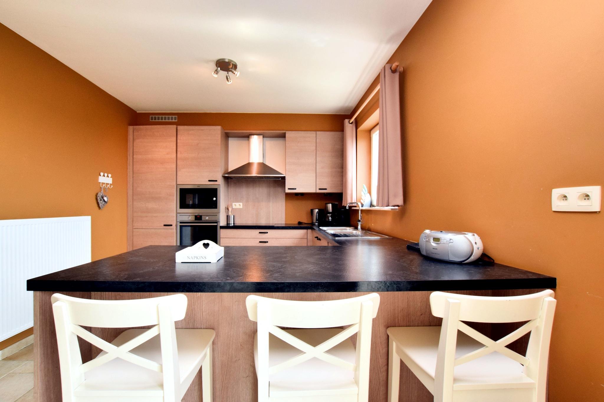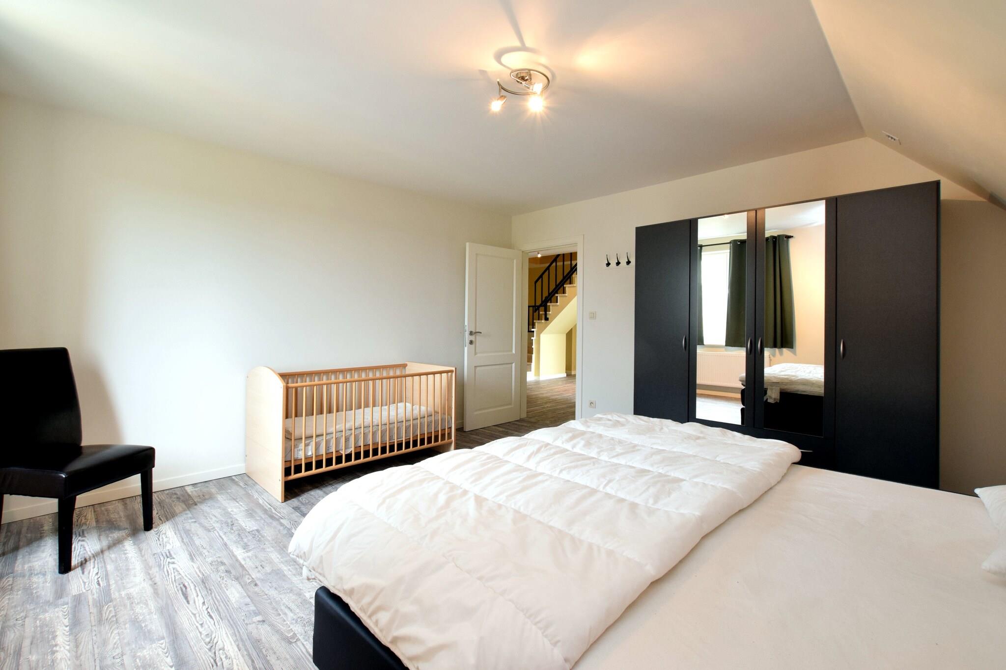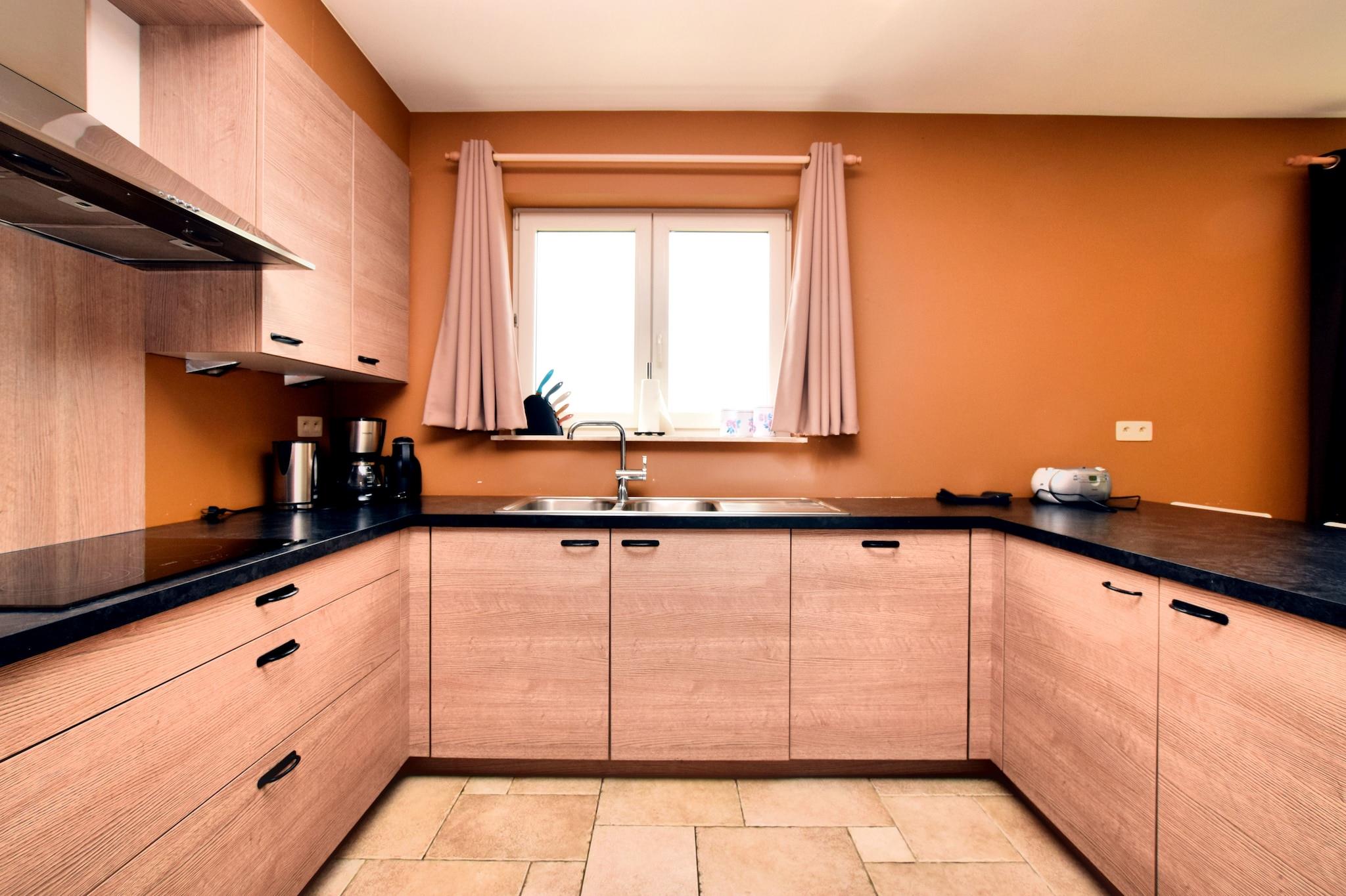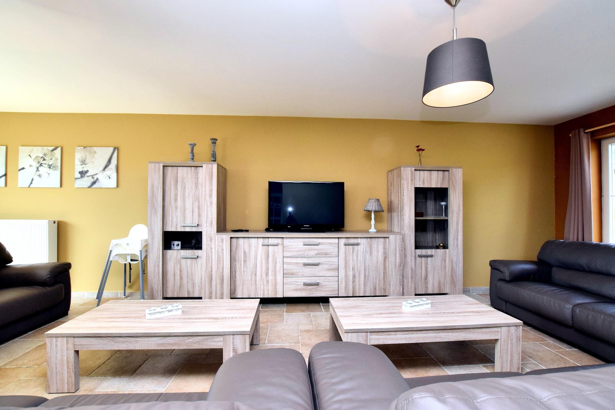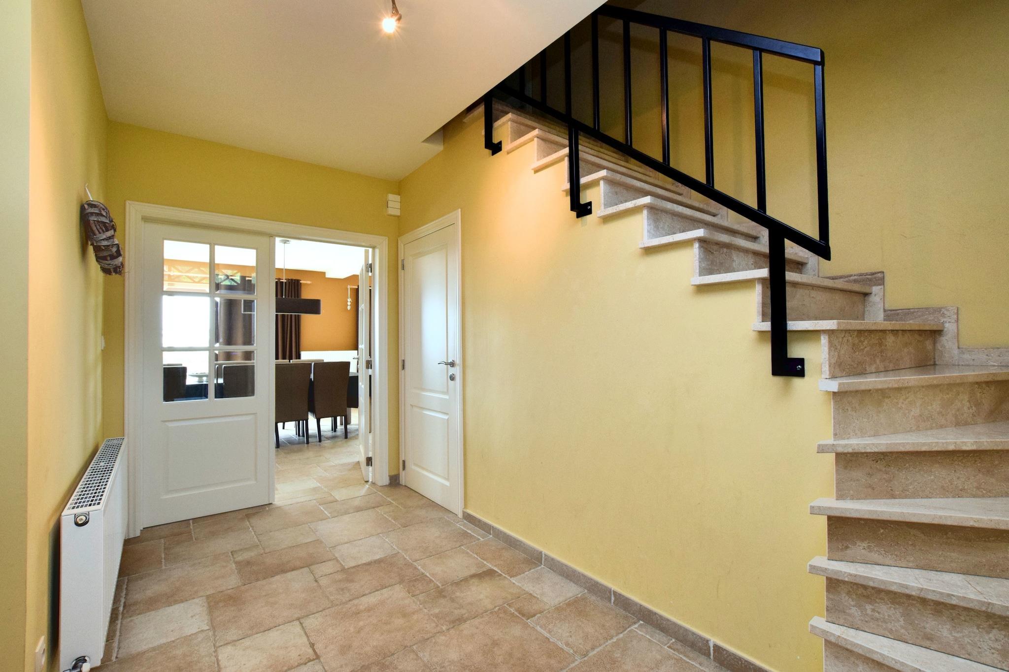 Dette stilfulde feriehus ligger i Hastière, nær Dinant i Ardennerne og tilbyder en fantastisk udsigt over Meuse-dalen. På en klar dag kan du endda se så langt som Frankrig! Dette rummelige feriehus har al den luksus du måtte have brug for, og dette kombineret med den smukke udsigt gør det til et dejligt, afslappet og ubekymret ophold i Ardennerne. Den traditionelle korridor fører ind i den rummelige og pænt indrettede stue med en dejlig opholdsstue. De franske døre i stuen giver adgang til den rummelige terrasse hvor det er dejligt at sidde i solen og nyde udsigten. Vil du gerne spille bordtennis eller måske et fodboldspil? Du kan finde alt dette I det separate aktivitetsområde! Omgivelserne på dette sommerhus tilbyder mange muligheder for vandreture, mountainbiking, cykling, kajak eller langrend. Husk at besøge det attraktive lille lørdagsmarked i byen Hastière. rejseplanen bør omfatte et besøg i Dinant (17 km) med sin verdensberømte citadel, Frankrig (inden for 10 km) eller Namur (50 km).