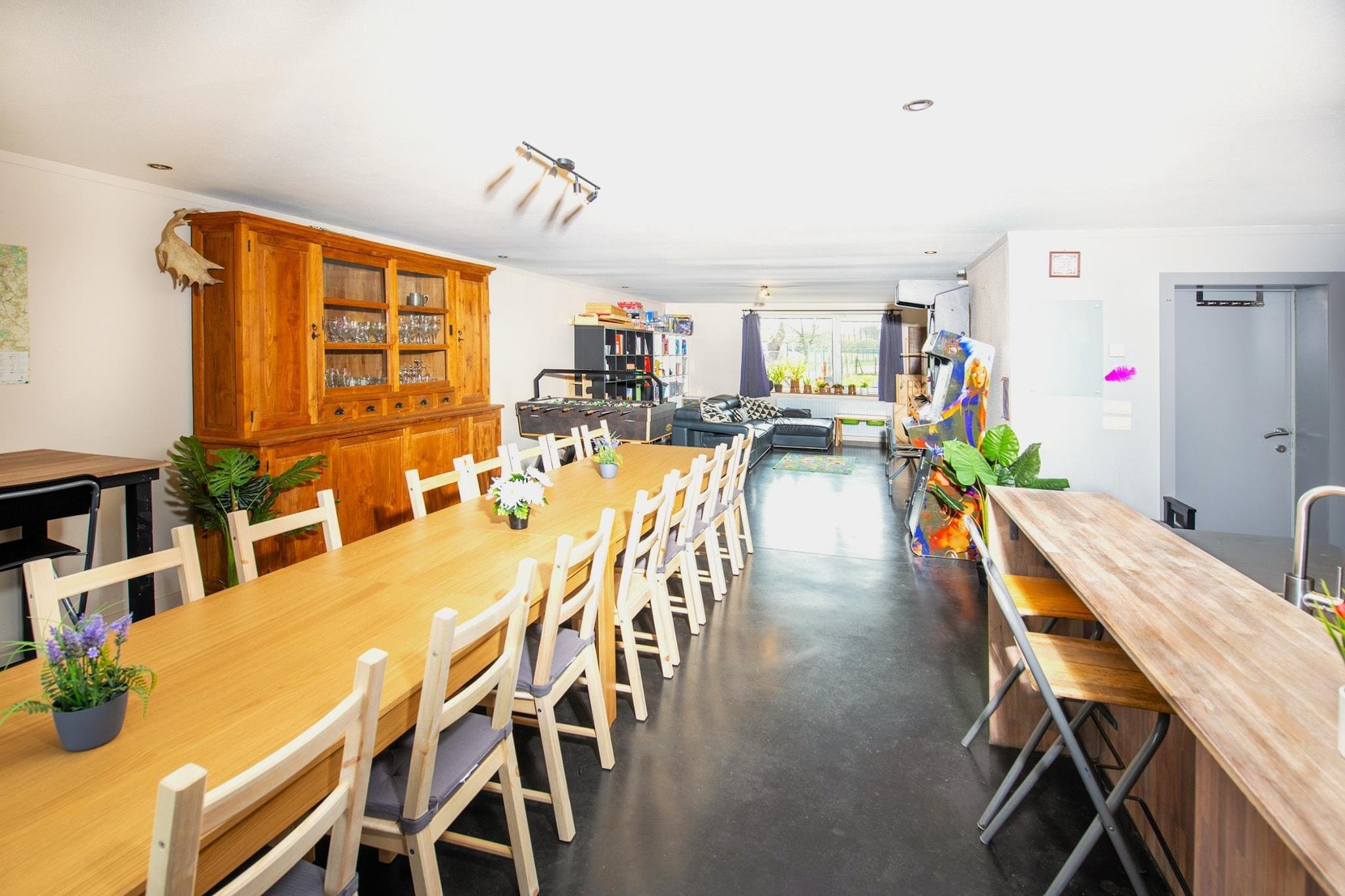 Velkommen til ›De Smishoeve‹, en alsidig ferie gård i Heers, hvor afslapning, sjov og natur mødes, perfekt for familier, vennegrupper og par! De Smishoeve består af fire forskellige boliger på én speciel beliggenhed: ›Het Hol van de Vos‹ (BE-3870-13), ›Huis van de Raaf‹ (BE-3870-15), ›Het Arends Nest‹ (BE-3870-14) og ›De Karper Studio‹ (BE-3870-12). Tilsammen tilbyder de plads til 22 gæster og deres hunde. Boligerne har i alt 7 soveværelser, 6 badeværelser og 3 separate toiletter. Der er også et stort fællesområde, hvor hele gruppen kan samles og nyde barspil, herunder dart, bordfodbold og en arkadespilcomputer med 2100 retrospil fra 80'erne og 90'erne, perfekt til timevis af sjov. Fra sofaen kan du nyde en smuk udsigt over alpakaerne, haven, markerne og frugtplantagerne. En unik og afslappende oplevelse. Hovedkøkkenet i det fælles område er fuldt udstyret med opvaskemaskine, kaffemaskine, ovn og mikroovn. Der er også to andre køkkener og et tekøkken i de andre områder. Hvert hus har digitalt tv med Netflix og YouTube. Der er parkeringsplads lige uden for døren, hvilket gør det nemt at læsse og aflæsse. Der er tre vaskemaskiner, hvilket er praktisk ved længere ophold. Grunden har flere terrasser, hvoraf to er overdækkede, udstyret med en boulebane, grill, pizzaovn og loungeområde. For børnene er der en gynge og en legeplads i sandet i haven. Gården ligger på en vej med lidt trafik, så de kan lege sikkert udenfor. For ekstra sjov er der mulighed for at leje 20 folkelege i træ og gokarts på stedet. Gården er hjemsted for høns, kaniner, kalkuner, alpakaer, grise og ænder, hvilket gør dit ophold endnu mere behageligt og giver dig mulighed for at beundre dyrene på tæt hold! At fodre dyrene er en ekstra aktivitet, der kan bookes på stedet. Heers, en malerisk kommune i den frugtbare Haspengouw-region, er strategisk placeret mellem Sint-Truiden og Tongeren-Borgloon, tæt på den vallonske grænse. Landskabet med sine bølgende bakker er rigt på frugtplantager, vinmarker, slotte og charmerende kapeller. Som en del af landskabsparken Heart of Haspengouw tilbyder Heers et ideelt miljø for vandrere og cyklister, der ønsker at nyde årstidens skønhed og lokalt håndværk. To stier passerer endda lige forbi Smishoeve. Yderligere tjenester kan bookes hos ejeren: morgenmad, spabad og sauna.