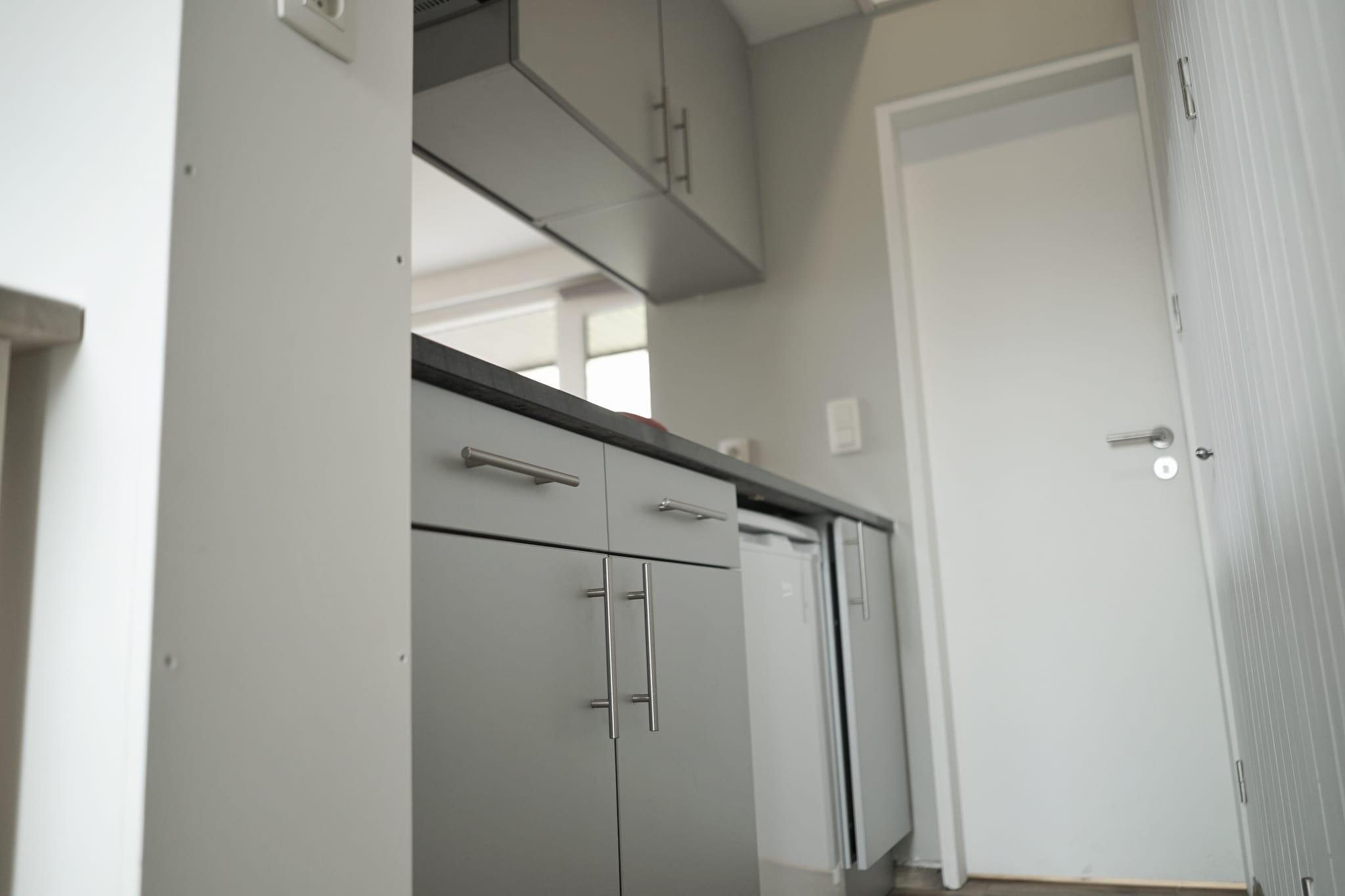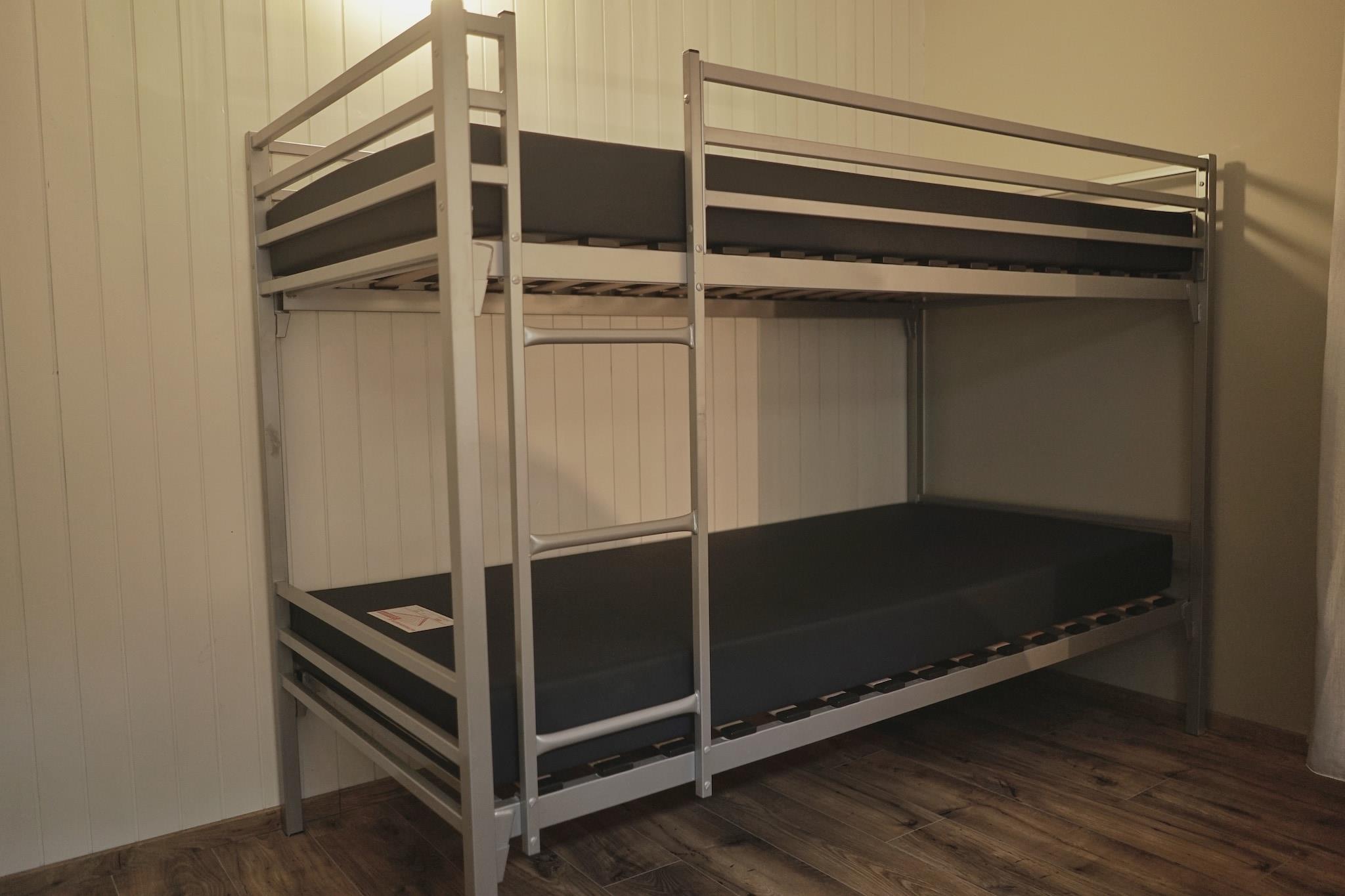 På 1. etage: (Stue(dobbeltsovesofa, Fjernsyn(Smart-TV), spisebord, sofahjørne), åbent køkken(kogeplade, elkedel, kaffemaskine, mikrobølgeovn, køle-fryseskab, , ), badeværelse(bruser, håndvask, toilet)) På 2. etage: (soveværelse(dobbeltseng(160 x 200 cm), køjeseng(90 x 200 cm))) terrasse, havemøbler, grill, parkering