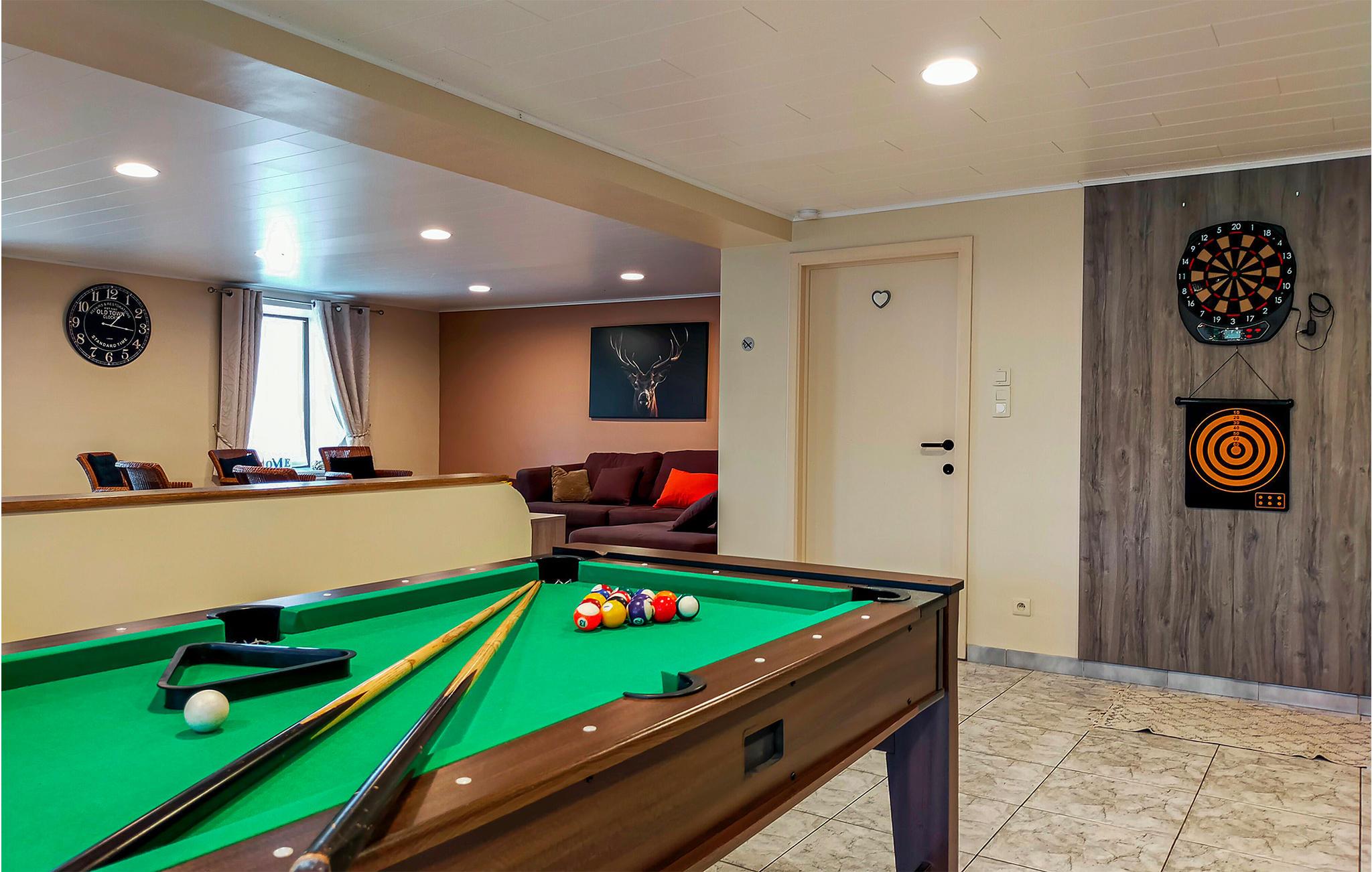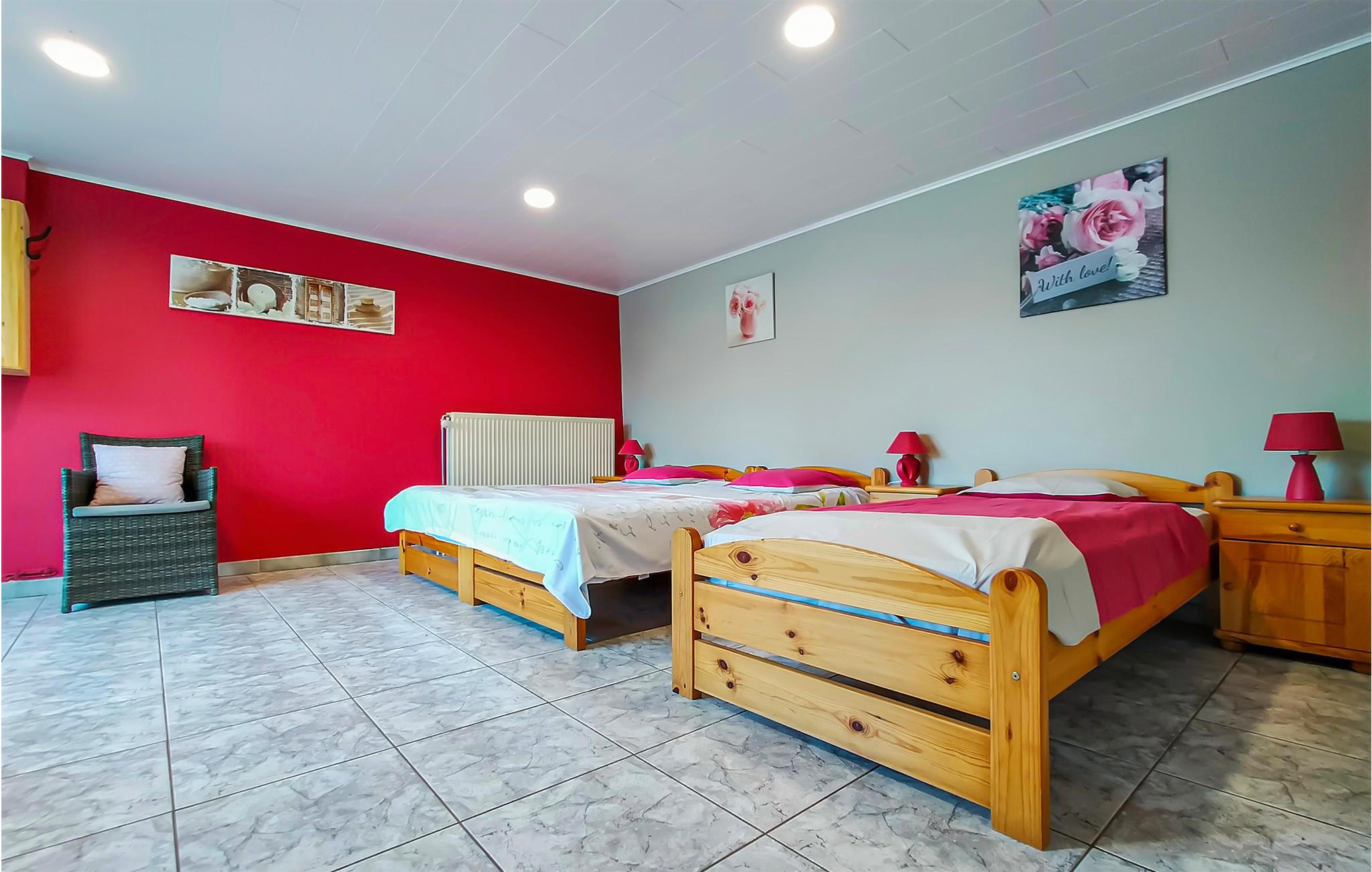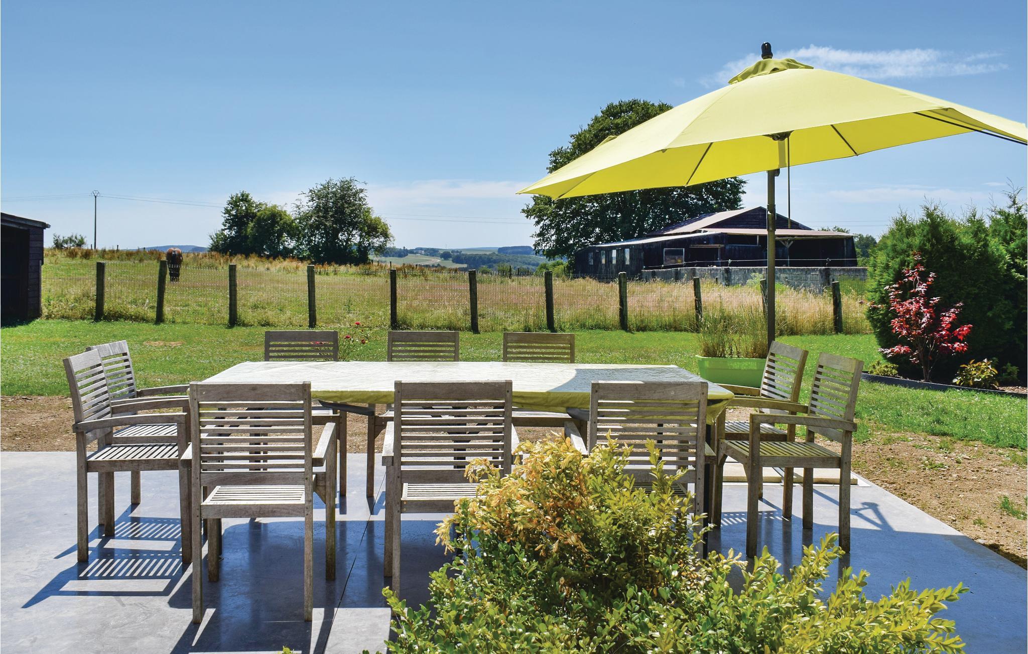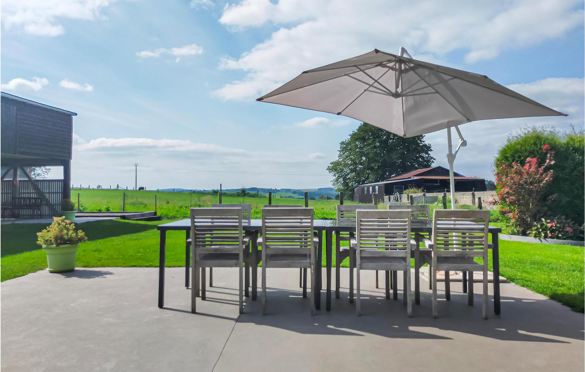 Her er I på ferie i de Høje Ardennere, i en landsby i nærheden af Houffalize. Køkkenet er åbent til den hyggelige spisestue med brændeovn. I stueetagen er der en stor stue med dejligt siddehjørne, tv og aktivitetsrum med bordtennis, billard og babylegetøj. Et soveværelse med tre enkeltsenge er lige ved siden af. Et af soveværelserne er indrettet som familieværelse med flere senge. Fra den lukkede have med behagelig terrasse har I en dejlig udsigt over Ardennernes bakker. Ikke langt herfra kan I vandre i Nisramont. Houffalize er kendt for mountainbike-verdensmesterskaberne, et valfartssted for sportscyklister. Inden for 25 km finder I La Roche med sin borg, grotterne af Hotton og La Chouffe-bryggeriet. Boligen er særligt oplagt for sportslige familier og grupper af venner.