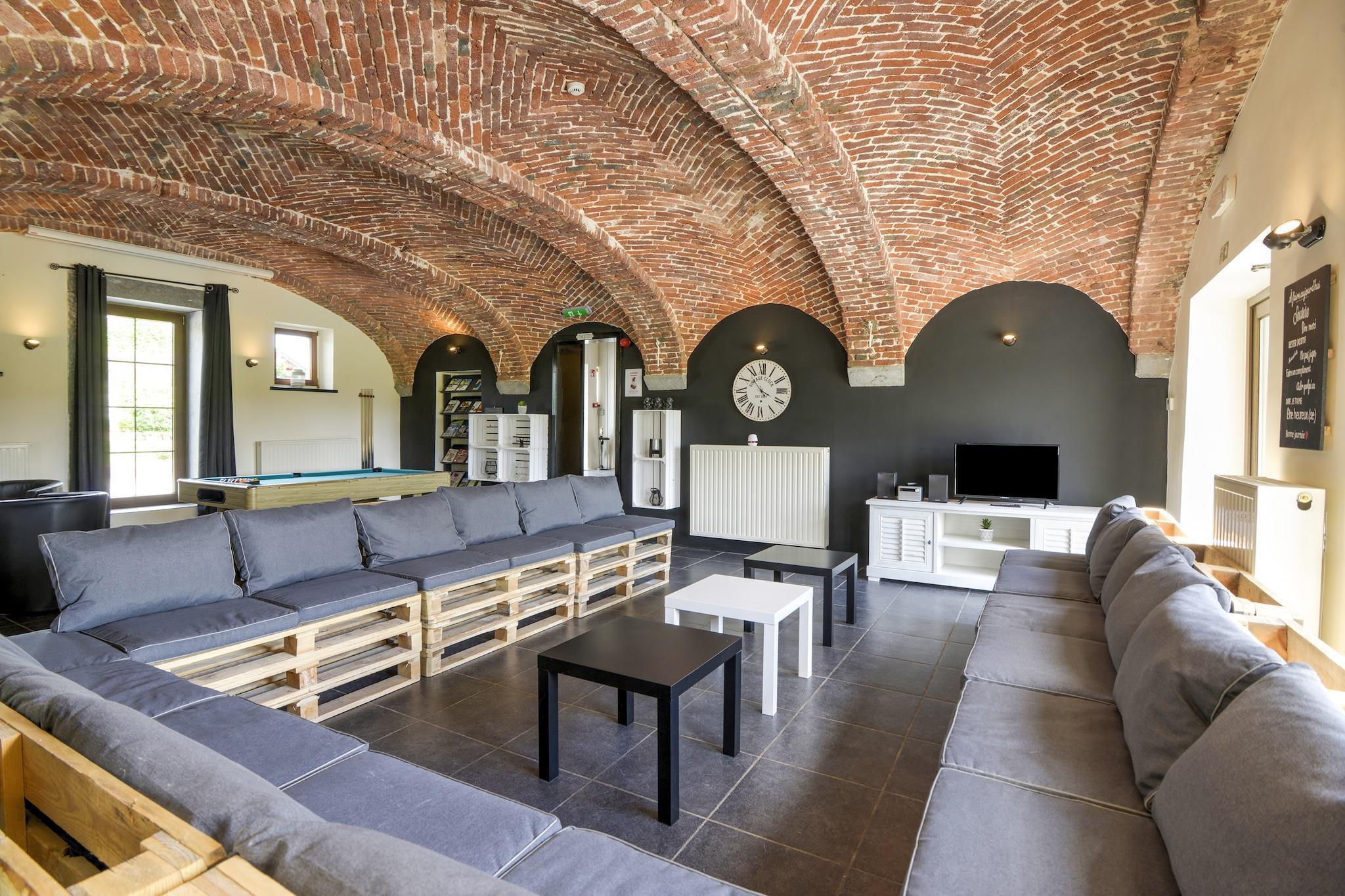Fordyb dig i den tidløse charme i de belgiske Ardenner på La Ferme d'Harroy, et autentisk tidligere bondehus, der er kærligt omdannet til et rummeligt feriested på Lesses fredelige bred. Det er designet til at rumme op til 30 gæster og er de perfekte rammer for familiesammenkomster, firmaseminarer eller længere sammenkomster med venner. Med 9 komfortable soveværelser, hver med eget badeværelse, og 2 tilstødende familievenlige værelser, nyder hver gæst både privatliv og bekvemmelighed. Tilgængelighed er også en prioritet her, med kørestolsvenlige faciliteter og en elevator, der sikrer, at alle føler sig hjemme. Husets hjerte er skabt til samvær: et professionelt køkken til at tilberede måltider med lethed, et indbydende spiseområde til fælles øjeblikke og en hyggelig lounge med bar og billard til aftensjov. Træd udenfor og oplev en verden af fritid - nyd udsigten fra terrassen, nyd et spil petanque eller bordtennis, tænd op i grillen eller lad børnene udforske legepladsen. Med en perfekt beliggenhed nær den kongelige ejendom Ciergnon åbner dette paradis døren til nogle af regionens skatte, lige fra naturreservatet Furfooz og de legendariske Han-huler til det eventyrlige Lavaux-Sainte-Anne-slot. Uanset om du er her for eventyr, afslapning eller teambuilding, lover La Ferme d'Harroy et uforglemmeligt ophold. Vores feriehus er primært skræddersyet til familier - forældre, børn og bedsteforældre - og byder også velkommen til firmaer til seminarer eller teambuilding-weekender. For professionelle grupper kræves bevis for virksomhedsstatus.