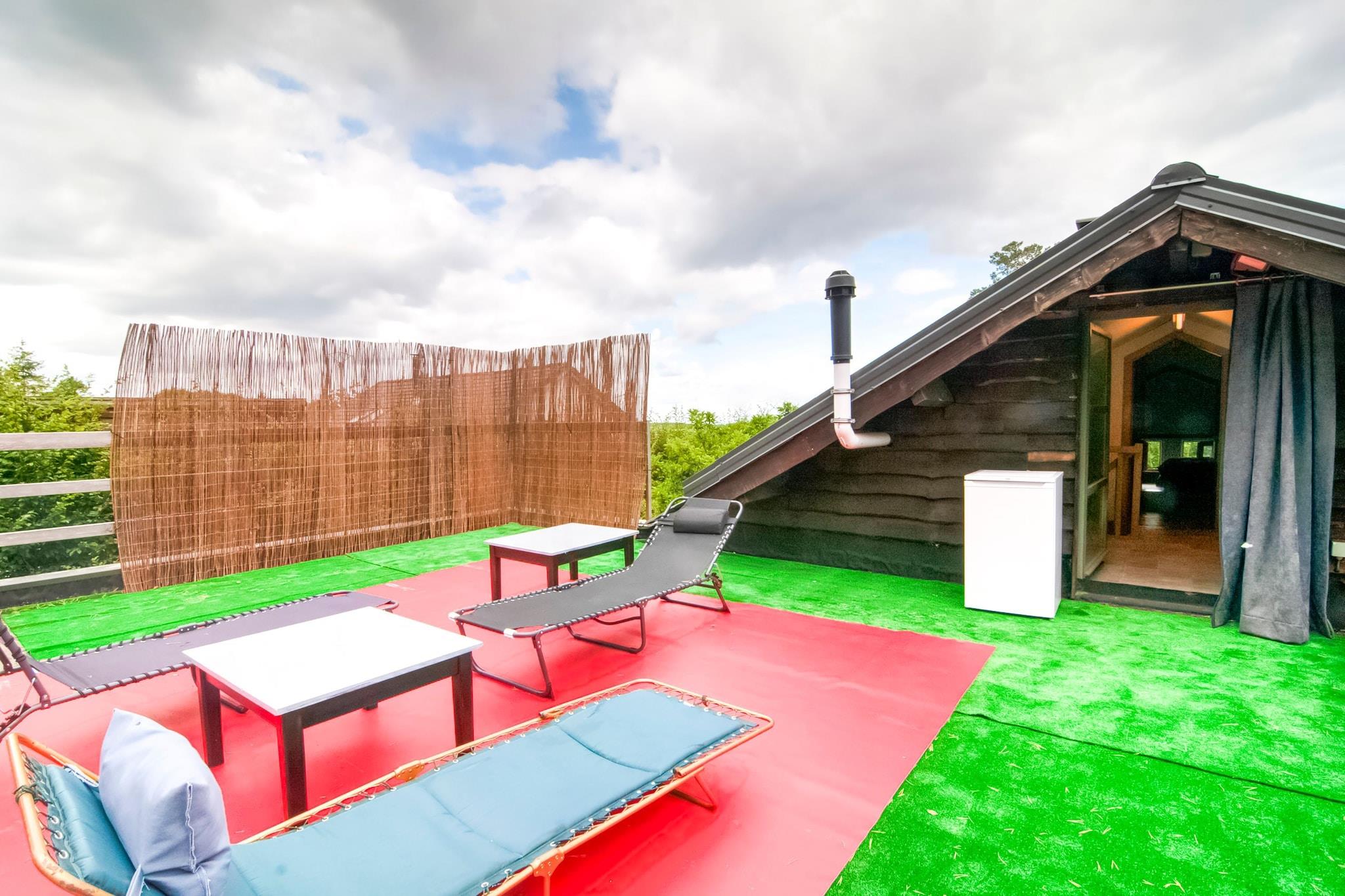 Stueetage: (gang(tørretumbler, tørretumbler, rejseseng, vaskemaskine), Stue(2x enkeltseng(dynebetræk, lagen, 90 x 200 cm), Puslepude), sofastue(Fjernsyn, spisebord, sofahjørne(7 personer)), sofastue(enkeltseng(dynebetræk, lagen, 90 x 200 cm), enkeltseng(dynebetræk, lagen, 90 x 200 cm), spisebord(4 personer)), spisestue(spisebord(8 personer), kakkelovn(træ)), Køkken(elkedel, brødrister, komfur(Komfur med fire kogeplader, glaskeramisk), emhætte, kaffemaskine, ovn, mikrobølgeovn, opvaskemaskine , køle-fryseskab, Stavblender), soveværelse(dobbeltseng(dobbelt dynebetræk, dobbeltlagen, 160 x 200 cm)), badeværelse(badekar, bruser, håndvask, toilet), toilet(håndvask, toilet, pissoir), balkon eller terrasse) På 1. etage: (soveværelse med gennemgang(enkeltseng(dynebetræk, lagen, 90 x 200 cm), dobbeltseng(dobbelt dynebetræk, dobbeltlagen, 140 x 200 cm)), opholdsrum(køleskab, legeredskaber), tagterrasse) have(privat), havemøbler, grill, parkering, trampolin