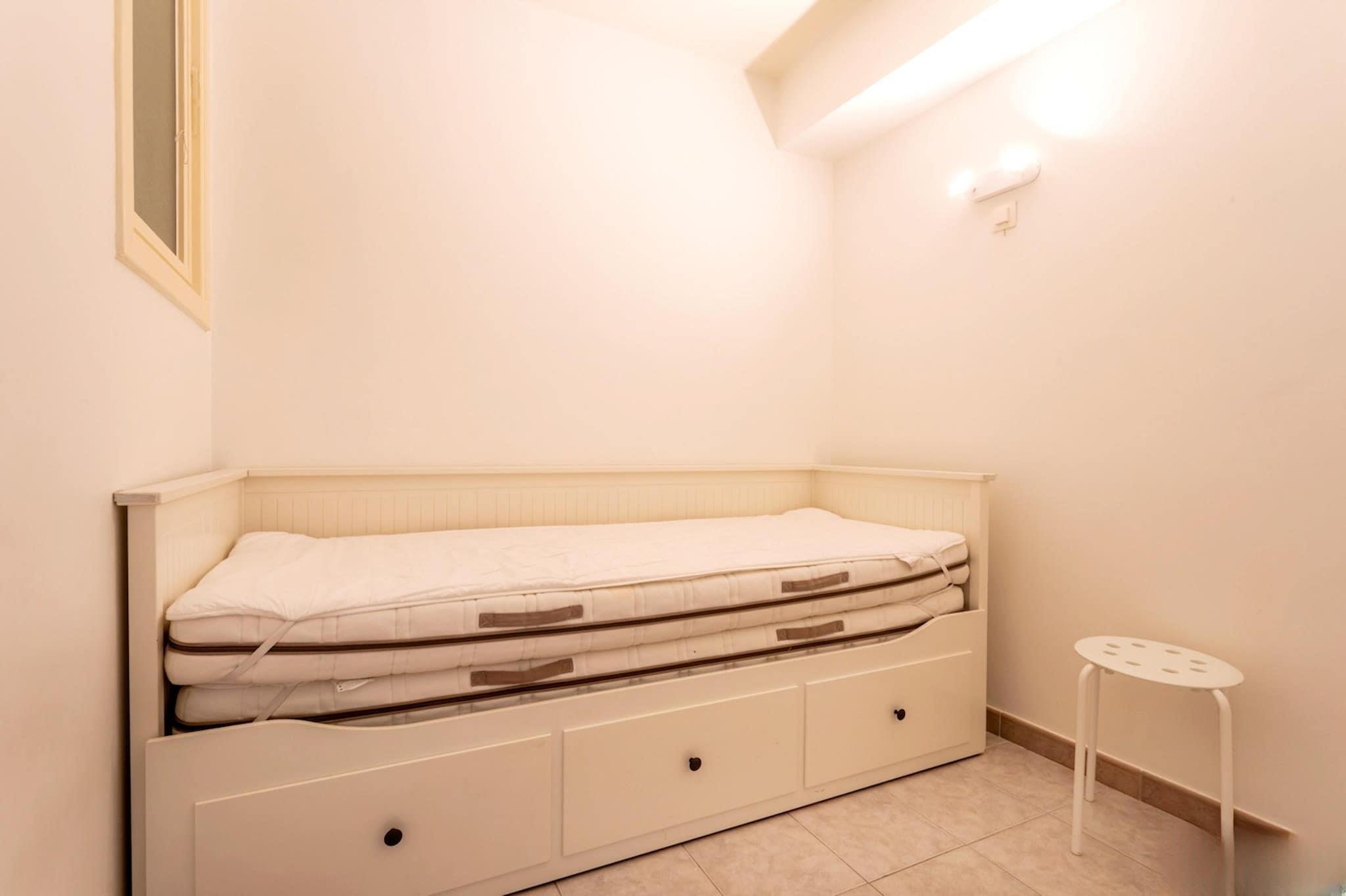 Beliggende på femte sal tilbyder denne charmerende lejlighed en spektakulær havudsigt, hvilket gør den til den perfekte kystferie for familier eller små grupper. Når du træder ind, vil du finde en rummelig entré, der fører til en hyggelig stue, som har en behagelig sovesofa til yderligere gæster. Det åbne køkken er fuldt udstyret med moderne apparater, herunder en keramisk kogeplade, opvaskemaskine og køleskab, fryser, hvilket gør madlavning til en leg. Derudover øger et praktisk brusebadeværelse med håndvask og separat toilet lejlighedens bekvemmelighed for en ubekymret strandferie. Kun få skridt fra det gyldne sand på Oostduinkerke-stranden og Baldus-stranden er denne beliggenhed et paradis for solelskere. Den livlige Strand De Panne ligger omkring 2,7 km væk for dem, der er ivrige efter at udforske, mens den berømte forlystelsespark Plopsaland De Panne ligger en kort køretur på 8,7 km. Med sin indbydende indretning og nærhed til forskellige kystattraktioner er denne lejlighed den ideelle base for at skabe uforglemmelige minder ved havet. Lejligheden rummer tre indbydende soveværelser, det ene med egen håndvask, komfortabelt med plads til 6-8 personer. Sovearrangementerne er alsidige, med en blanding af dobbeltsenge og twin opsætninger designet til at sikre en afslappende nattesøvn. Træd ud på den bageste balkon for at nyde den forfriskende kystbrise, måske mens du nyder din morgenkaffe, mens du planlægger dine dagens eventyr. Lejligheden er også udstyret med gas centralvarme, hvilket sikrer varme og komfort hele året rundt. Bemærk venligst, at forbrug af el, varme, varmt vand og koldt vand ikke er inkluderet og vil blive trukket fra dit depositum. Brugen er ofte højere i vintermånederne. (Maksimalpriser for forbrug er: EURO7,25/m³ vand – EURO0,64/kWh el (dag) – EURO0,44/kWh el (nat) – EURO1,46/m³ gas).