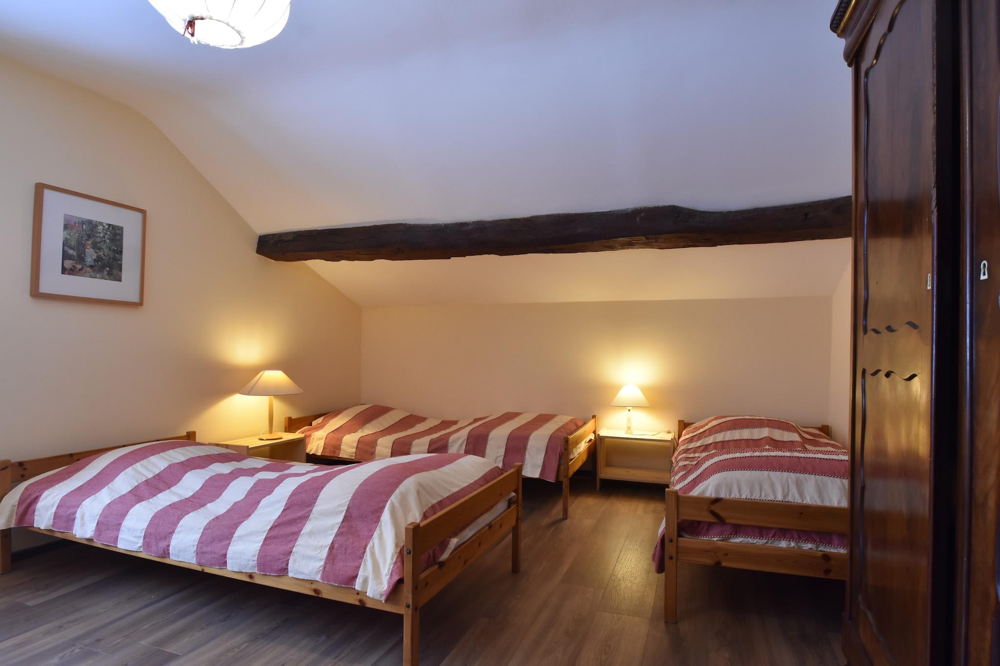 En fredelig flugt på landet venter i denne hytte med 4 soveværelser i Baneux, ideel til familier eller grupper på op til 9 gæster. Huset ligger tæt på skoven og har en privat møbleret have, grill og garage. To kæledyr er velkomne mod et mindre gebyr, og en barneseng er tilgængelig på anmodning. Hytten er en del af et renoveret bondehus og har bevaret sin rustikke charme med træaccenter, en pejs i gangen og en brændeovn i stuen. Børn vil elske sandkassen, mens voksne kan nyde hyggelige aftener eller udforske regionens mange aktiviteter, gåture, cykle, mountainbike og stå på ski ved Lierneux eller Baraque Fraiture (5 km). I nærheden finder du tennis-, svømnings- og golffaciliteter med et supermarked 4 km væk og restauranter 11 km fra ejendommen. Motorvejen ligger 8 km derfra, offentlig transport 14 km, og Liège Lufthavn ligger 60 km derfra. Et varmt og indbydende Ardennerne-retræte.