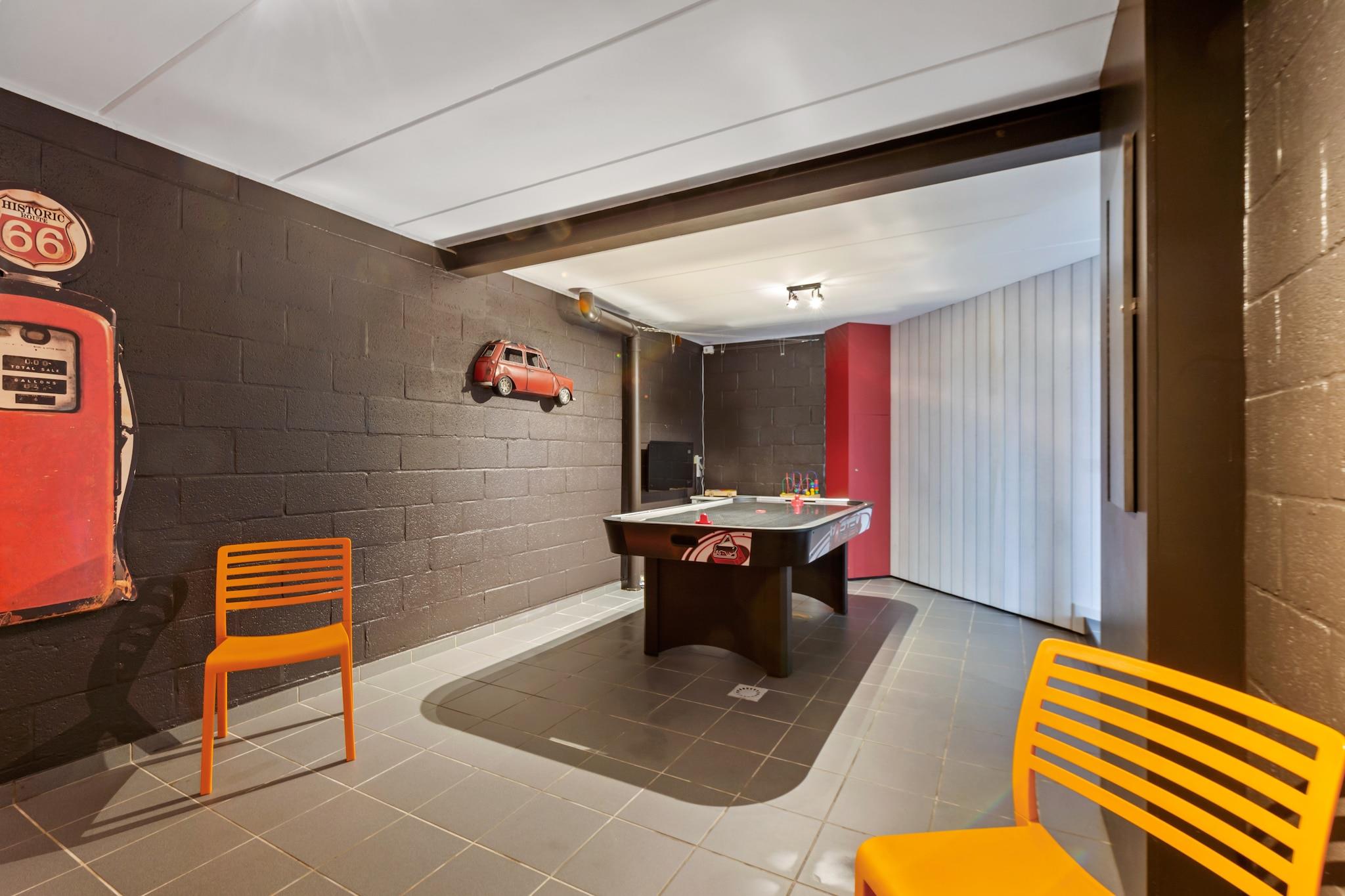 Superb villa på højden af Malmedy, der tilbyder et højt niveau af komfort. Villaen udfolder sig på flere niveauer. Takket være de fire soveværelser, tre badeværelser og stort opholdsstue kombinerer huset perfekt sammenhold og intimitet. Fritid og wellness er også opfyldt takket være to dedikerede værelser: et med et Wii-spil, fodboldbord og forskellige brætspil og et andet værelse med liggestole, infrarød sauna og boblebad. Nok til at tilfredsstille enhver smag! I de solrige dage er haven det sted, hvor du vil tilbringe din dag. Som villaen udfolder den sig på flere niveauer arrangeret i terrasser, fuldt udstyret med havemøbler, grill, høje og lave borde, jacuzzi og så videre. Bemærk venligst at haven ikke er helt indhegnet, og at den tæller en dam, hvor det er strengt forbudt at bade eller sætte fod. Jacuzzi er til din rådighed fra morgenen efter ankomstdagen. Villaen er et fint sted for familier eller venner, men gæsterne vil blive bedt om at respektere roen i stedet og kvarteret. Ingen parter tilladt!