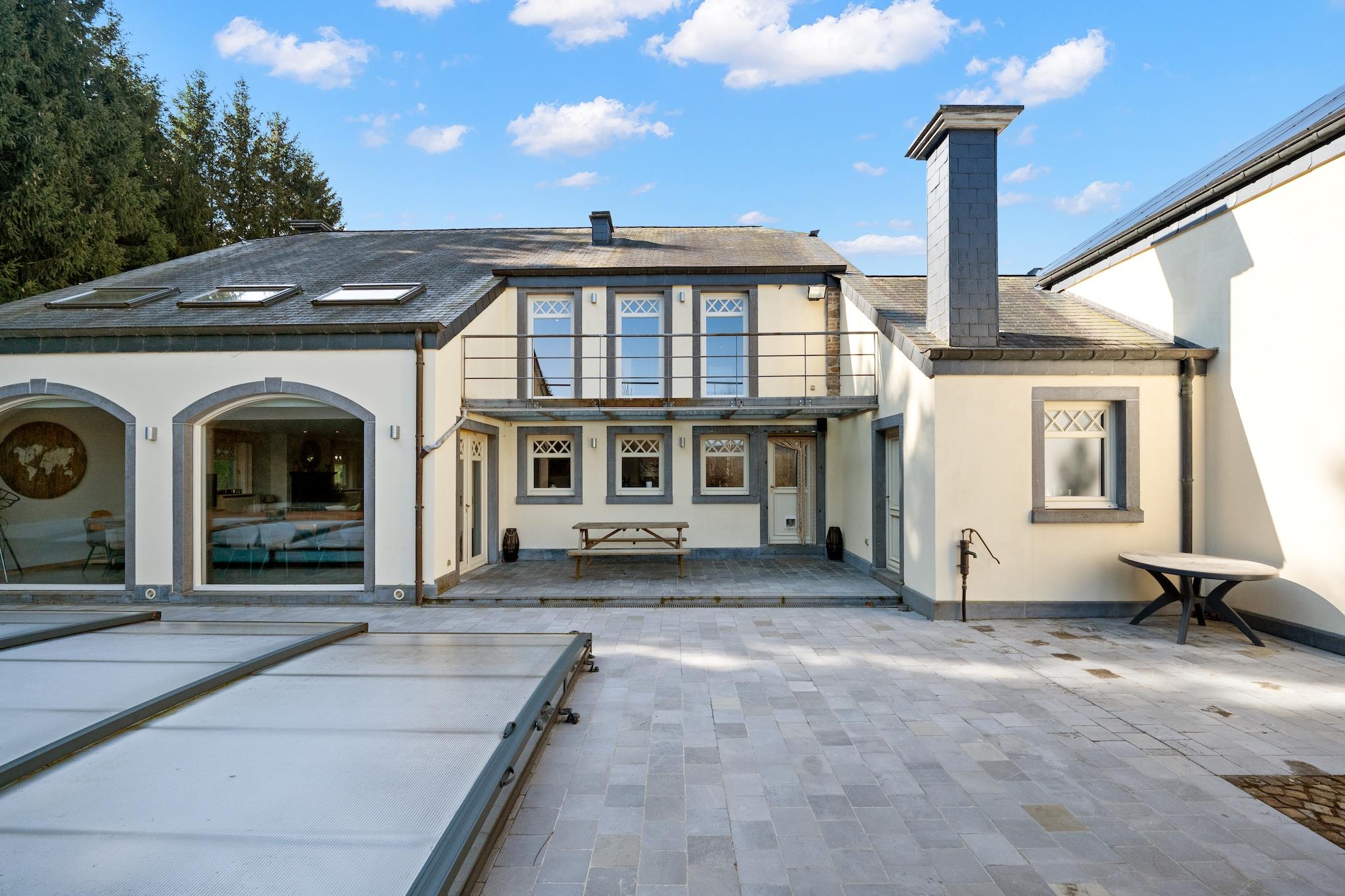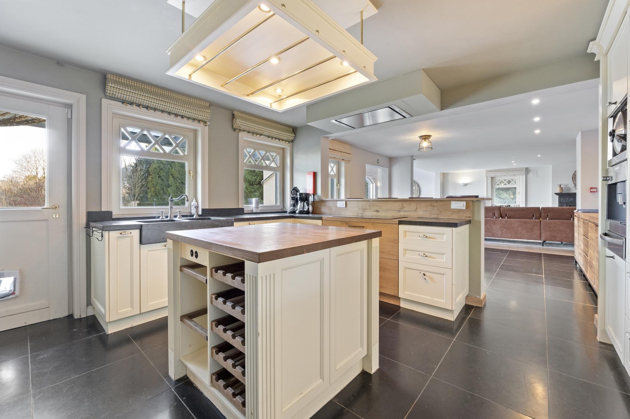 Beliggende i den fredelige landsby Freyneux nær Manhay, tilbyder denne elegante villa et luksuriøst ophold for store familier eller grupper. Kun 15 km fra den historiske by La Roche-en-Ardenne kan gæsterne udforske ruinerne af dets feudale slot og nyde den naturskønne udsigt over Ourthe-floden. Den nærliggende Parc Forestier Récréatif Chlorophylle er perfekt til vandreture i naturen og familieudflugter, mens Baraque Fraiture og La Station Haute Ardenne byder på skiløb og alpinsjov i vintermånederne. Villaen har seks soveværelser, flere badeværelser, herunder et med boblebad, og rummelig opholds- og spisestue med plads til op til 14 gæster. Det fuldt udstyrede køkken omfatter induktionskomfur, ovn, grill og espressomaskine. Underholdningsmuligheder bugner med et opholdsrum, bordfodbold, festspil og en privat opvarmet udendørs pool, der er åbent efter sæsonen. En indhegnet anlagt have, liggestole, grill og terrasse giver de perfekte udendørs rammer. Lokale spisemuligheder inden for 1 km omfatter La Fourchette Paysanne for belgiske specialiteter, Le Patton Restaurant for fransk køkken og Biotanique for sunde europæiske retter.