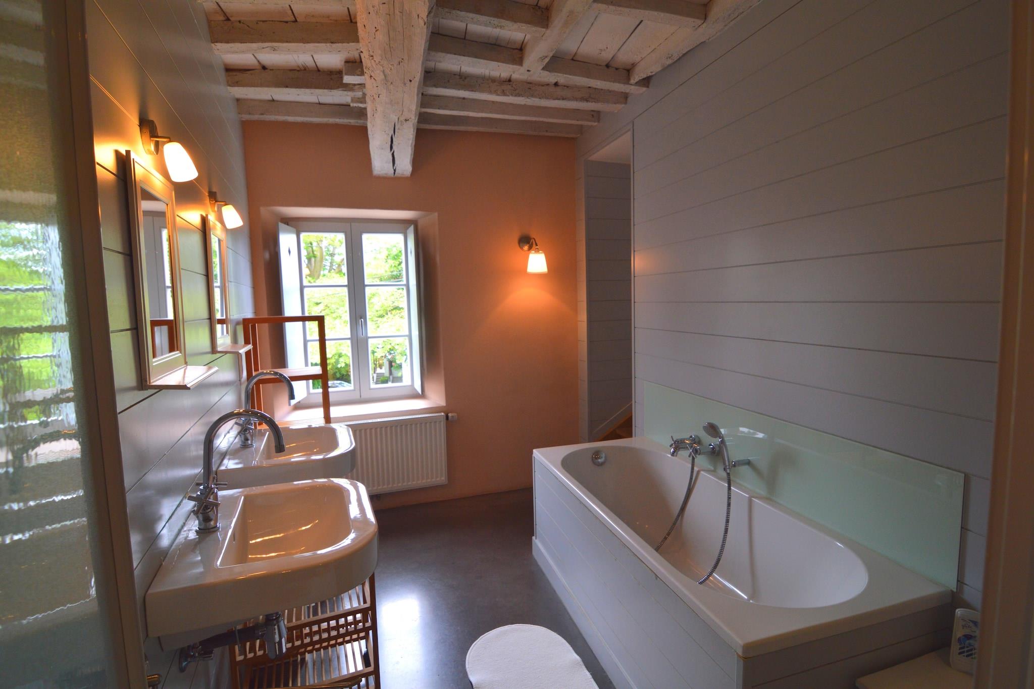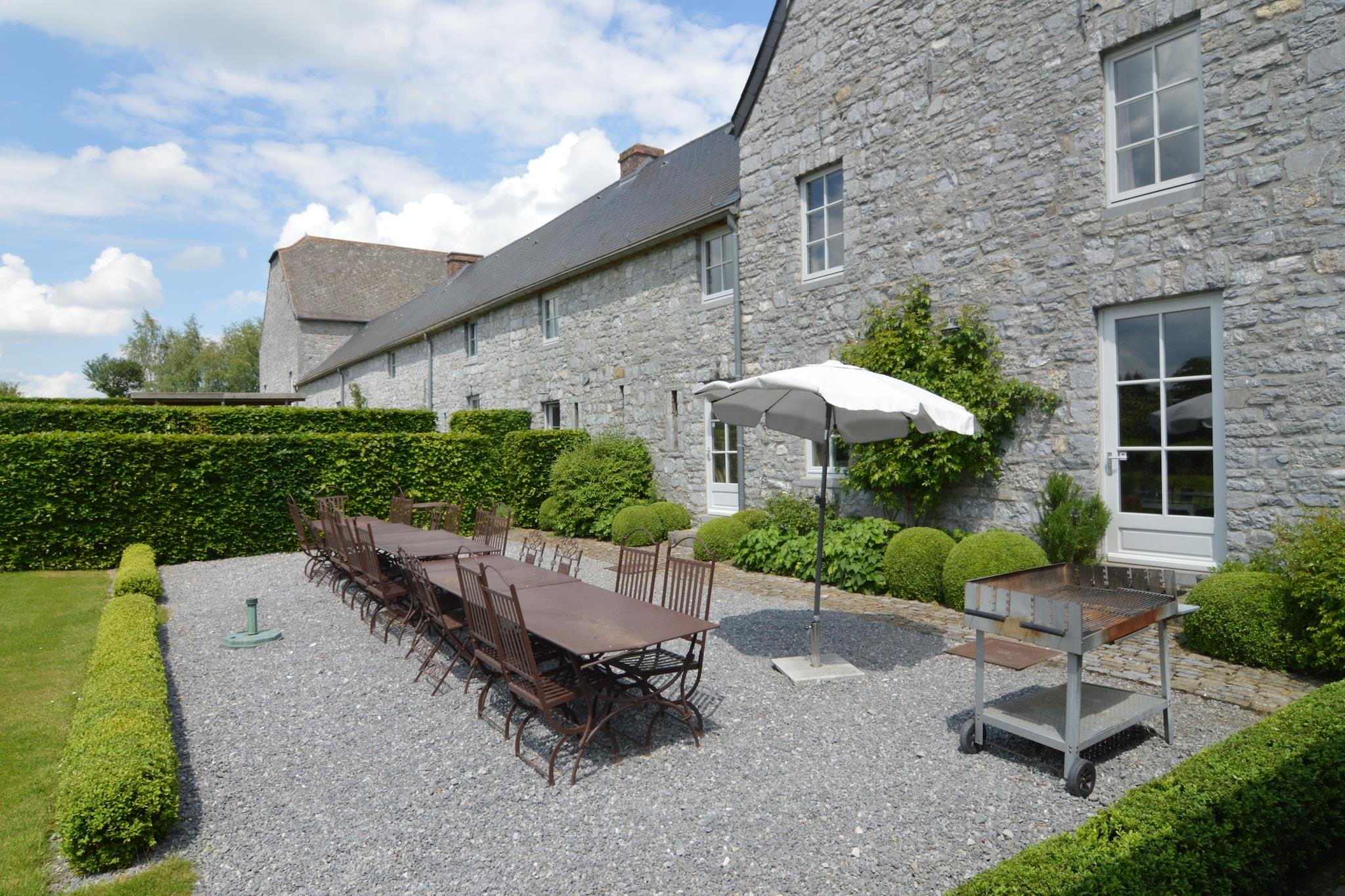Beliggende på en 2 hektar stor ejendom i Onhaye, Ardennerne, tilbyder dette luksuriøse 9-værelses feriehus en fredfyldt flugt for op til 24 gæster, perfekt til store familiesammenkomster. Omgivet af skove kun 500 m væk, er det ideelt til naturskønne gåture, mens nærliggende bycentre (inden for 5 km) byder på spise- og kulturoplevelser. En sø (15 km), golfbane (18 km) og sportsfaciliteter (12 km) tilføjer de mange aktiviteter. Hjemmet byder på et nyt wellnessområde, en have med terrasse, havemøbler og en grill, perfekt til afslappende aftener med sine kære. Indvendigt sikrer det rummelige layout komfort og privatliv for alle gæster, og blander rustik charme med moderne bekvemmeligheder. Bekvemt beliggende 1 km fra offentlig transport og 12 km fra togstationen, denne ejendom er let tilgængelig, men alligevel lykkeligt afsondret. Uanset om du planlægger en fest eller en fredelig. tilbagetog, denne ejendom tilbyder den perfekte blanding af komfort, natur og luksus