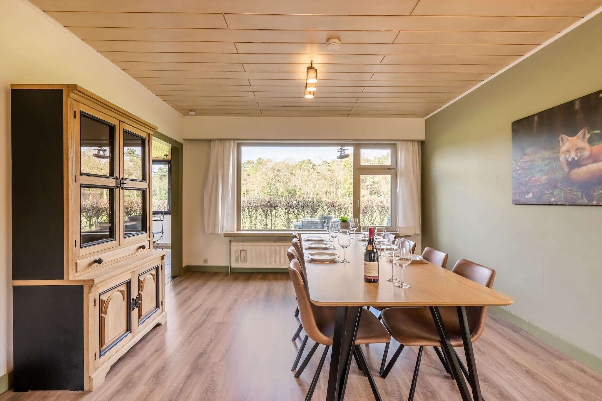 Flygt til Merksplas' stille, grønne hjerte, og oplev et luksuriøst tilflugtssted designet til forbindelse og afslapning. Denne elegante villa med fire soveværelser tilbyder et rummeligt fristed for op til otte gæster, hvilket gør den til det perfekte valg for store familier eller vennegrupper. Fra det øjeblik du træder ind i den rummelige stue, vil du mærke den fredelige atmosfære i det belgiske landskab, med masser af plads til at samles til en filmaften eller dele et festligt måltid ved spisebordet med plads til otte personer. Villaens charme strækker sig problemfrit til udendørsområdet. Træd ind gennem dørene til din private terrasse, hvor du kan starte dagen med en stille kop kaffe eller tilbringe aftenen med en afslappet grillfest i den frodige, private have. Indenfor er huset omhyggeligt indrettet med et fuldt udstyret køkken, tre moderne badeværelser og centralvarme for at sikre din komfort i enhver sæson. Uanset om du indhenter arbejde med den gratis WiFi eller kobler helt fra, giver planløsningen en perfekt balance mellem fælles sociale rum og rolige hjørner. Bag havelågen er det omkringliggende område en skattekiste af naturskønne opdagelser. Du er perfekt placeret til at udforske den lokale kultur, lige fra Hoogstratens historiske charme til det unikke UNESCO-kulturarvssted Bootjesven. For dem, der elsker at bevæge sig, tilbyder Wandeltocht "Dodendraad" en gribende og smuk vandresti gennem historien, og cykeludlejninger i nærheden gør det nemt at bevæge sig gennem de flade, grønne landskaber som en lokal.