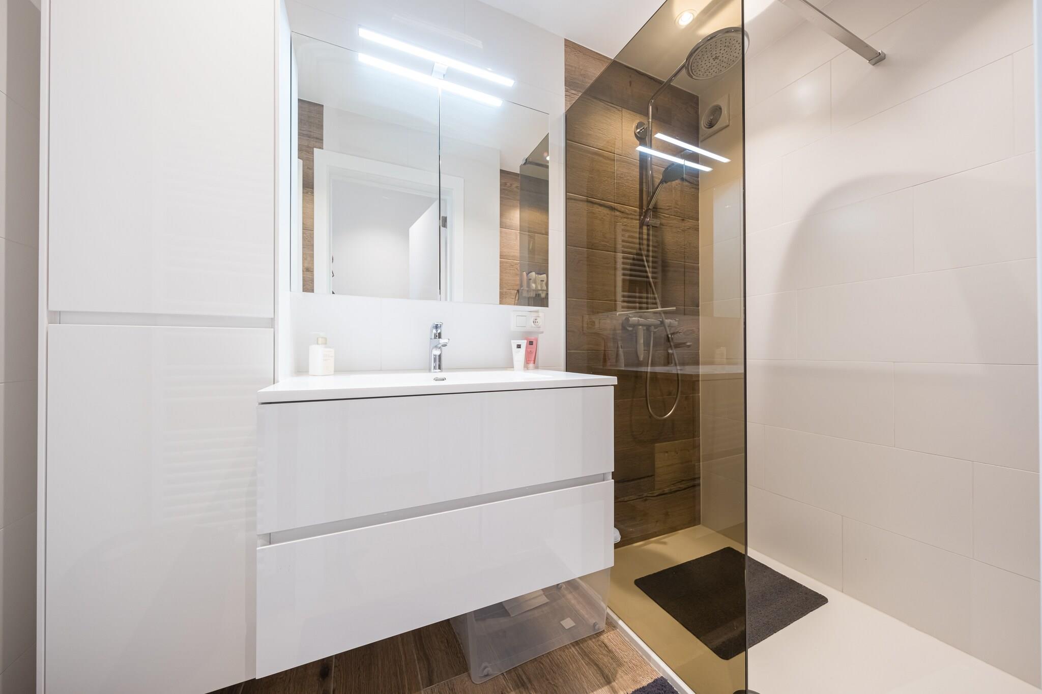 Stueetage: (Stue(Fjernsyn, spisebord, sofahjørne), Køkken(elkedel, brødrister, kaffemaskine, ovn, mikrobølgeovn, opvaskemaskine , køleskab), soveværelse(dobbeltseng(dobbelt dynebetræk, 160 x 200 cm), dobbeltsovesofa), soveværelse(dobbeltseng(dobbelt dynebetræk, 160 x 200 cm)), badeværelse(bruser, føntørrer), toilet(guest toilet), Internetadgang, tørretumbler, vaskemaskine, elevator)