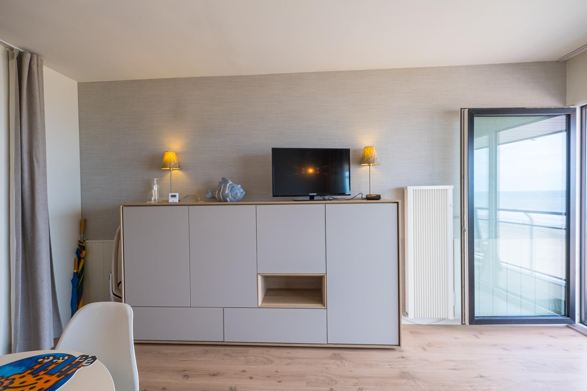 På 6. etage: (åbent køkken(elkedel, kaffemaskine(kaffepude), mikrobølgeovn, opvaskemaskine , køle-fryseskab, , ), stue / spisestue(dobbeltsovesofa(dobbelt dynebetræk, 140 x 200 cm), Fjernsyn(digital), spisebord, radio), soveniche(3-etage-køjeseng(dynebetræk, 90 x 200 cm)), badeværelse(badekar med bruser, håndvask, toilet), pulterkammer) Internetadgang, varme(elektrisk), terrasse, parkering, elevator