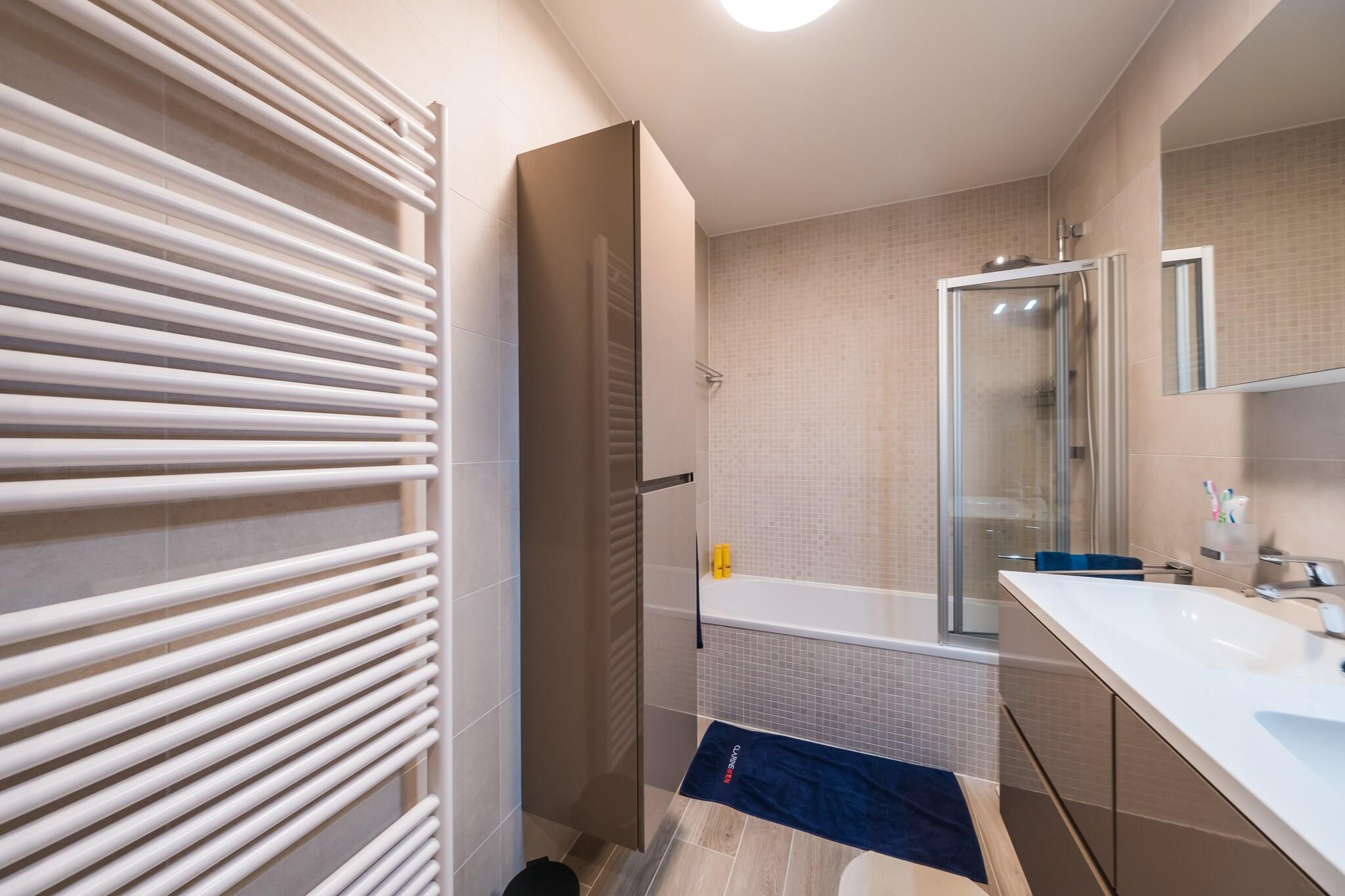 Stilfuld komfort med en solbeskinnet terrasse Velkommen til din ideelle kystflugt i hjertet af Middelkerke! Denne smukt designede lejlighed på første sal har to rummelige soveværelser med plys dobbeltsenge, et fuldt udstyret åbent køkken og et lyst opholdsområde, der åbner til en stor terrasse - perfekt til afslappende morgener eller solnedgangsdrinks. Med moderne bekvemmeligheder som en opvaskemaskine, vaskemaskine/tørretumbler og digital-tv er ethvert ophold både praktisk og behageligt. Kystliv med sæsonbestemte frynsegoder Beliggende kun en kort gåtur fra stranden, tilbyder dette fredelige tilflugtssted det bedste ved havet. I juli og august kan du nyde den ekstra bonus ved underjordisk parkering ved det nærliggende swimmingpoolkompleks - et sjældent fund i denne travle sommerdestination. Uanset om du planlægger en stranddag eller udforsker de lokale butikker, er alt inden for rækkevidde, inklusive sporvognsadgang til dagsture langs kysten. Spisning og lokale lækkerier i nærheden Gå en tur til Zeedijk for at spise ved havet, og opdag belgiske favoritter som friske moules-frites, cremede kroketter og håndværksvafler. Charmerende brasserier, caféer og fiske- og skaldyrsbistroer findes i kvarteret, hvilket gør det til et madelskers paradis. Nyd et stilfuldt ophold på et sted, der sætter det bedste af Middelkerke lige uden for døren - ingen kæledyr, ingen stress, bare ren afslapning.