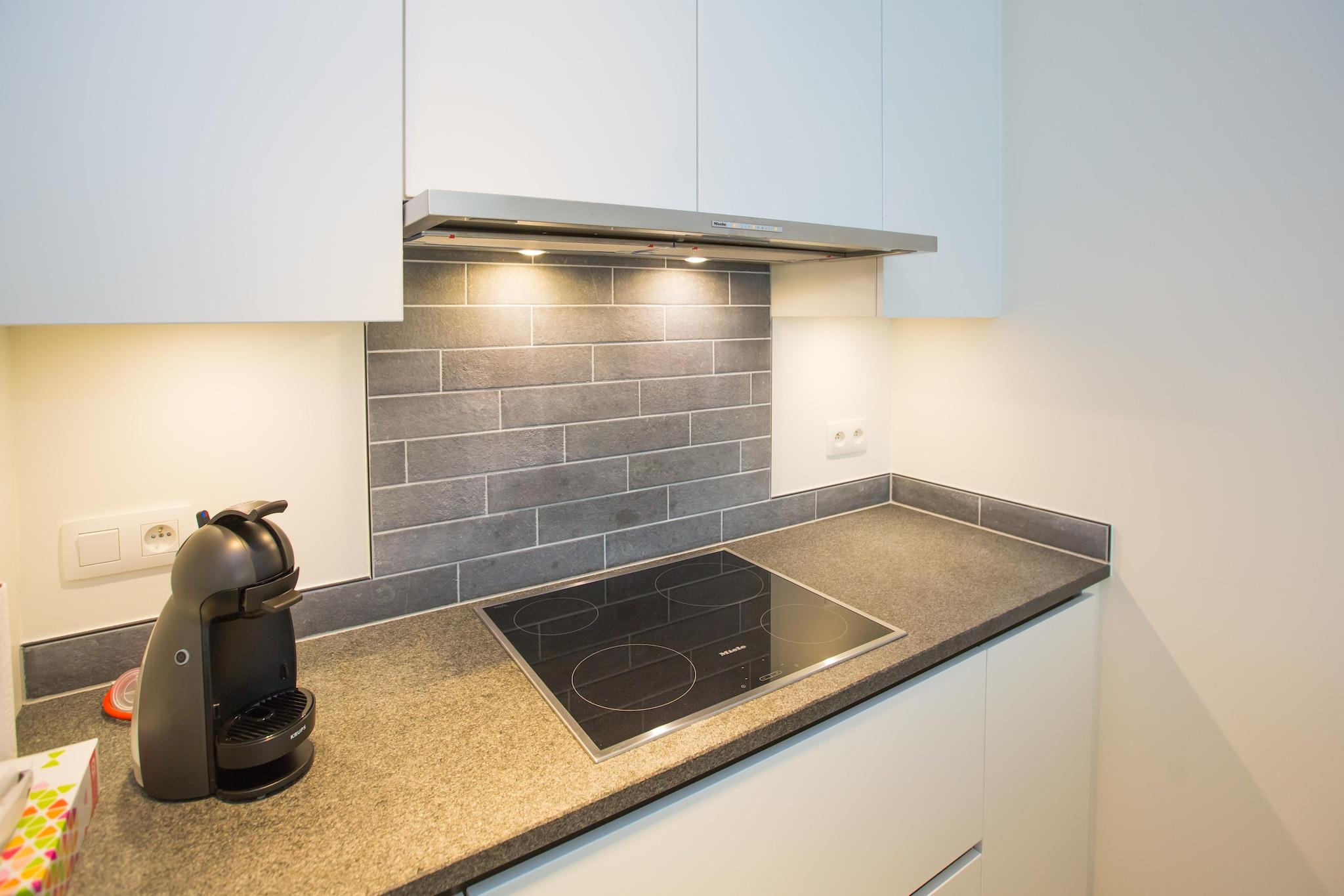 Moderne komfort ved havet Velkommen til denne lyse og rummelige lejlighed i en stilfuld ny bolig, designet til at være vært for op til 6 gæster i fuld komfort. Opholds- og spiseområdet i åbent plan inviterer til afslapning med moderne møbler, digitalt tv og direkte adgang til en solbeskinnet terrasse med havudsigt fra siden - perfekt til morgenkaffe eller aftendrinks. Et fuldt udstyret køkken med keramisk kogeplade, opvaskemaskine og kaffepudemaskine gør hjemmelavede måltider nemme og behagelige. Ideel til familier og grupper Sovearrangementerne er gennemtænkt designet med fleksibilitet i tankerne. Det store soveværelse har en generøs dobbeltseng (180x200 cm), TV og adgang til en privat terrasse på bagsiden. Det andet soveværelse har en fold-away dobbeltseng og en robust køjeseng - fantastisk til familier med børn. Et elegant badeværelse med brusekabine og dobbelt håndvask samt separat toilet sikrer, at alle har plads og privatliv. Du finder også en vaskemaskine og tørretumbler i opbevaringsrummet til længere ophold. Førsteklasses beliggenhed med nem adgang Beliggende kun en kort gåtur fra Middelkerkes strand og pulserende centrum, er du perfekt positioneret til at nyde både fredelige gåture langs promenaden og de livlige caféer, bagerier og lokale spisesteder i nærheden. En privat garage og elevator tilføjer ekstra bekvemmelighed.