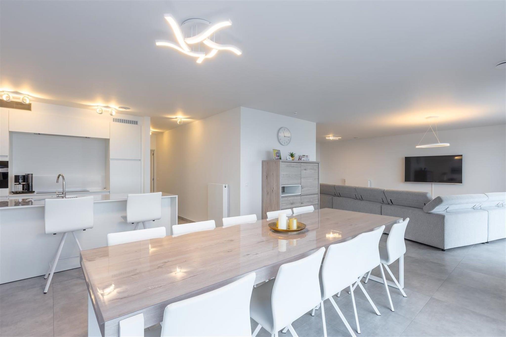Velkommen til din fantastiske nybyggede lejlighed, der tilbyder moderne komfort og bekvemmelighed kun få skridt fra havet i en førsteklasses beliggenhed. Denne skønne lejlighed ligger på 7. sal og byder på en rummelig stue med udgang til en solrig altan, hvor du kan nyde panoramaudsigten og nyde solen hele dagen. Spisestuen giver et perfekt sted til at nyde måltider med familie og venner, hvilket skaber mindeværdige øjeblikke på baggrund af kystudsigt. Denne lejlighed ligger kun 100 meter fra stranden og tilbyder nem adgang til sol, sand og surfing. Uanset om du foretrækker afslappede gåture på stranden, vandsport eller blot at slappe af i solen, er stranden inden for rækkevidde for din nydelse. Det veludstyrede køkken er en kokkens glæde, med kogeplader, emhætte, kaffemaskine, opvaskemaskine, køleskab og fryser. Uanset om du forbereder en hurtig morgenmad eller en gourmetmiddag, finder du alt, hvad du har brug for til kulinarisk kreativitet. Lejligheden indeholder komfortable værelser designet til hvile og afslapning efter en dag med aktiviteter ved havet. Et opbevaringsrum i lejligheden rummer en tørretumbler og vaskemaskine, hvilket sikrer bekvemmelighed til vasketøjsbehov. Et bemærkelsesværdigt træk ved denne ejendom er den inkluderede parkeringsplads (nr. 38) i bygningen, der giver sikker og problemfri parkering til dit køretøj.