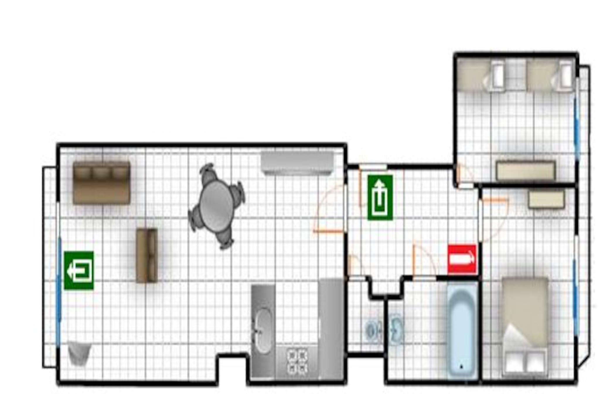 På 7. etage: (åbent køkken(elkedel, kaffemaskine(kopper), mikrobølgeovn, Blender), stue / spisestue(Fjernsyn(digital), spisebord, sofahjørne, radio), soveværelse(dobbeltseng(dobbelt dynebetræk, 160 x 200 cm)), soveværelse(enkeltseng(dynebetræk, 90 x 200 cm), enkeltseng(dynebetræk, 90 x 200 cm)), badeværelse(badekar, bruser, håndvask), toilet(toilet), Internetadgang) varme(elektrisk), terrasse, elevator, Sea view
