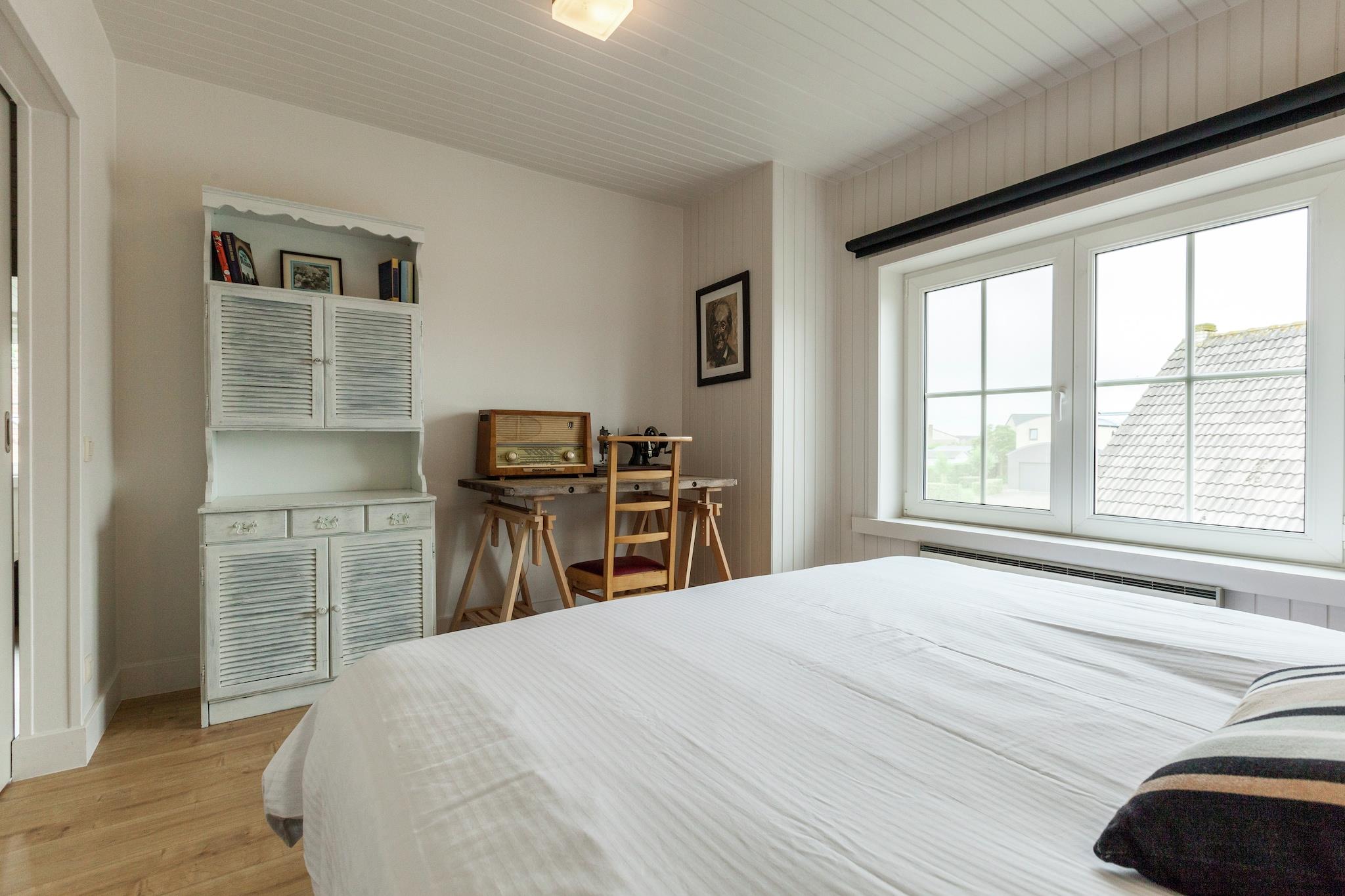 Oplev det ultimative fristed ved havet i dette elegante feriehus med fem soveværelser, hvor luksus møder den afslappede charme ved den belgiske kyst. Dette rummelige feriehus er perfekt egnet til op til ti gæster og er designet til dem, der værdsætter de finere ting i livet. Uanset om I samles omkring varmen fra brændeovnen i den hyggelige stue eller tilbereder et gourmetmåltid i det elegante, moderne køkken, inviterer hvert hjørne af dette hjem jer til at slappe af og genoprette forbindelsen med stil. Højdepunktet ved jeres ophold er uden tvivl den private wellness-zone, et dedikeret rum til ren forkælelse. Efter en dag med udforskning af klitterne kan I trække jer tilbage til jeres egen personlige spa med en beroligende infrarød sauna, et boblebad og revitaliserende massagebrusere. Afslapningen fortsætter i den solbeskinnede vinterhave, der bygger bro mellem det sofistikerede interiør og det udendørs. Udenfor venter en rolig have og en privat terrasse med grill, der danner den perfekte kulisse for lange sommeraftener under stjernerne. Beliggenheden er alt, og her er I kun en blid fem minutters gåtur fra den gyldne sandstrand på Middelkerke-stranden. Du kan tilbringe dine dage med at indånde den salte luft og dine aftener med at nyde den lokale kystkultur, alt imens du ved, at din rolige oase kun er få skridt væk. For at sikre et fredeligt miljø for alle vores gæster, er dette hjem reserveret til dem, der søger en rolig og respektfuld ferie, hvilket gør det til det bedste valg for familier og grupper, der leder efter en sofistikeret belgisk flugt.