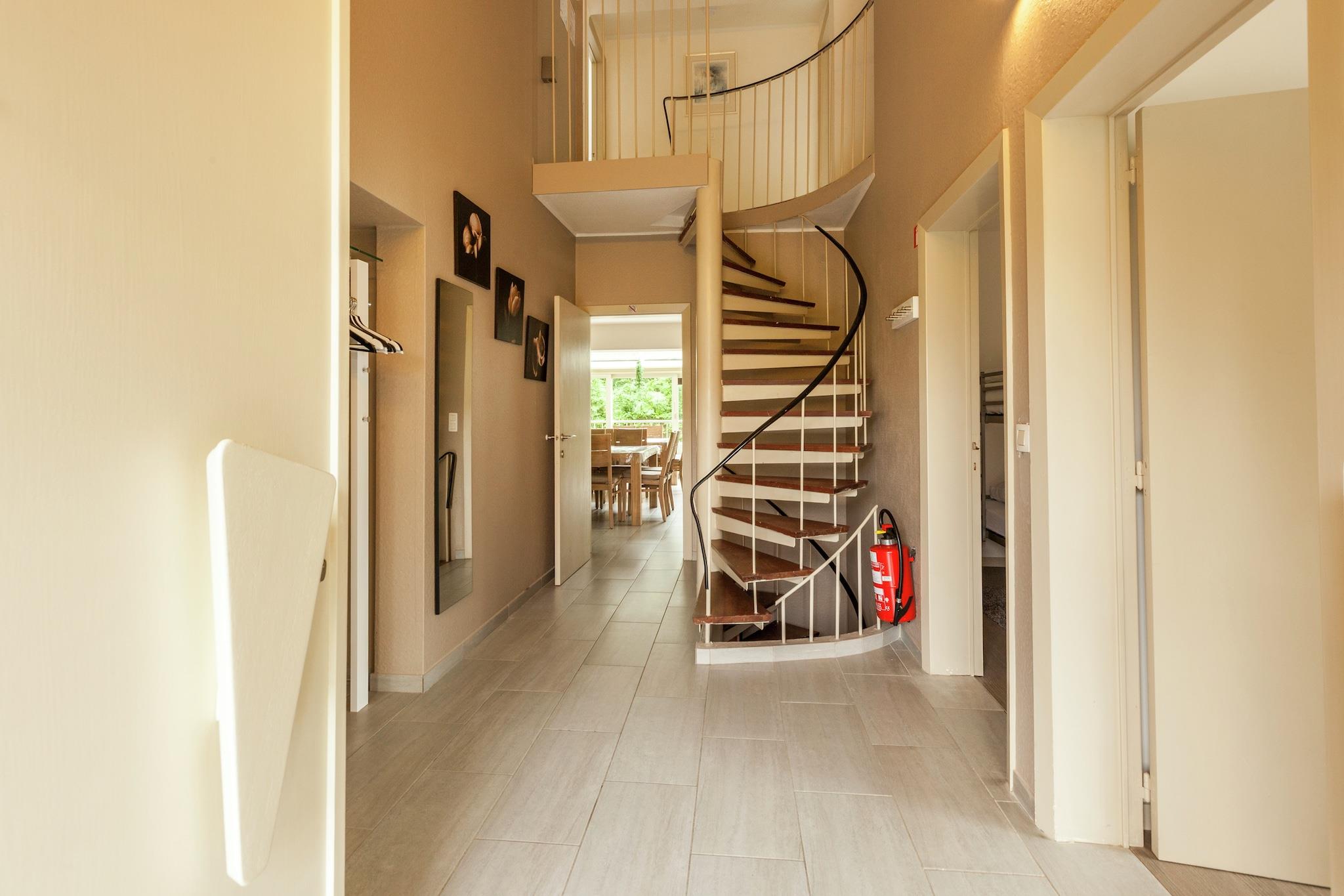 Stueetage: (Køkken(elkedel, komfur, kaffemaskine(kaffetragt), ovn, mikrobølgeovn, køle-fryseskab), stue / spisestue(Fjernsyn(digital), pejs, DVD-afspiller), soveværelse(dobbeltseng), soveværelse(4x enkeltseng), badeværelse(2x bruser, 2x håndvask, toilet, pissoir), toilet) På 1. etage: (Soveværelse med badeværelse(4x enkeltseng, bruser, håndvask), soveværelse med gennemgang(2x enkeltseng), Børneværelse(2x enkeltseng), toilet, pulterkammer) vaskerum (tørretumbler, vaskemaskine), loungerum(Bubble bath, bruser, infrarød sauna, sauna, håndvask, toilet), bruser, terrasse, terrasse, have(indhegnet), havemøbler, parkering, barneseng, barnestol