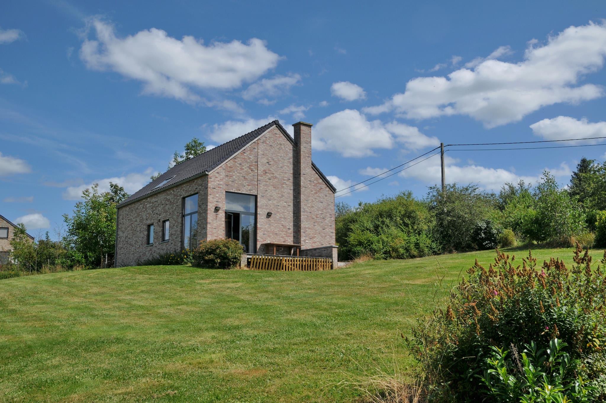 Nyt hus beliggende i Moressée (Somme-Leuze) med fantastisk landskab. Udstyret til 8-10 personer. Stueetagen: stor stue med brændeovn og tv, åbent fuldt udstyret køkken (mikroovn, opvaskemaskine, ovn, keramisk kogeplade), 2 soveværelser, badeværelse med badekar og separat toilet. Første sal: 2 soveværelser og bruser. Terrasse med fantastisk panorama, møbler og grill. Elvarme. Sengetøj: 3 dobbeltværelser, 4 singler, 1 barneseng. Dyr ikke tilladt.